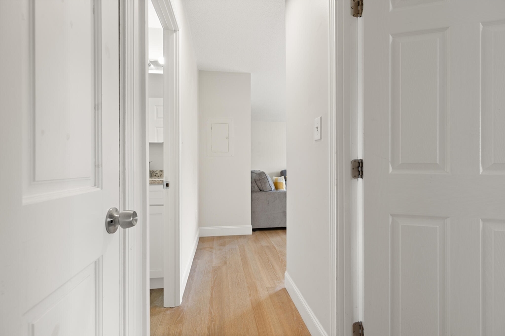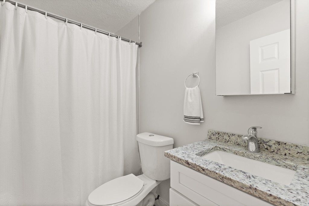 This completely renovated two bedroom TOP floor unit is conveniently located near major highways, commuter rail, restaurants and shopping, just minutes from Downtown Plymouth and Plymouth Waterfront. This well maintained condo features white oak LVP flooring throughout, freshly painted neutral walls, two spacious bedrooms with ample closet space, and a brand NEW kitchen/bath with granite countertops and SS appliances. The association fee includes heat and hot water, ensuring your living experience is both worry-free and budget-friendly. Enjoy the convenience of deeded parking and take advantage of the fantastic community amenities, including an in-ground pool and tennis courts/playground. The windows, roof, and patio with balcony have all been replaced within the last two years, making this a highly desirable complex for easy living at an unbelievable price! Welcome home to Chapel Hill Drive, the ideal choice for those seeking comfort and accessibility.