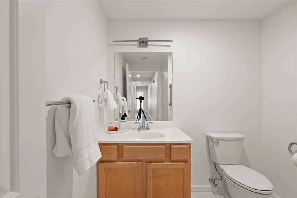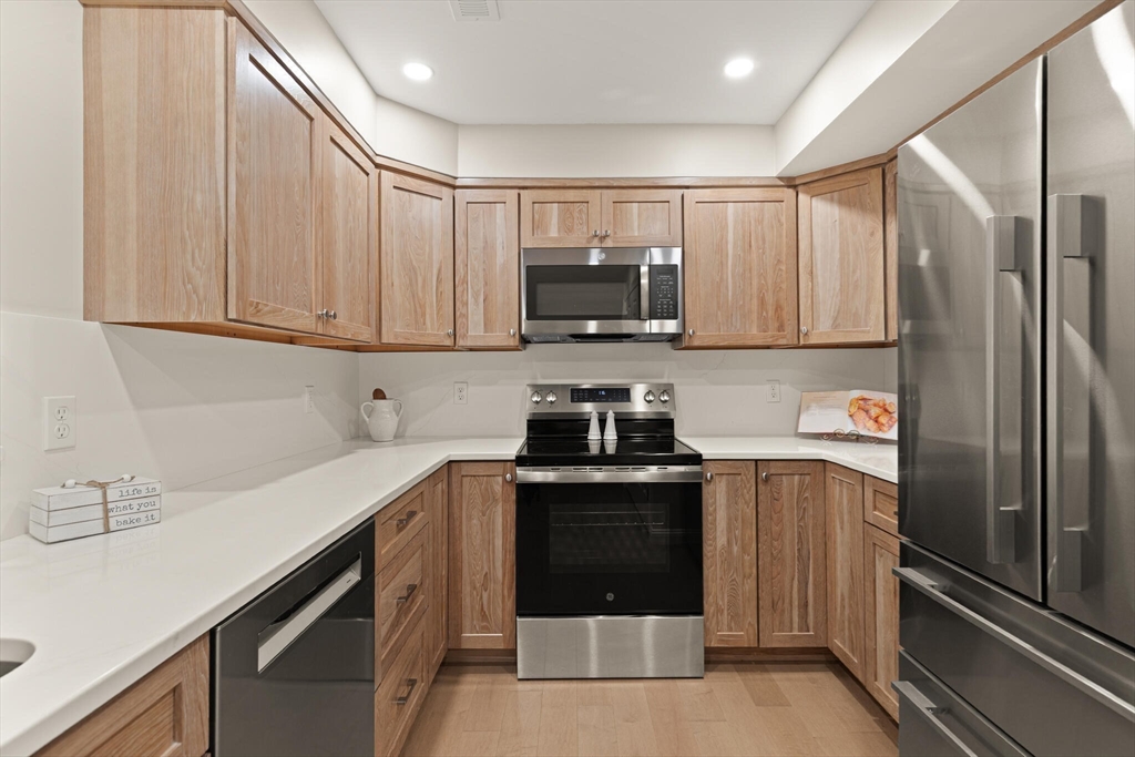 Welcome to Masi Meadow, a desirable 55+ community offering comfort and style. This rare first floor two bedroom, two bath unit shines with freshly painted walls in today’s neutral palette and all new engineered maple hardwood floors, with tiled baths. The brand new kitchen features pecan cabinetry in a Cerise Natural finish, quartz counters with a matching backsplash, and new appliances, with the refrigerator only three years old. The open living and dining areas include recessed lighting, soundproofed ceilings, and French doors leading to a screened porch. Nothing to do but move right in. A one car garage attached to the unit, private cul de sac setting, and easy access to Route 1 complete the package. Move right in!