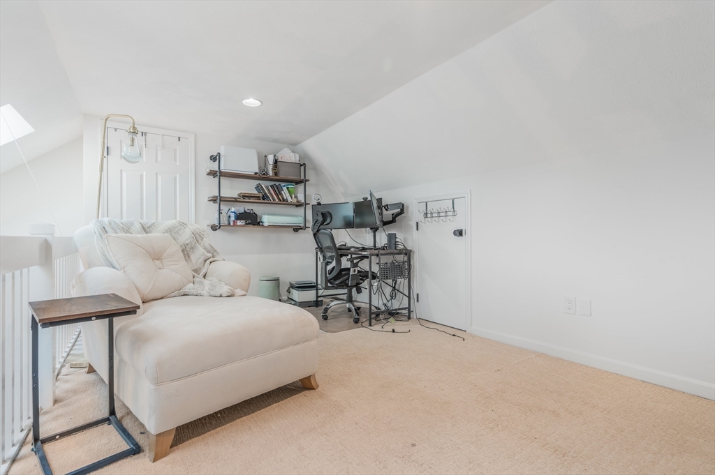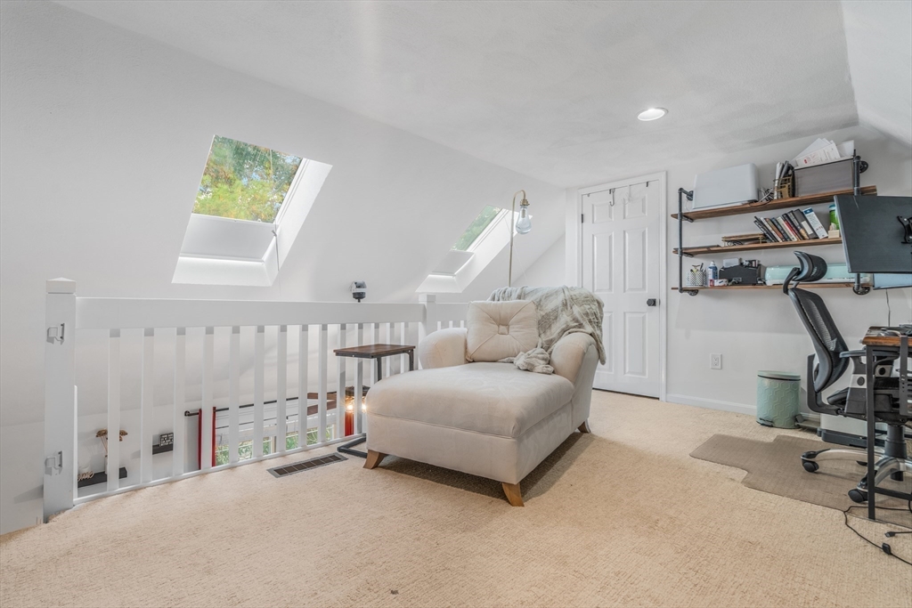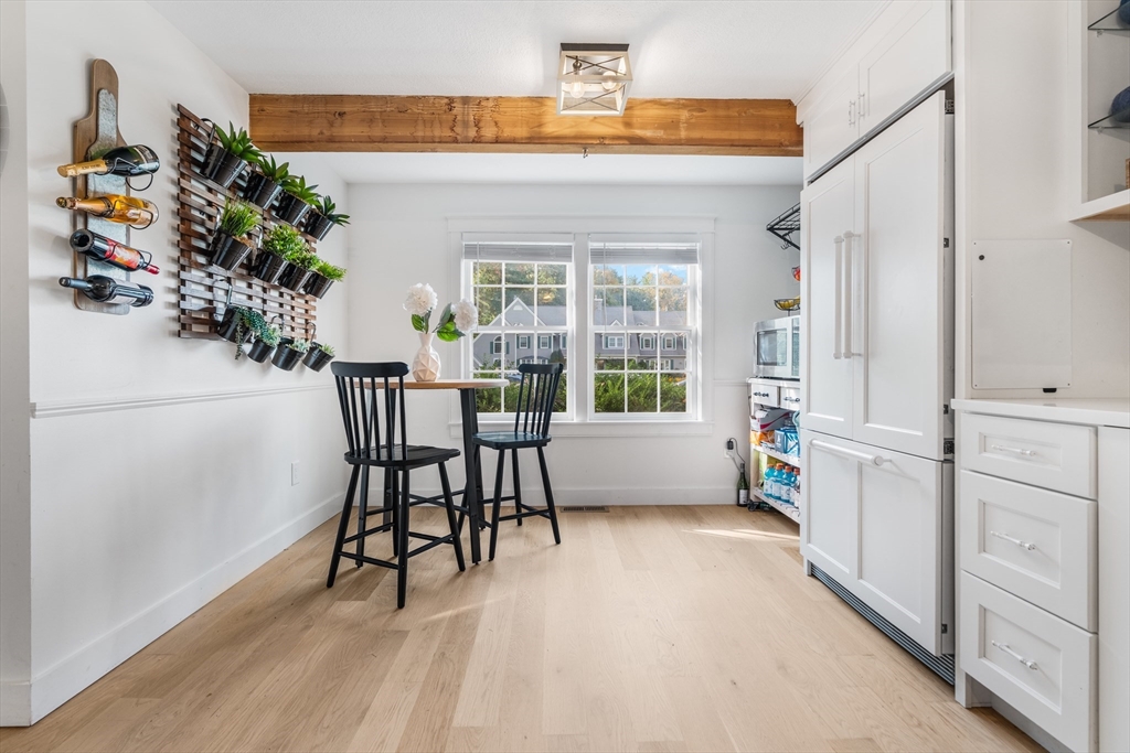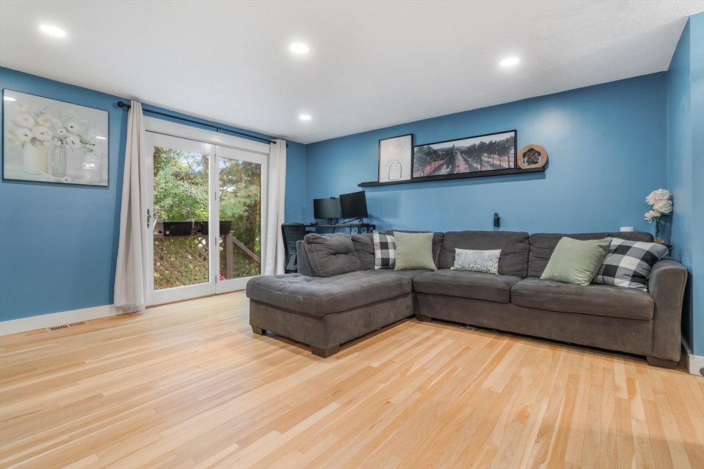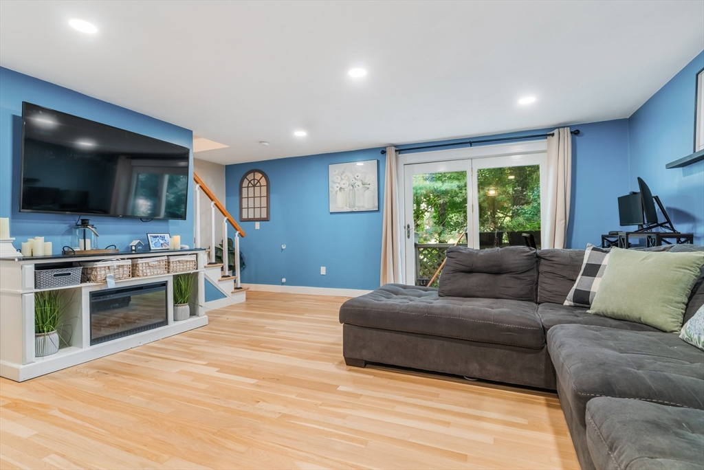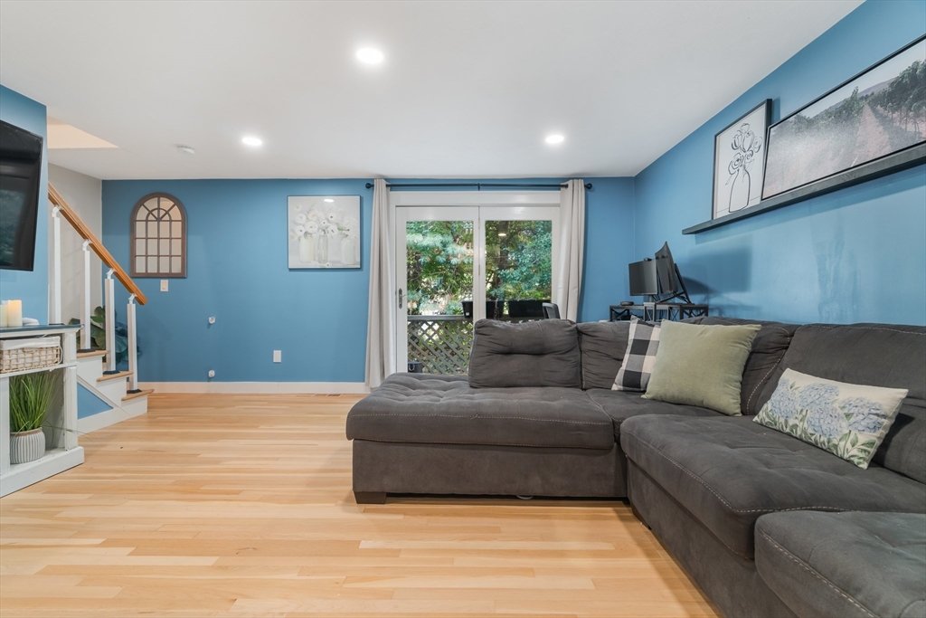 Desirable Abbot's Pond Condominium with Classic New England Charm! Welcoming entrance to a beautifully updated eat-in kitchen with quartz counters, white cabinetry with custom paneled refrigerator and dishwasher and a black gas range and hood. Natural white oak hardwood flooring throughout. Half bathroom and large living room area with recessed lights and endless possibilities for arranging. French doors leading to a rear deck. Second floor consists of a newly tiled full bath and two bedrooms. The master with a walk in closet and skylights as well as a fantastic loft with a closet and eave storage. This additional space is perfect for a home office, study, exercise area. Full large basement, ready to be finished for yet additional space with bulkhead to rear yard. Great location; off the beaten path with easy access to 93, the charming downtown area, commuter rail and scenic recreational trails (AVIS). Close proximity to Phillips Academy, Merrimack College and Indian Ridge Country Club