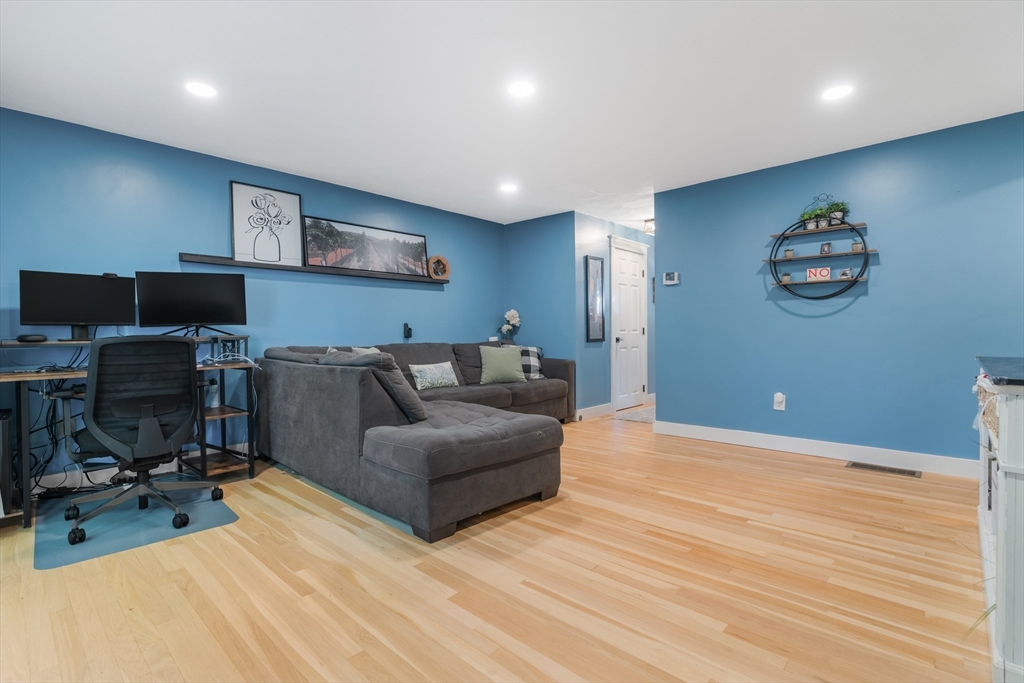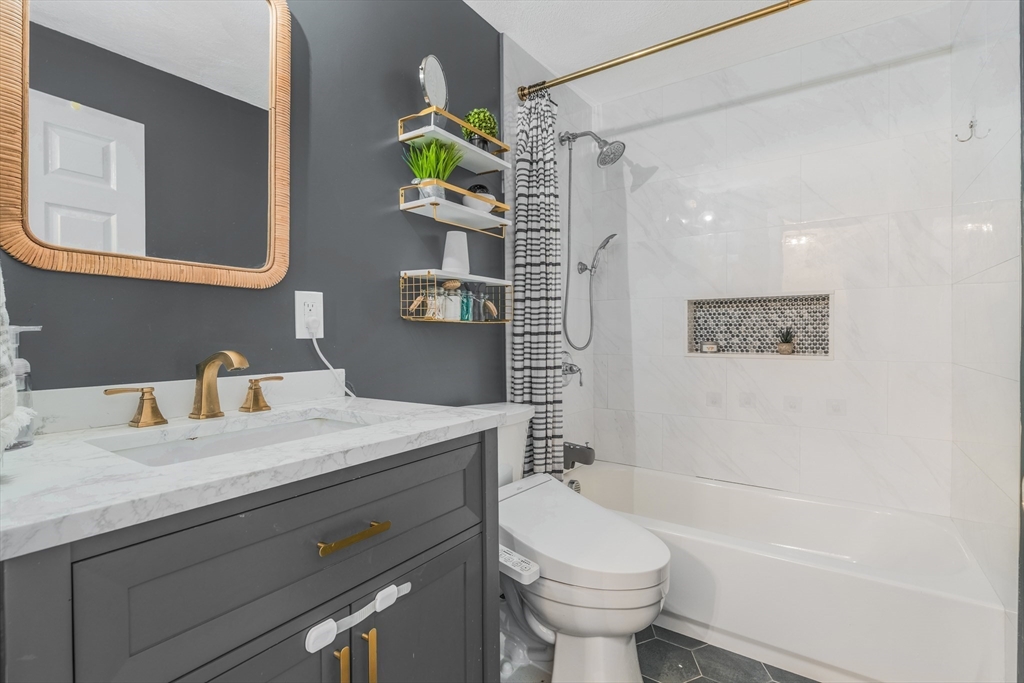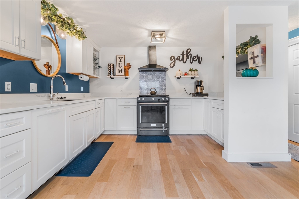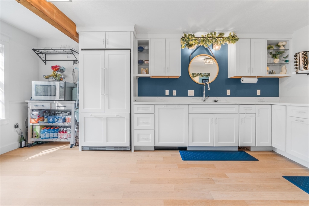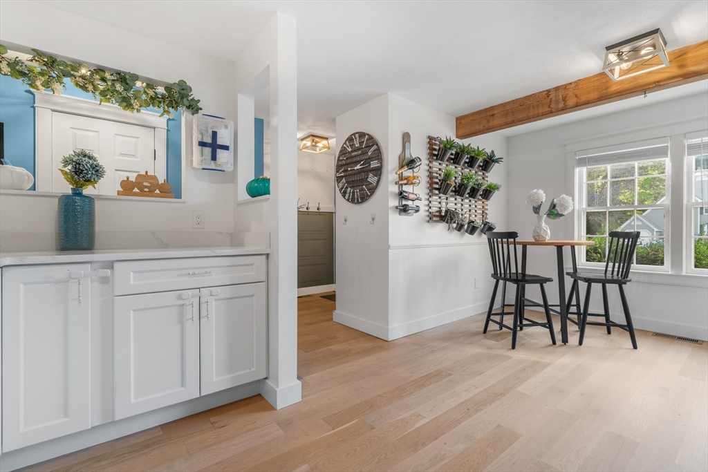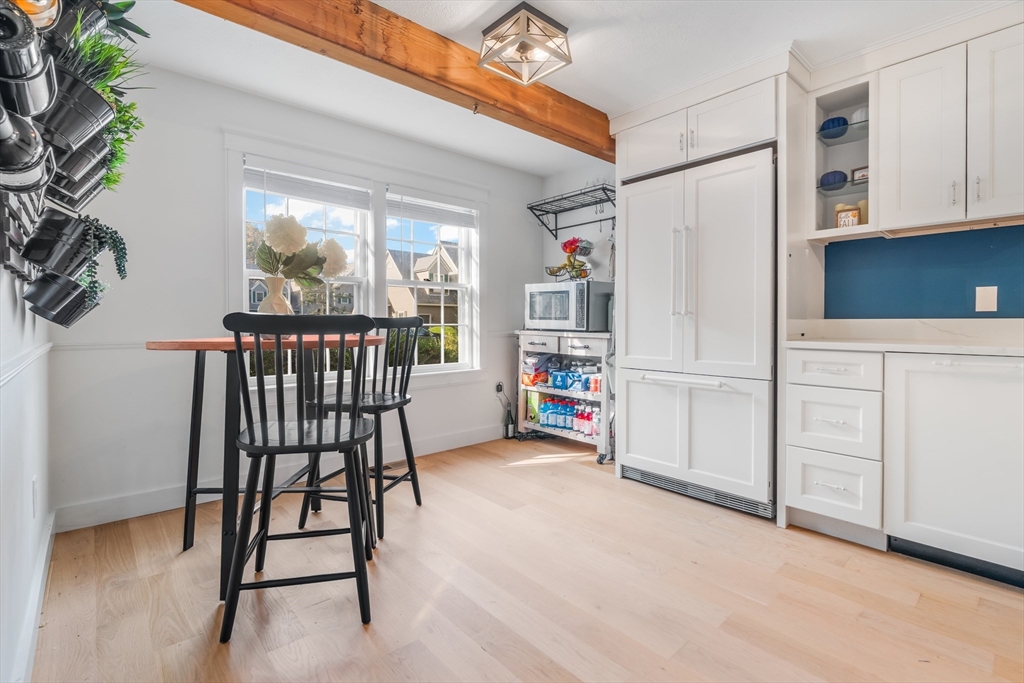Desirable Abbot's Pond Condominium with Classic New England Charm! Welcoming entrance to a beautifully updated eat-in kitchen with quartz counters, white cabinetry with custom paneled refrigerator and dishwasher and a black gas range and hood. Natural white oak hardwood flooring throughout. Half bathroom and large living room area with recessed lights and endless possibilities for arranging. French doors leading to a rear deck. Second floor consists of a newly tiled full bath and two bedrooms. The master with a walk in closet and skylights as well as a fantastic loft with a closet and eave storage. This additional space is perfect for a home office, study, exercise area. Full large basement, ready to be finished for yet additional space with bulkhead to rear yard. Great location; off the beaten path with easy access to 93, the charming downtown area, commuter rail and scenic recreational trails (AVIS). Close proximity to Phillips Academy, Merrimack College and Indian Ridge Country Club