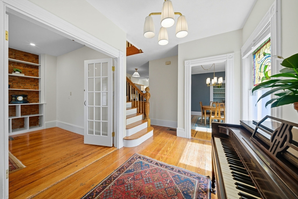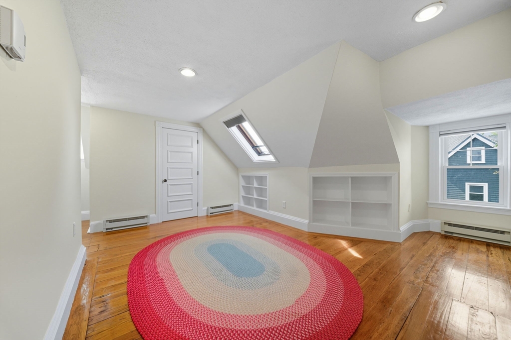 Welcome to 73 Tuttle Street in Dorchester’s Savin Hill—a spacious Victorian townhouse offering the feel of a single-family with city convenience. This 4-bedroom, 1.5-bath home spans over 2,000 sq. ft. across three levels and features period detail including restored shingled exterior, hardwood floors, and a gas fireplace. The oversized primary bedroom provides a relaxing retreat, while three additional bedrooms offer flexibility for family, guests, work, or hobbies. Outdoors, enjoy a fenced yard with a brick patio, two covered porches with custom railings, established perennial garden with flowering trees, shed, and a rare outdoor shower. One off-street parking space, in-unit laundry, and a full basement add ease. Ideally located one block from the Savin Hill T and half mile to JFK/UMass T, I93, beaches, parks, and local dining, this home combines charm, comfort, and accessibility.