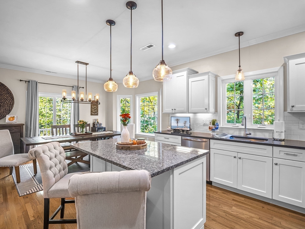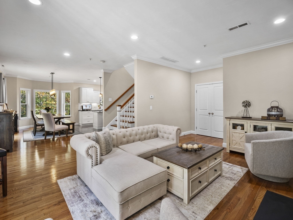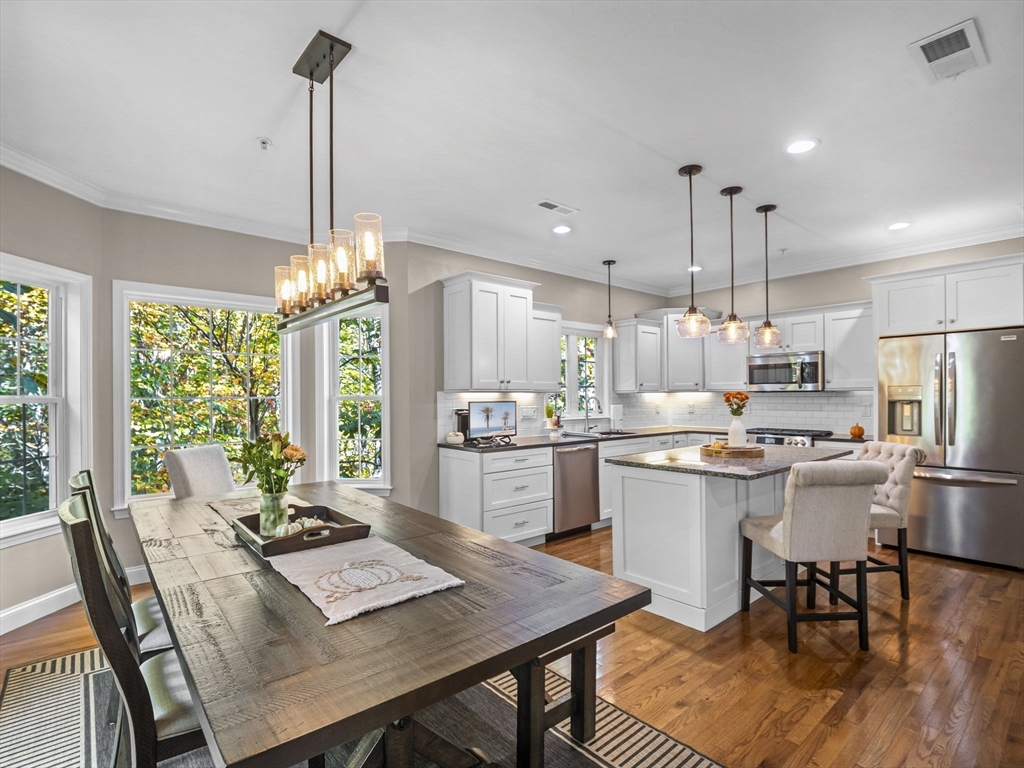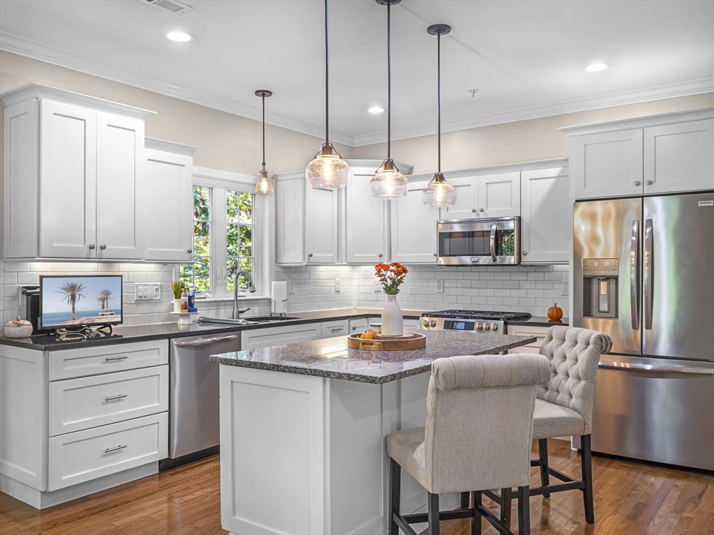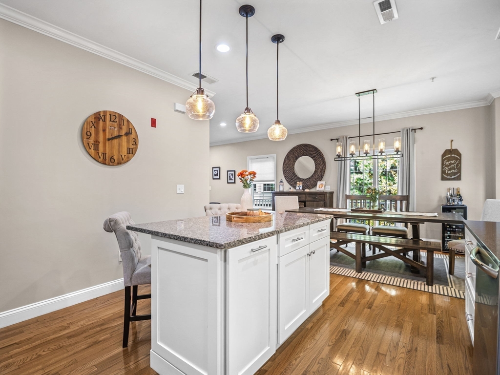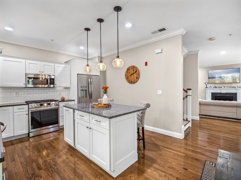 Welcome home to this beautifully maintained END UNIT townhome! This is a perfect blend of comfort, style, and convenience. From the moment you step inside, you’ll be greeted by an inviting open floor plan filled with natural light & gleaming hardwood floors.The spacious kitchen features modern cabinetry, GRANITE countertops, and a breakfast area that flows seamlessly into the dining and living space ideal for entertaining or quiet evenings at home. The family room with gas FIREPLACE provides the perfect spot to relax after a long day. Upstairs, you’ll find 3 bedrooms, including a serene primary suite with a walk-in closet, private bath & laundry. The finished lower level adds valuable living space, possible 4TH BEDROOM, perfect for a home office, gym or media room. Outside, enjoy a private deck overlooking landscaped grounds, offering a peaceful retreat for outdoor dining and gatherings. Additional features include: attached GARAGE, central air, and plenty of storage!