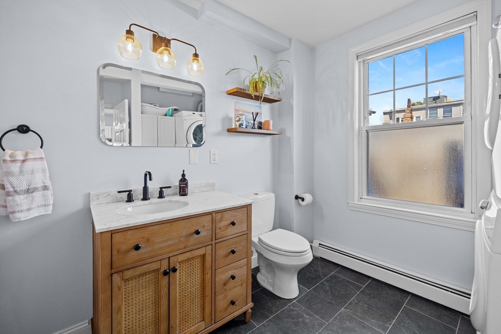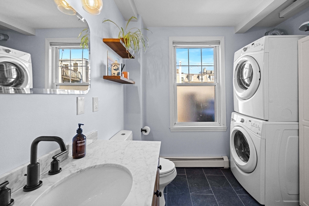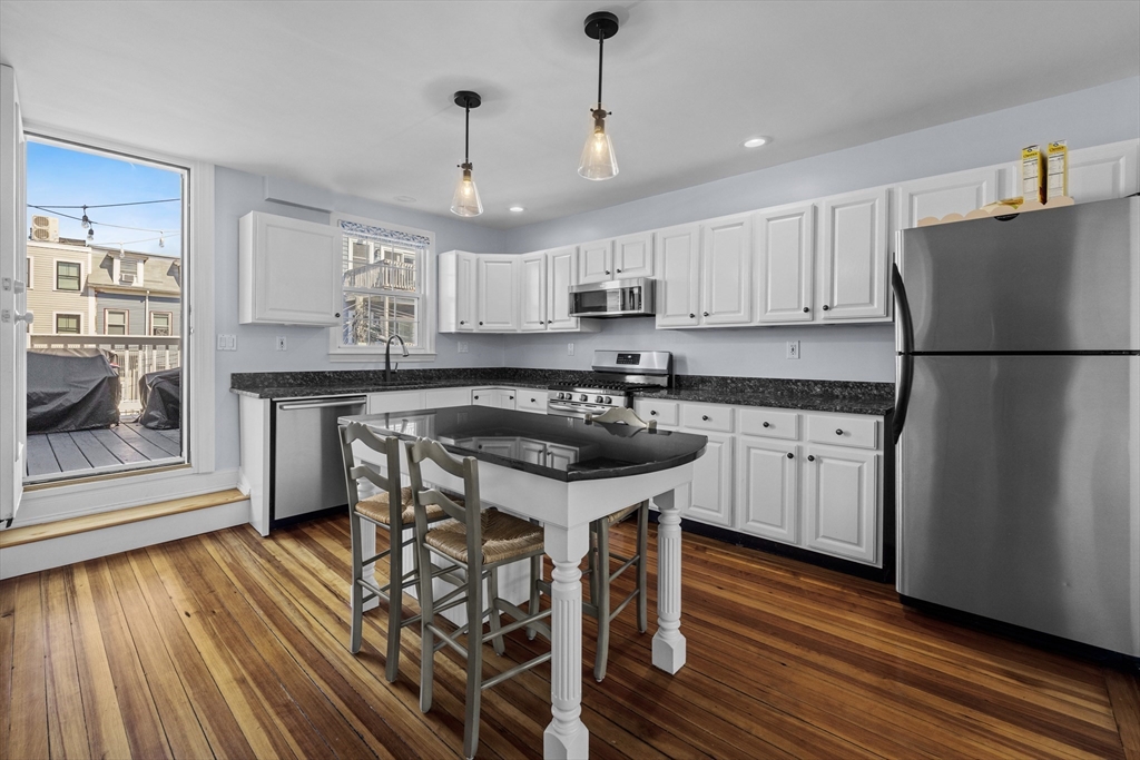 Experience elevated living in this 1,000 sq. ft. South Boston duplex spanning the top two floors of the building. Designed for both style and comfort, the open-concept chef’s kitchen anchors the first level, complemented by a versatile office nook and seamless flow to a private deck, shared patio, and an oversized deeded storage shed. Two full bathrooms include a newly renovated spa-inspired retreat, while upstairs both bedrooms offer generous proportions and ample storage. With central AC, two levels of sun-filled living, and a premier location just steps from Southie’s best dining, coffee shops, and boutiques, this home delivers a rare blend of luxury and convenience in one of Boston’s most coveted neighborhoods.