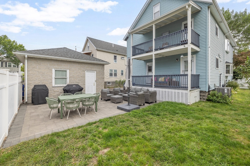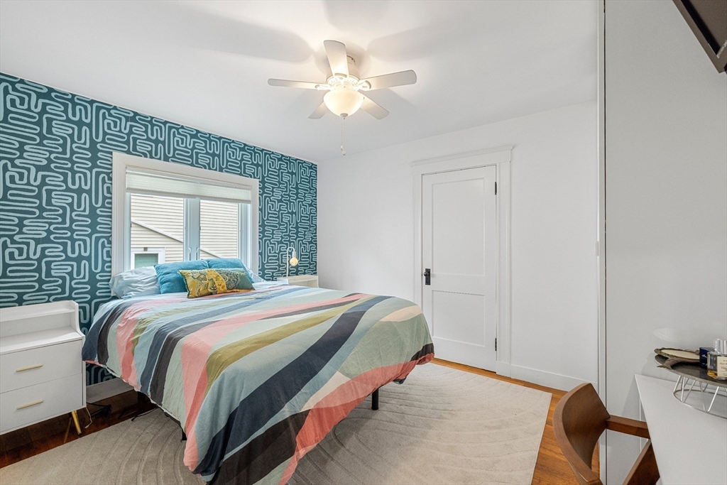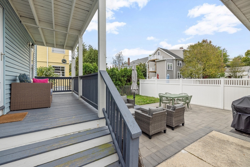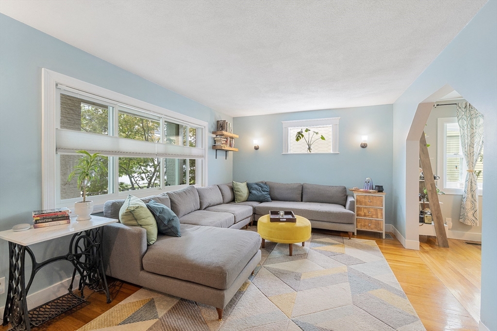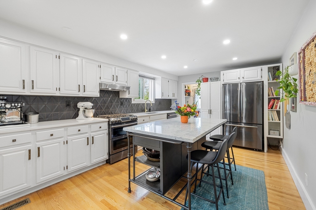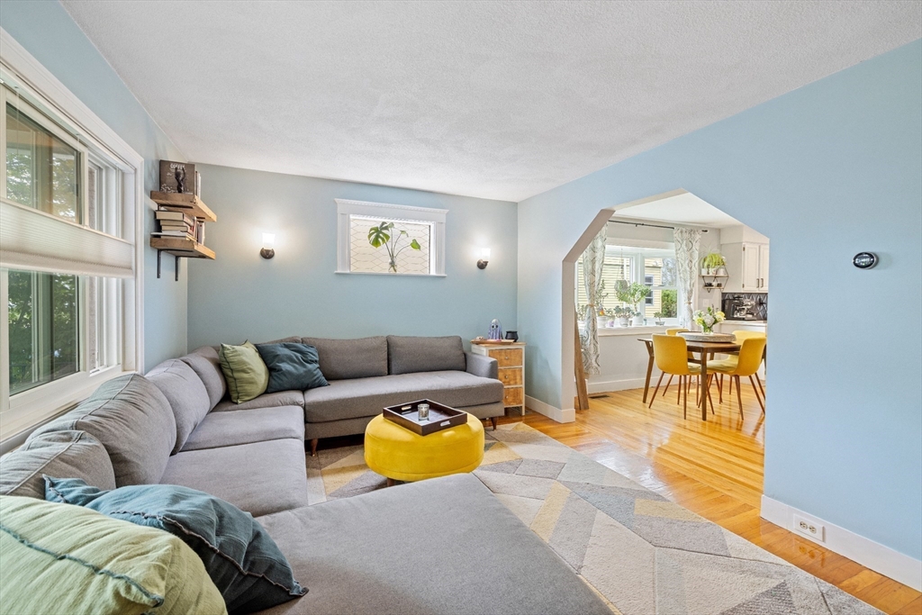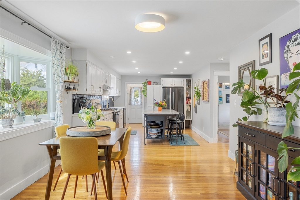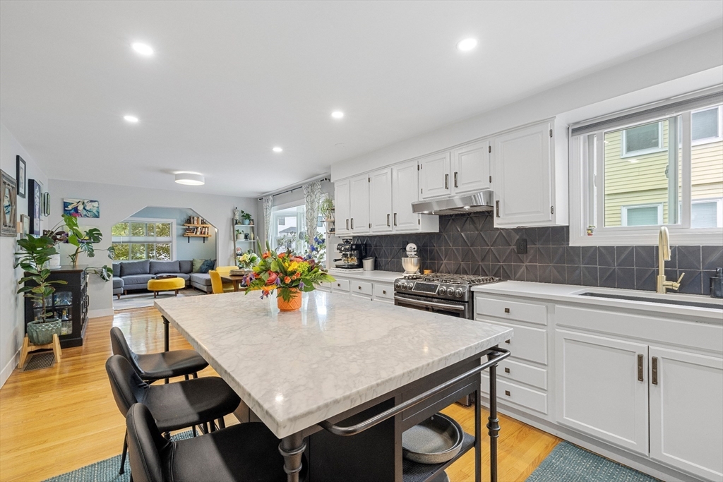 Not your average East Arlington condo! This exceptional two-bedroom has been zhushed top to bottom so you can move right in and enjoy. Step through the welcoming entryway with a coat closet and into a sun-filled living room framed by oversized windows and views of the front porch. The open dining and kitchen area is a showstopper — walls removed to create one ample space, complete with updated cabinets, counters, appliances, and a center island perfect for cooking, eating, and gathering.The bedrooms are situated on either side of a fully renovated bathroom with radiant floors, giving everyone a little privacy. Outside, a fresh patio and grassy yard make the perfect spot for morning coffee or summer hangs. New windows. Add in two parking spaces and you’re just a short walk to East Arlington’s shops, restaurants, theaters, and the Alewife bike path — plus a short jaunt or bus ride to Alewife and West Medford stops. This one truly has it all.