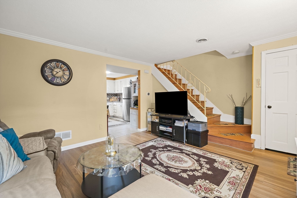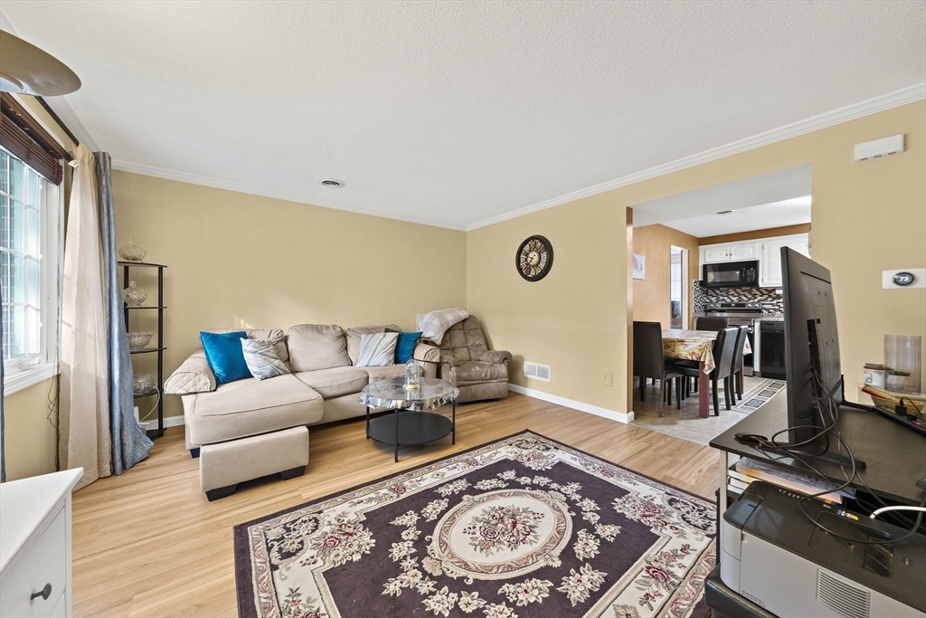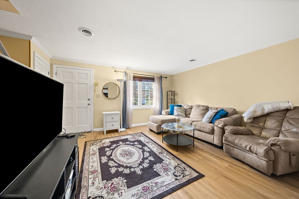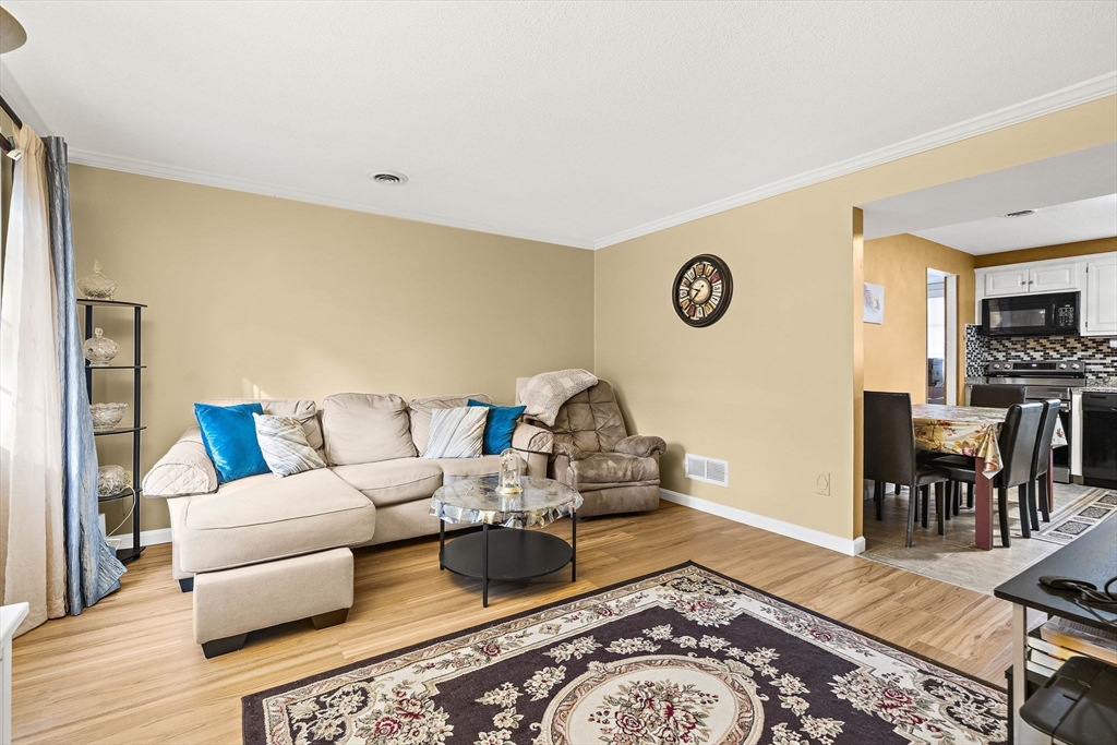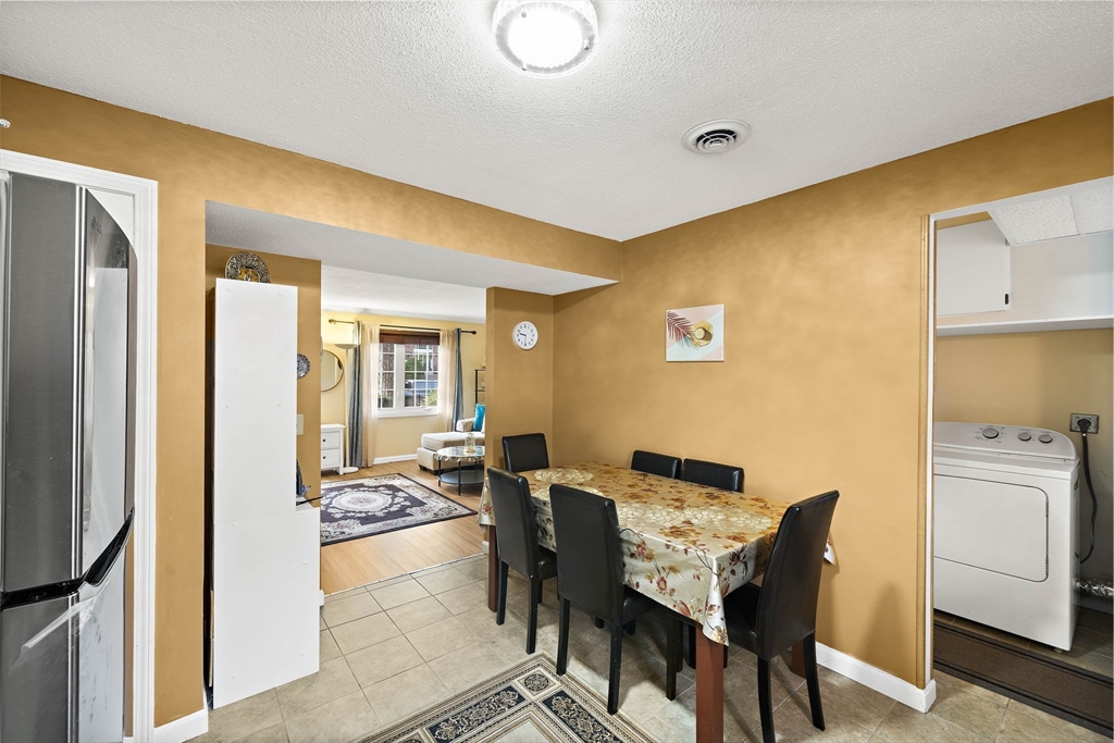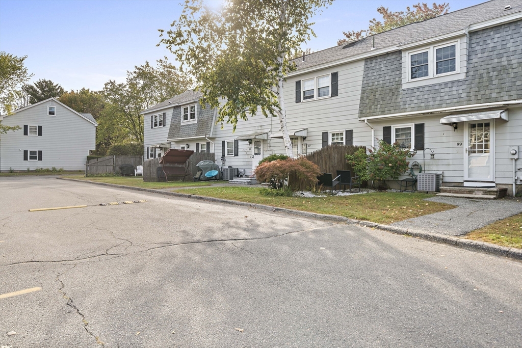 Welcome to this beautifully updated townhouse in Colonial Village, located in sought-after East Methuen, just minutes to The Loop, Tuscan Village, Merrimack Valley Golf Club, and major highways! Step inside to a sun-filled living room with new vinyl flooring and radiant heating beneath, perfect for cozy New England seasons. The kitchen shines with granite countertops, tile backsplash, and a dining area. A half bath and first-floor laundry add everyday convenience. Upstairs, find two oversized bedrooms with gleaming hardwood floors and generous closet space. The full bath was renovated in 2021 with new wall and floor tiles, an iron tub, and a new fan. The walk-up attic, insulated in 2025, provides abundant storage. Additional updates include fresh paint (2024), newer appliances (stove 2024, fridge 2025, washer 2023), and a new A/C condenser (2025). With thoughtful updates throughout and a prime commuter location, this home is truly move-in ready!