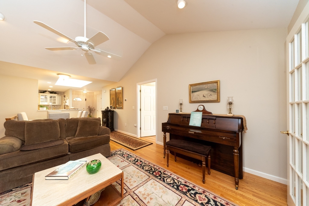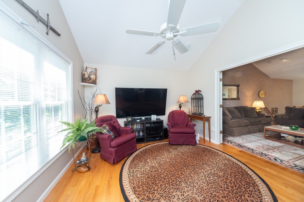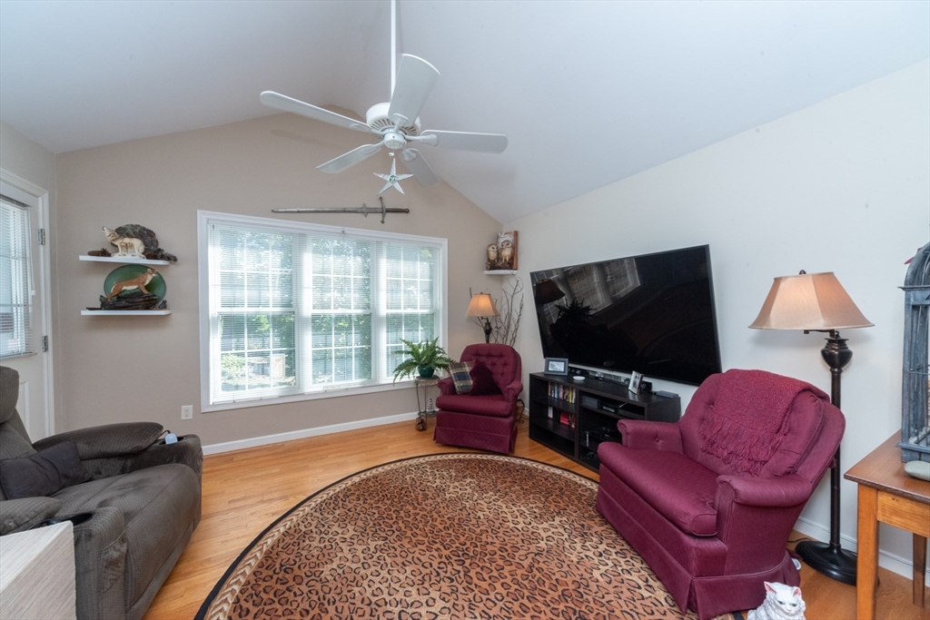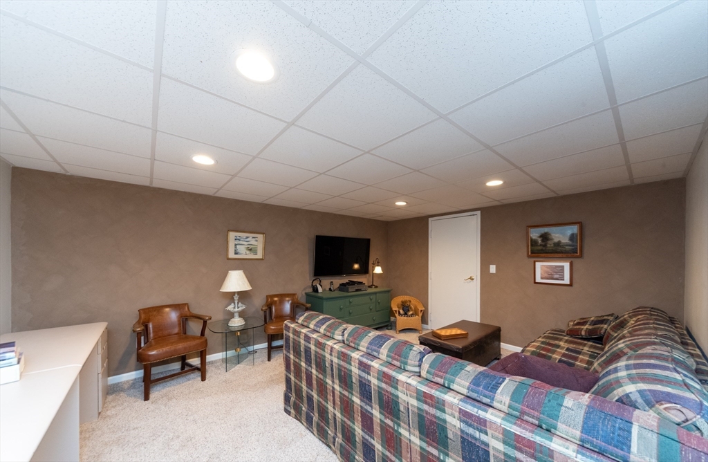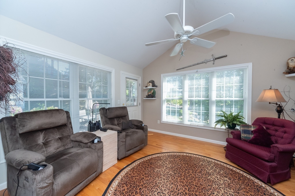 Showings begin @ OH 10/5/25 noon-1:30. Discover comfortable, flexible living in this move-in ready 55+ home at Southborough Meadows. With a bright eat-in kitchen, spacious living and dining area featuring hardwood floors, recessed lighting, & cathedral ceiling, this home is perfect for entertaining or relaxing. Enjoy the cozy sunroom/den for reading, TV, or an additional workspace w/door leading to patio. The primary suite features walk-in closet, full bath w/shower, & convenient washer/dryer area. The finished two-room lower level offers versatile space for a home office, guest bedroom, or hobby room, plus there's a large walk-in closet & ample basement storage for those downsizing. Located close to Routes 30, 9, 90, and 495, & just minutes from Exit 12 of the Mass Pike, you’ll have easy access to everything you need. Residents can also enjoy the community clubhouse, complete with a full kitchen for hosting gatherings & special events. HVAC & whole house water filter 6 yrs new.
