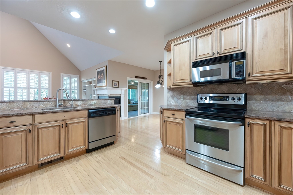 Single stand-alone 2300+sf in Ashlands premier active adult community abutting walking trails to Hopkinton state park. This home features so much on one floor plus additional space on the 2nd for guests. Step on the FRONT PORCH and enter the spacious entryway. To your left is a large light-filled den/office/sitting room and to your right a large dining room open to the kitchen. The beautiful wood cabinetry and granite countertops with breakfast peninsula and dining area overlook your family room with gas fireplace and a bank of bright windows. Off of the dining area is a 3 SEASON PORCH with access to deck. The primary bedroom with vaulted ceiling and huge walk in closets as well as oversized bath with soaking tub and shower with double vanities and lots of natural light. The 1/2 bath and mudroom with laundry finish off the first floor. The second floor loft overlooks the living room and has a full bath and guest room with large walk-in closet. The clubhouse is very active and FUN!