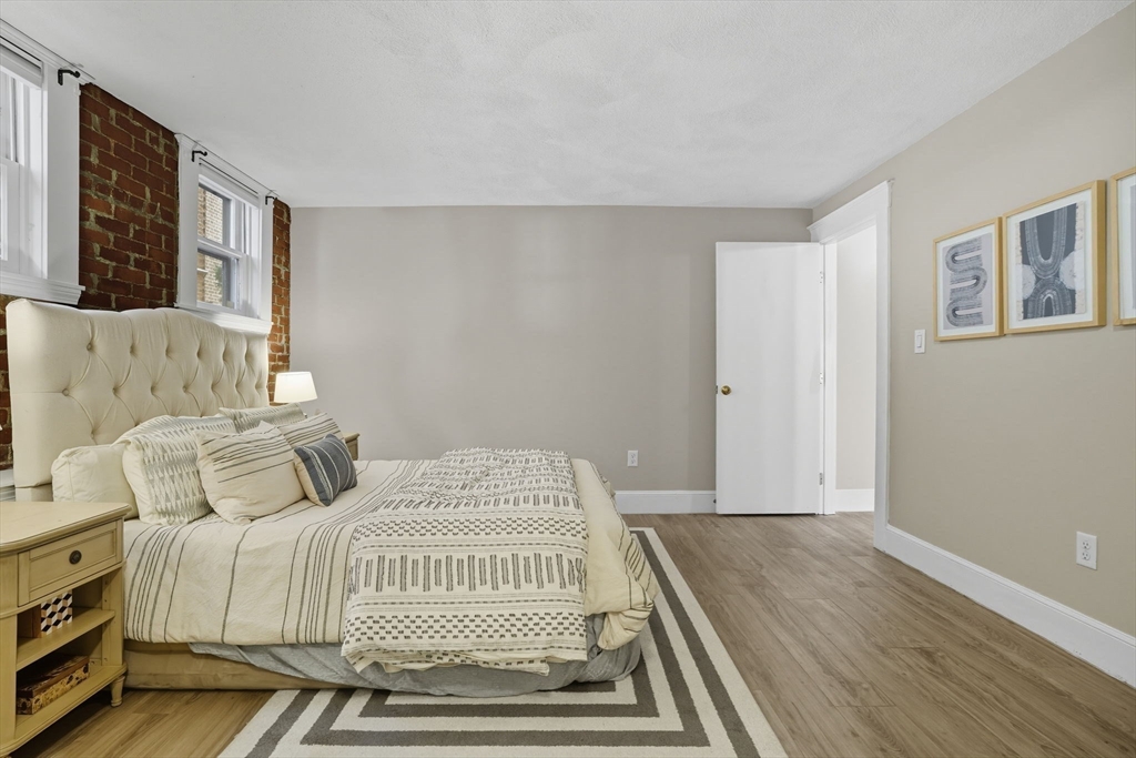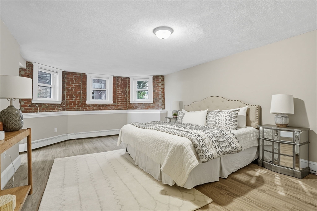 IDEALLY LOCATED & METICULOUSLY MAINTAINED, this 2 bed, 2 bath condo with over 1,100sf, 11 windows and exposed brick walls is the one you’ve been waiting for! Steps from Boston College, the Chestnut Hill Reservoir and the Green Line, this spacious unit features an updated, open-plan kitchen and family room that is perfect for entertaining and modern living; a generously sized primary bedroom with double closet and updated, en-suite bath; 2nd bedroom with two double closets; updated 2nd full bath; and plenty of storage. Recent updates include the installation of 6 new windows, both unit-entry doors, a sound absorption system, and vent hood above the stove. Located just outside of Cleveland Circle, this charming, pet-friendly brownstone building is right on the B line and .5 miles to the C & D lines.