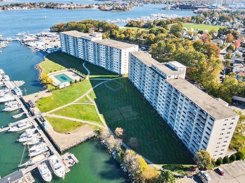 Presenting a delightful condominium residence overlooking the beautiful Town River bay and yacht club. This home on the sixth floor offers a comfortable experience within its single-story layout, featuring two large bedrooms and two full bathrooms thoughtfully designed to serve residents and guests alike. The open concept living offers plenty of sunshine pouring in your living room with beautiful hardwood flooring, extending into the dining room and the kitchen. The kitchen with stainless steel appliances will not disappoint culinary enthusiasts, offering plenty of counter top and cabinet space. With 1151 square feet of living area, this condominium provides a balanced and functional layout. On-site amenities include an outdoor pool, tennis courts, a fitness room with a sauna and an on-site building manager. Location, location, location!! Less than fifteen minutes to downtown Boston and four minutes drive Quincy center station! Don't miss this great opportunity.