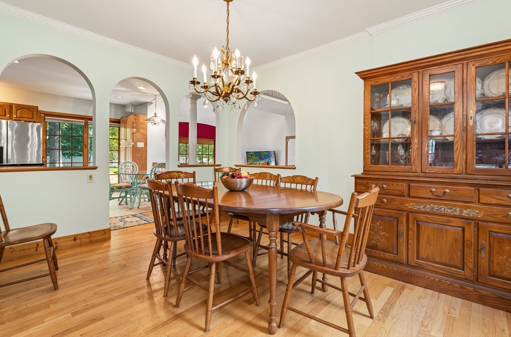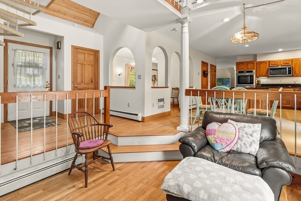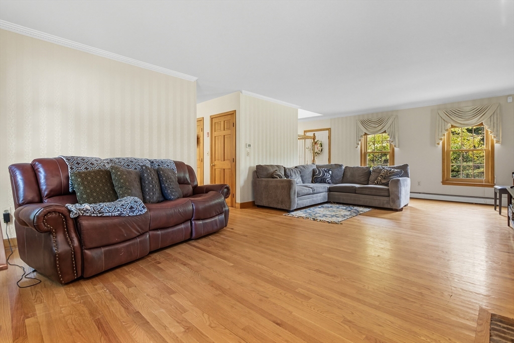 Motivated Seller! Tucked away on a peaceful dead end in West Newbury sits this spacious central entrance Cape with charming dormers. Sprawling across 2,650 square feet, this 4-bedroom, 2.5-bath residence offers tremendous potential on nearly half an acre. Never lose power with the whole-house backup generator while enjoying the ambiance of two propane fireplaces during New England winters. The primary suite boasts an ensuite bath and walk-in closet. Entertain with ease in the kitchen featuring a center island, granite countertops, and stainless steel appliances. Step outside to the patio and gather around the fire pit on cool evenings. Additional highlights include a partially finished basement with game and workout areas, double-car garage with extra storage, and a convenient shed. Built in 1989 and ready for your personal touches, this solid home in the desirable Pentucket Regional school district presents the perfect opportunity to create your dream space in a tranquil setting.
