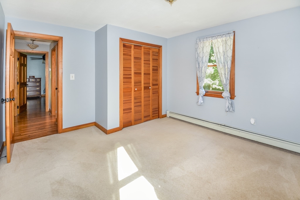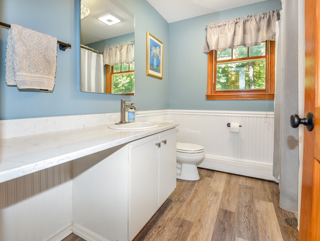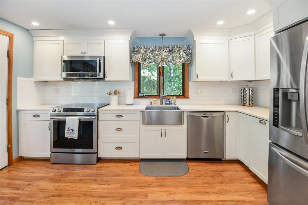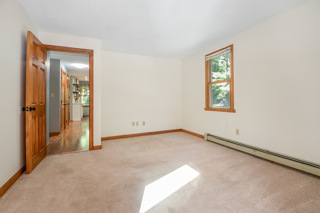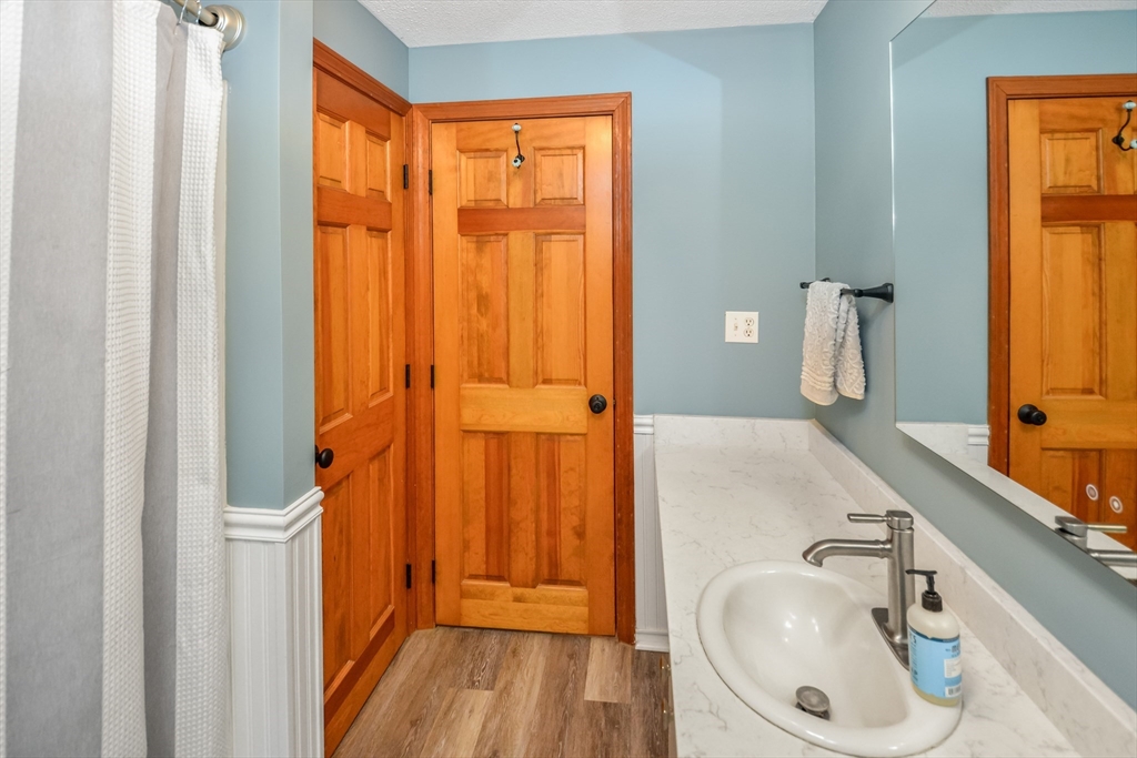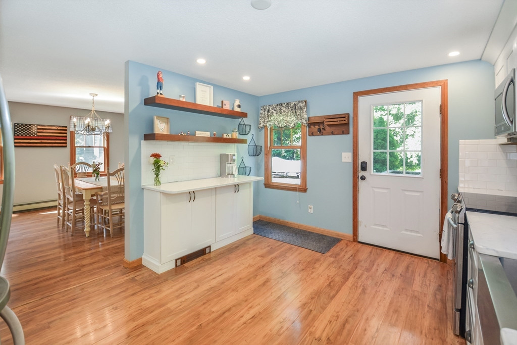 Welcome to this beautifully maintained 3-bedroom, 2-bath Cape nestled at the end of a cul-de-sac. Set on a spacious lot surrounded by nature, this home offers the perfect blend of classic New England charm and modern updates. The inviting living room features a woodstove with a cozy feel, an updated kitchen with plenty of cabinet space. A flexible floor plan provides a first-floor home office, playroom, or guest room, while 3 additional bedrooms upstairs offer comfort and privacy. The bonus feature of this home is the sunroom that offers tons of natural light, hot tub and entertaining space. Step outside to enjoy a large private yard with above ground pool gazebo and access to neighborhood trails. This home is a rare find!