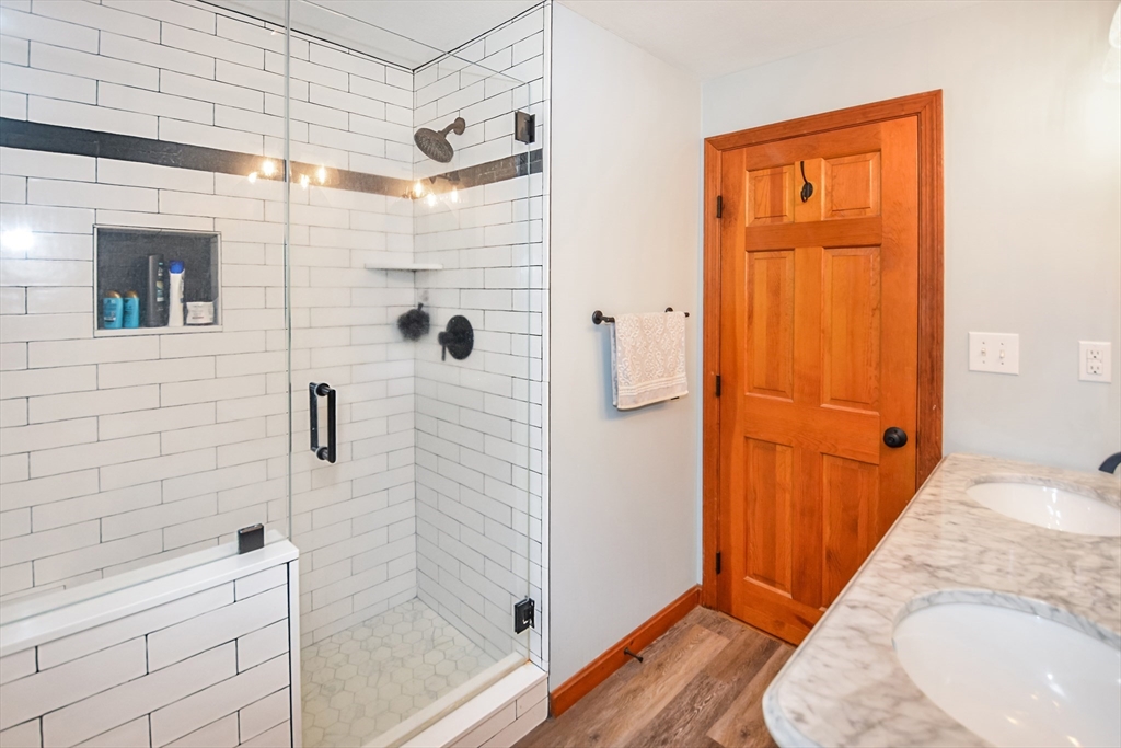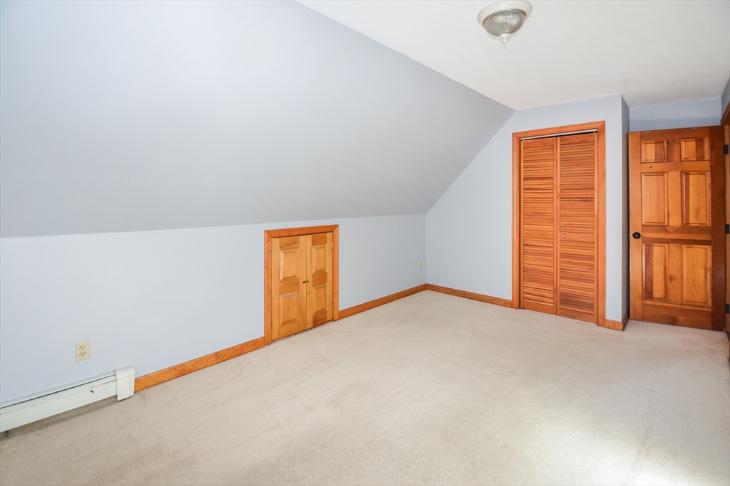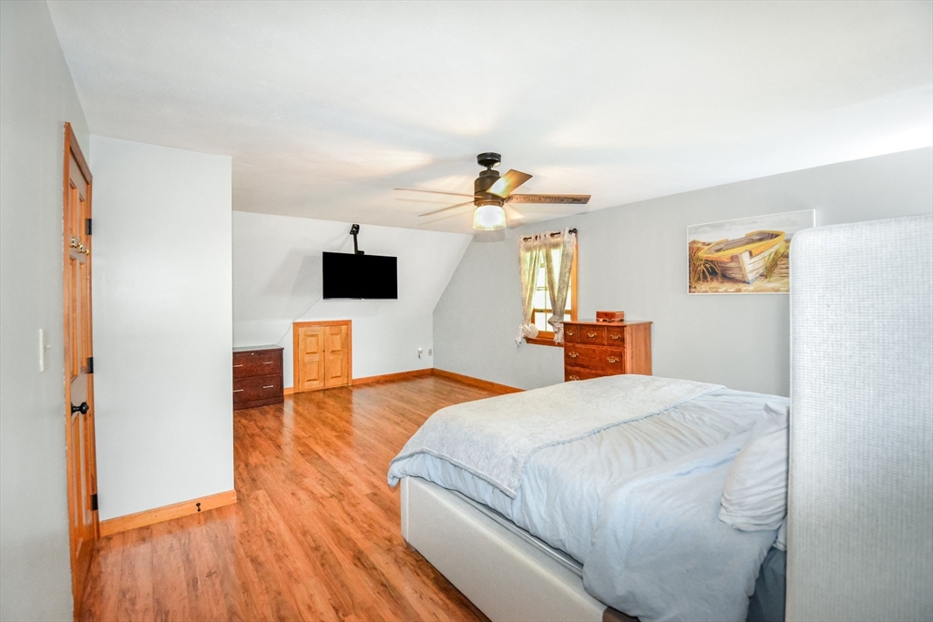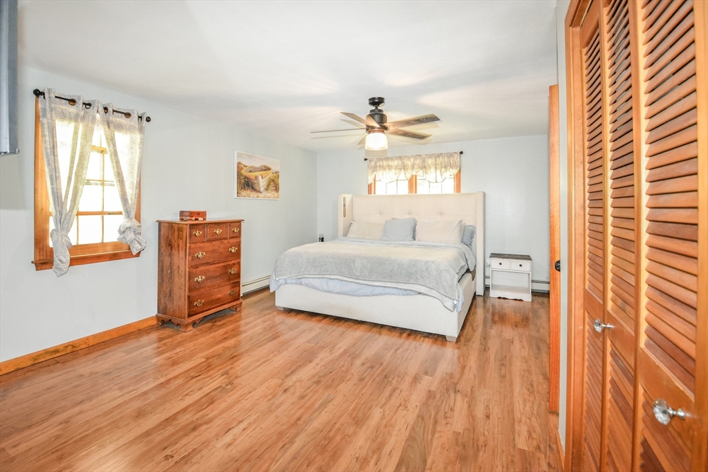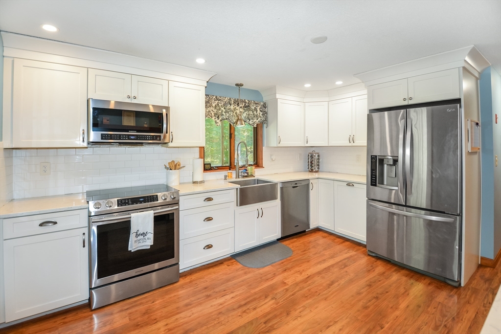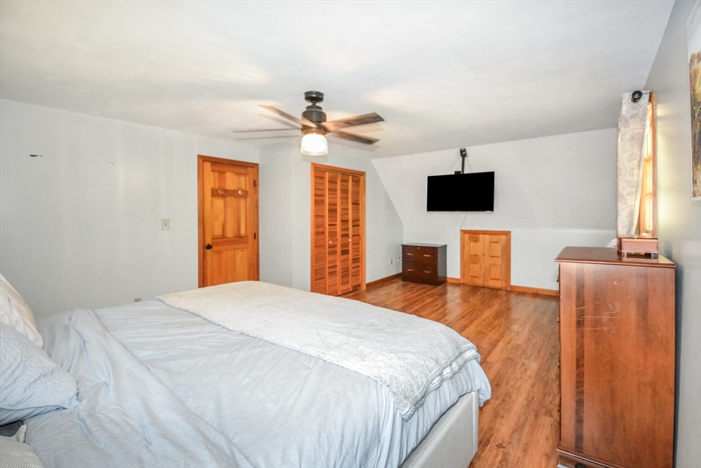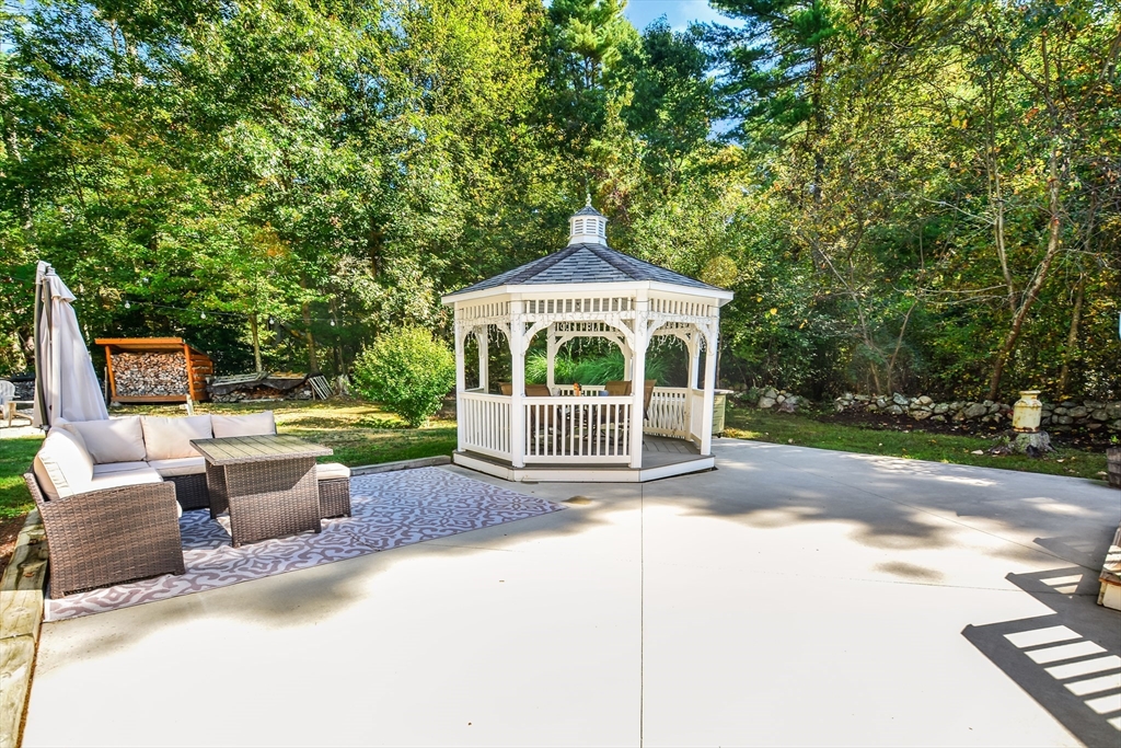 Welcome to this beautifully maintained 3-bedroom, 2-bath Cape nestled at the end of a cul-de-sac. Set on a spacious lot surrounded by nature, this home offers the perfect blend of classic New England charm and modern updates. The inviting living room features a woodstove with a cozy feel, an updated kitchen with plenty of cabinet space. A flexible floor plan provides a first-floor home office, playroom, or guest room, while 3 additional bedrooms upstairs offer comfort and privacy. The bonus feature of this home is the sunroom that offers tons of natural light, hot tub and entertaining space. Step outside to enjoy a large private yard with above ground pool gazebo and access to neighborhood trails. This home is a rare find!