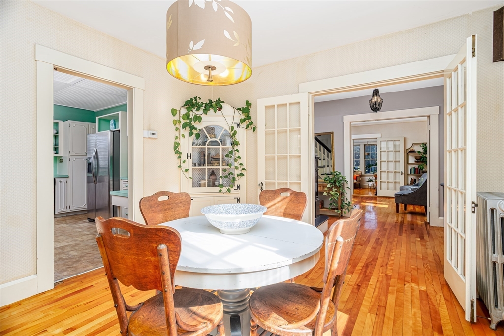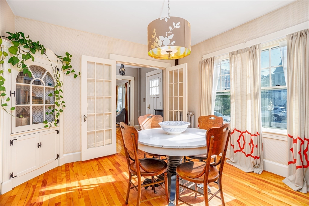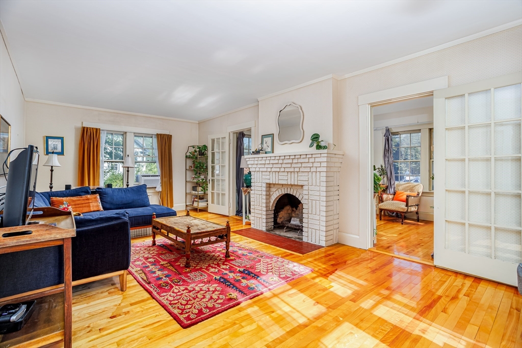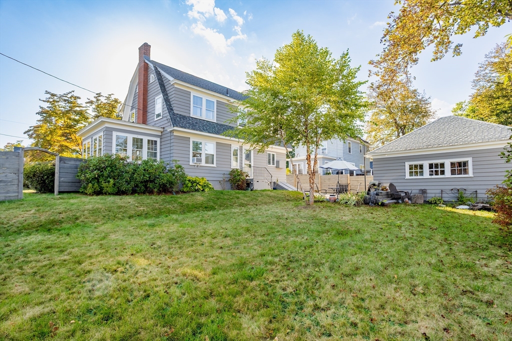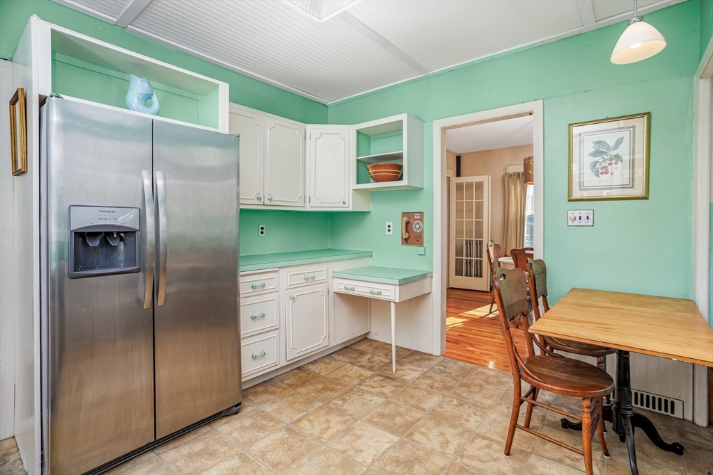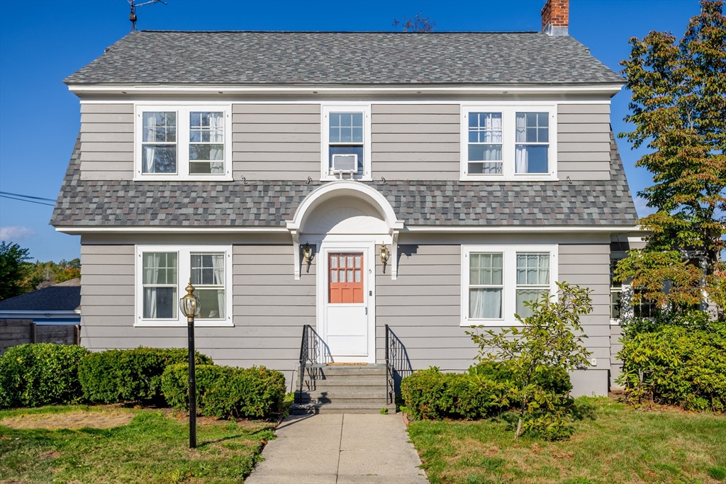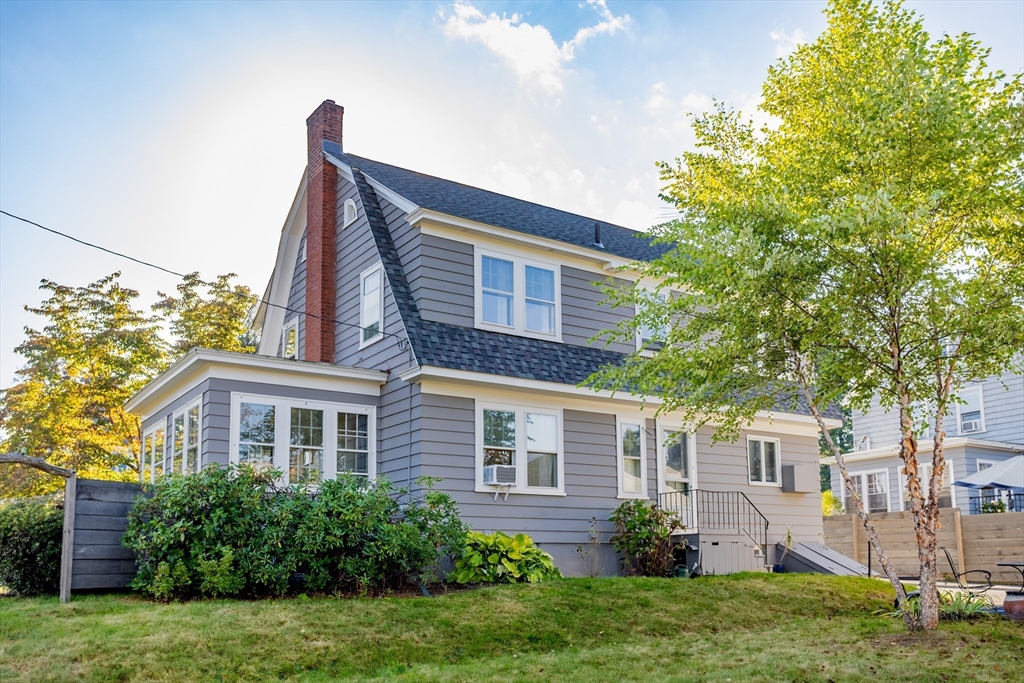 Step into this bright and beautiful Dutch Colonial Revival full of character and warmth! The heart of the home is the spacious kitchen featuring stainless steel appliances, an abundance of cabinets & counter space, plus a charming built-in bench that creates the perfect little eat-in nook. French doors invite you into the formal dining room, highlighted by a built-in China cabinet, while another set of French doors opens into the living room with a cozy fireplace. Off the living room find a sunroom that floods the space with natural light. A convenient half bath on the 1st floor is perfect for guests. Upstairs, the primary bedroom offers hardwood floors & 2 closets, with 3 additional bedrooms & a full bath completing the 2nd level. The partially finished basement provides even more space with a bar and half bathroom, ideal for entertaining. The walk-up attic offers potential to finish & add value with even more living space! Enjoy a field & playground across the street. Close to Rt 2!
