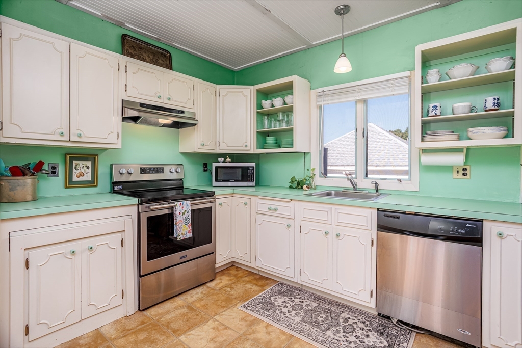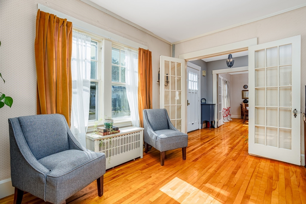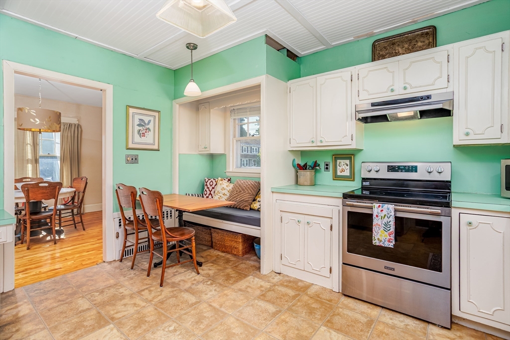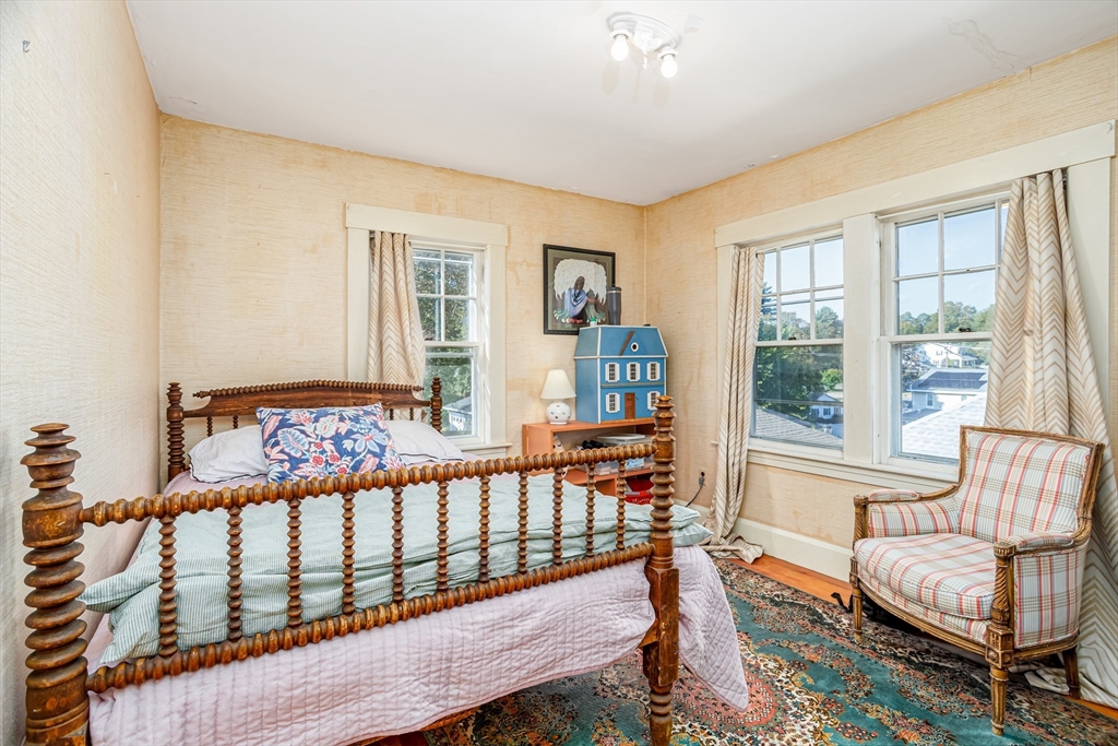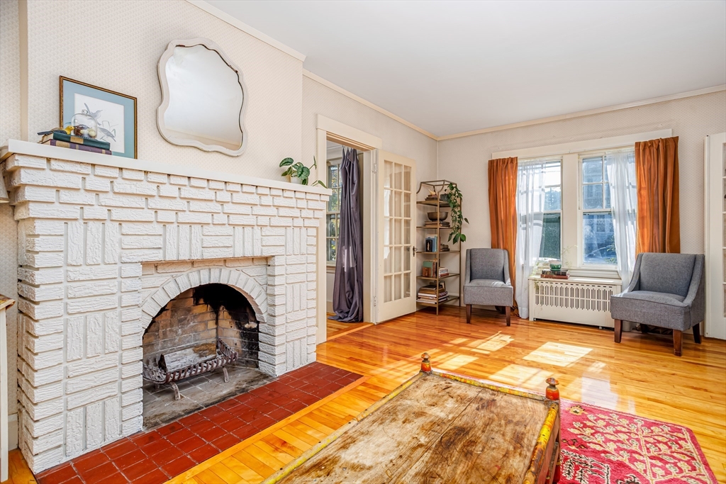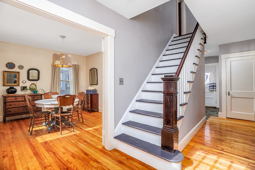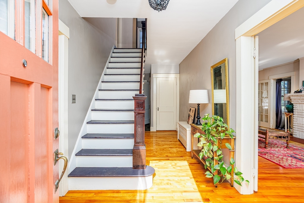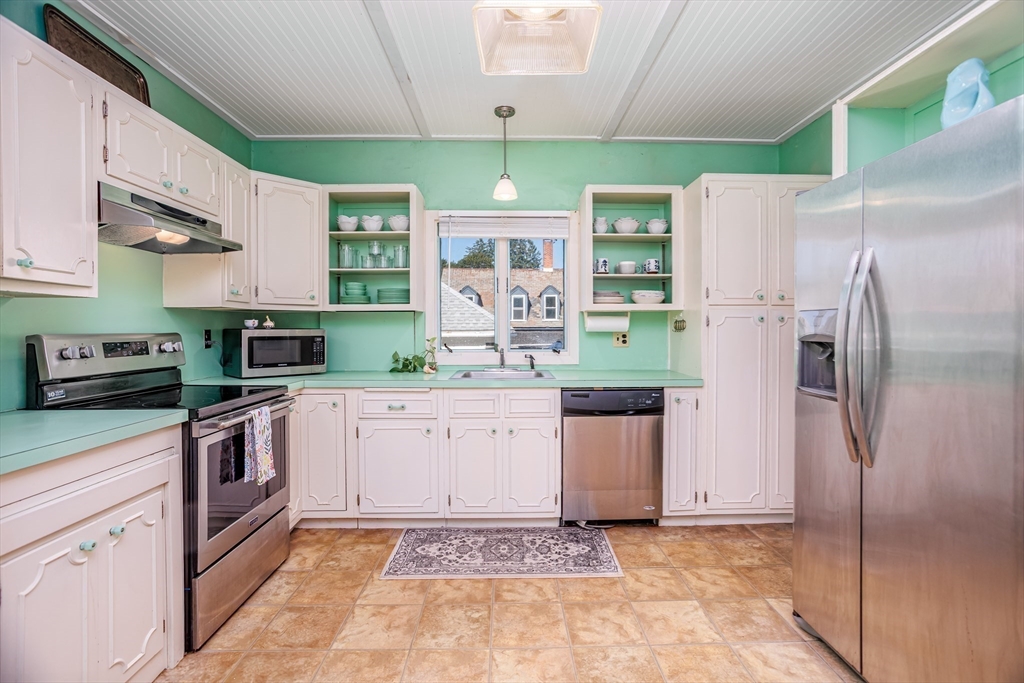 Step into this bright and beautiful Dutch Colonial Revival full of character and warmth! The heart of the home is the spacious kitchen featuring stainless steel appliances, an abundance of cabinets & counter space, plus a charming built-in bench that creates the perfect little eat-in nook. French doors invite you into the formal dining room, highlighted by a built-in China cabinet, while another set of French doors opens into the living room with a cozy fireplace. Off the living room find a sunroom that floods the space with natural light. A convenient half bath on the 1st floor is perfect for guests. Upstairs, the primary bedroom offers hardwood floors & 2 closets, with 3 additional bedrooms & a full bath completing the 2nd level. The partially finished basement provides even more space with a bar and half bathroom, ideal for entertaining. The walk-up attic offers potential to finish & add value with even more living space! Enjoy a field & playground across the street. Close to Rt 2!