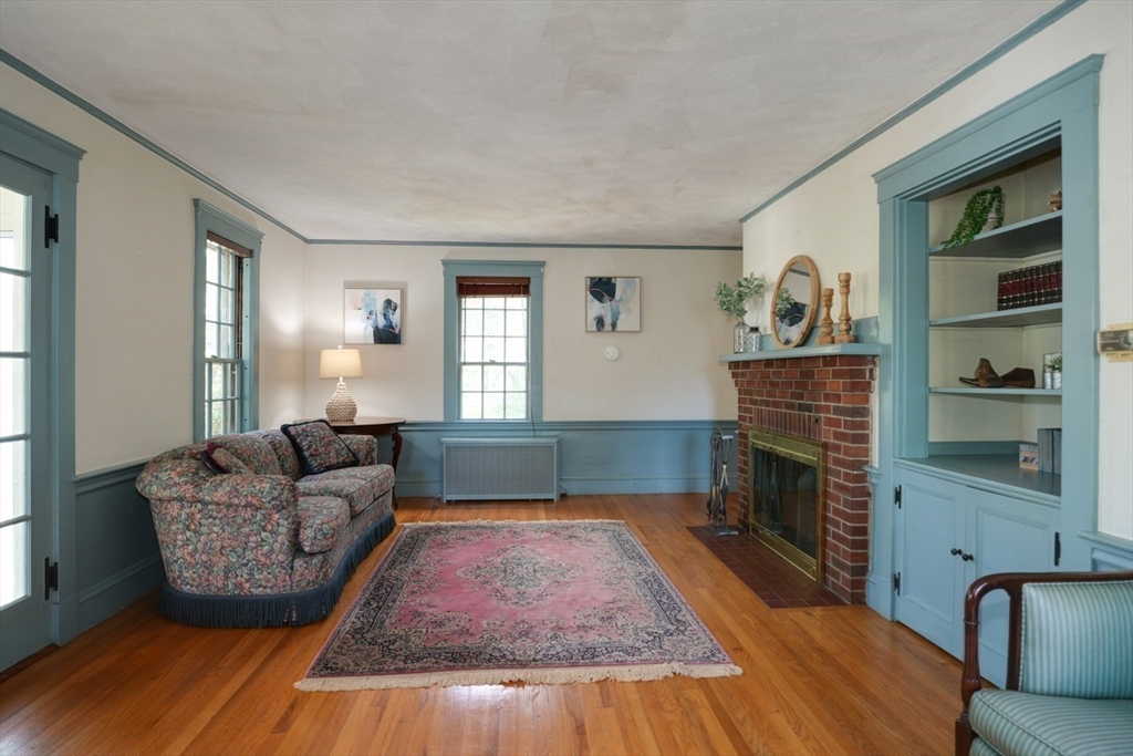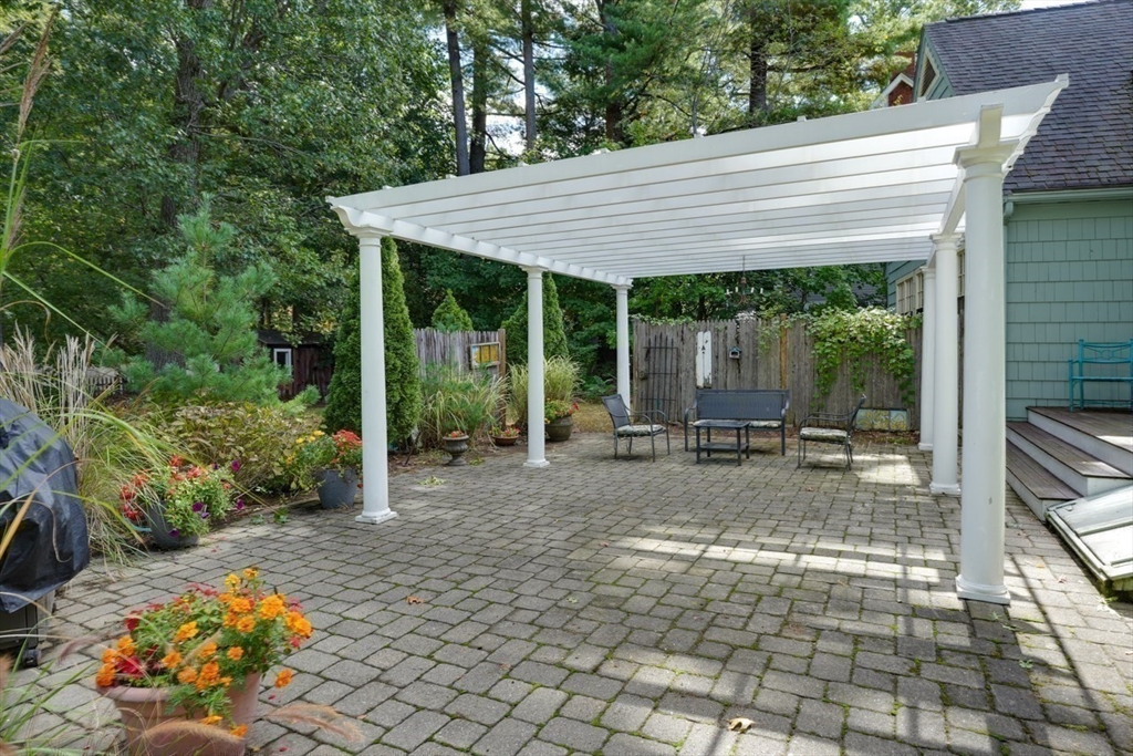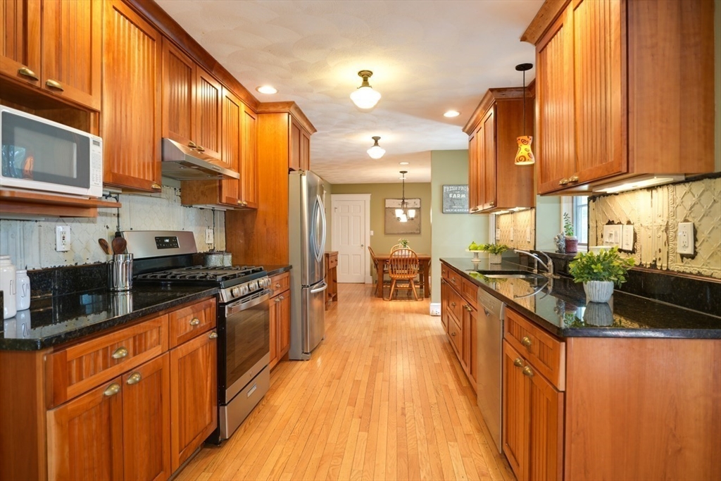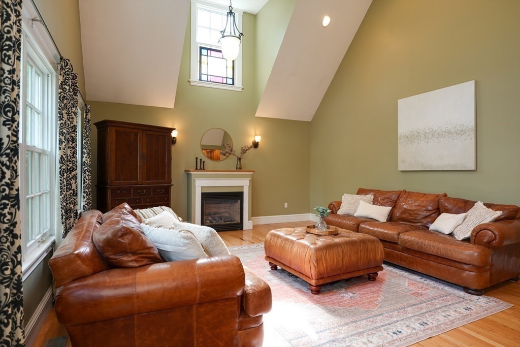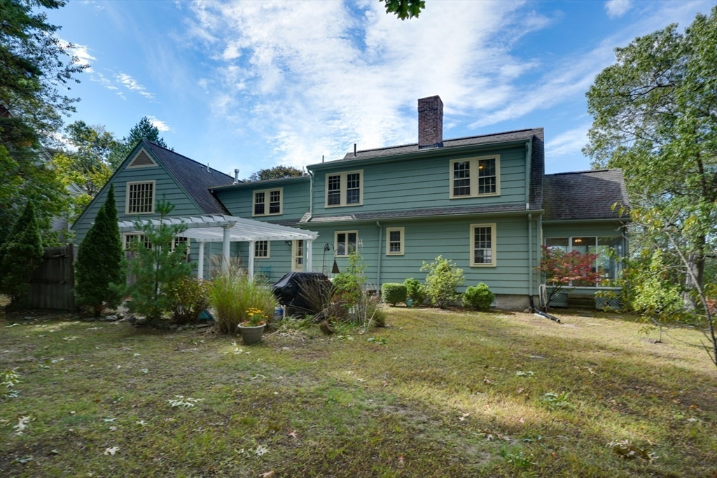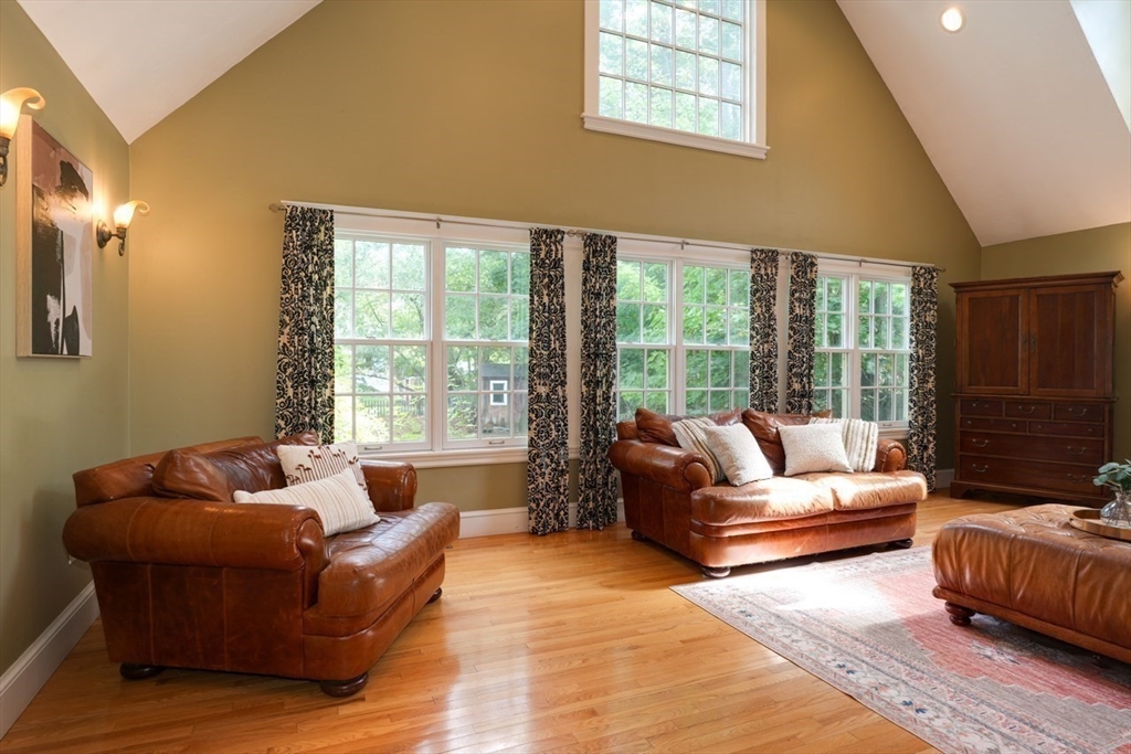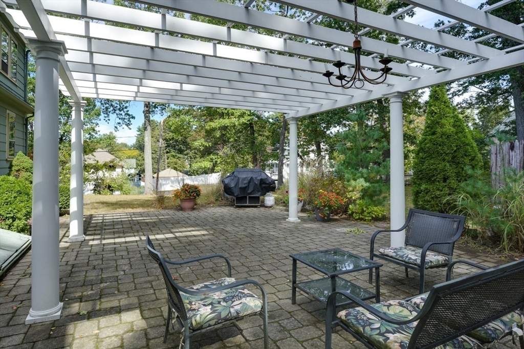 Spacious and beautifully set on a corner lot, this expanded Cape offers room to grow in a prime West Side location near the commuter rail & Lake Quannapowitt. A thoughtful addition created a sun-filled great room with vaulted ceilings & a gas fireplace that seamlessly opens to a kitchen boasting cherry cabinets, stainless appliances & granite counters. Enjoy both casual & formal dining with a charming eat-in area & an elegant dining room with built-ins. The formal front-to-back fireplaced living room provides warmth & character leading you to a 3 season porch overlooking your yard. Better weather? Entertain outside on your oversized patio with pergola off the kitchen. Upstairs - 5 true bedrooms, including a stunning primary suite with high ceilings, an additional fireplace, & private bath offering both a shower & jet tub. With a two-car garage, versatile floor plan, and inviting spaces inside and out, the home you've been waiting for has just come on the market.