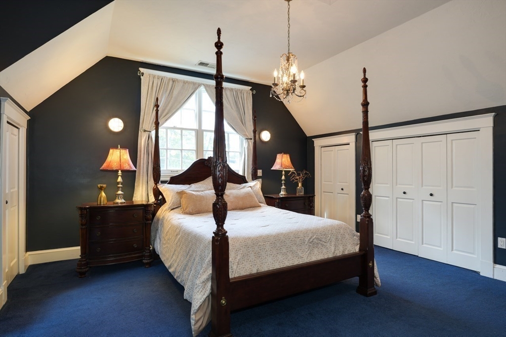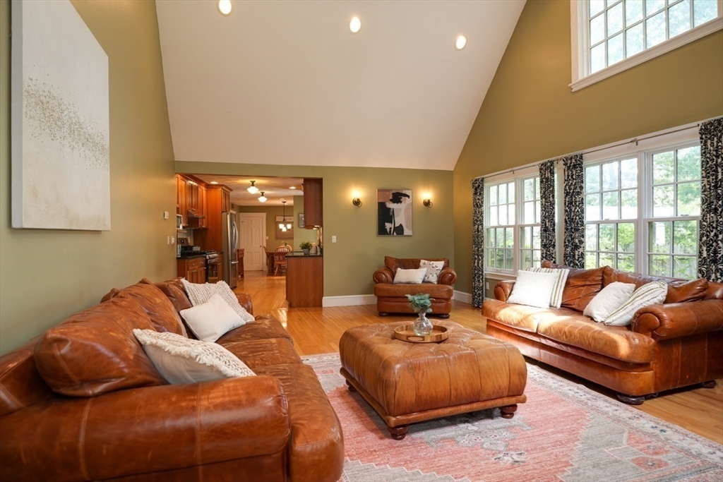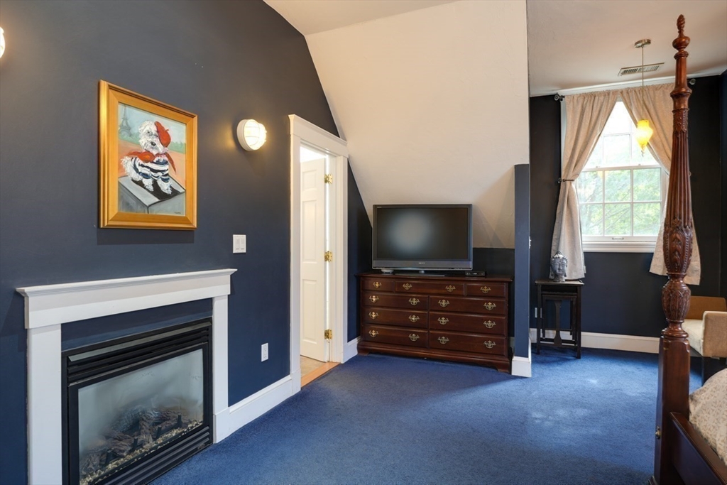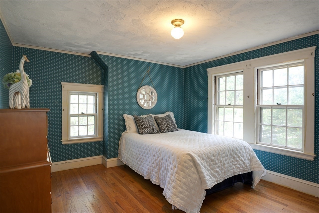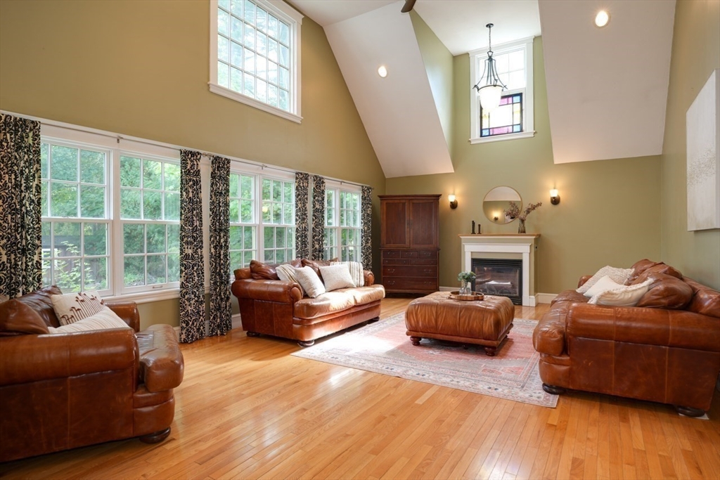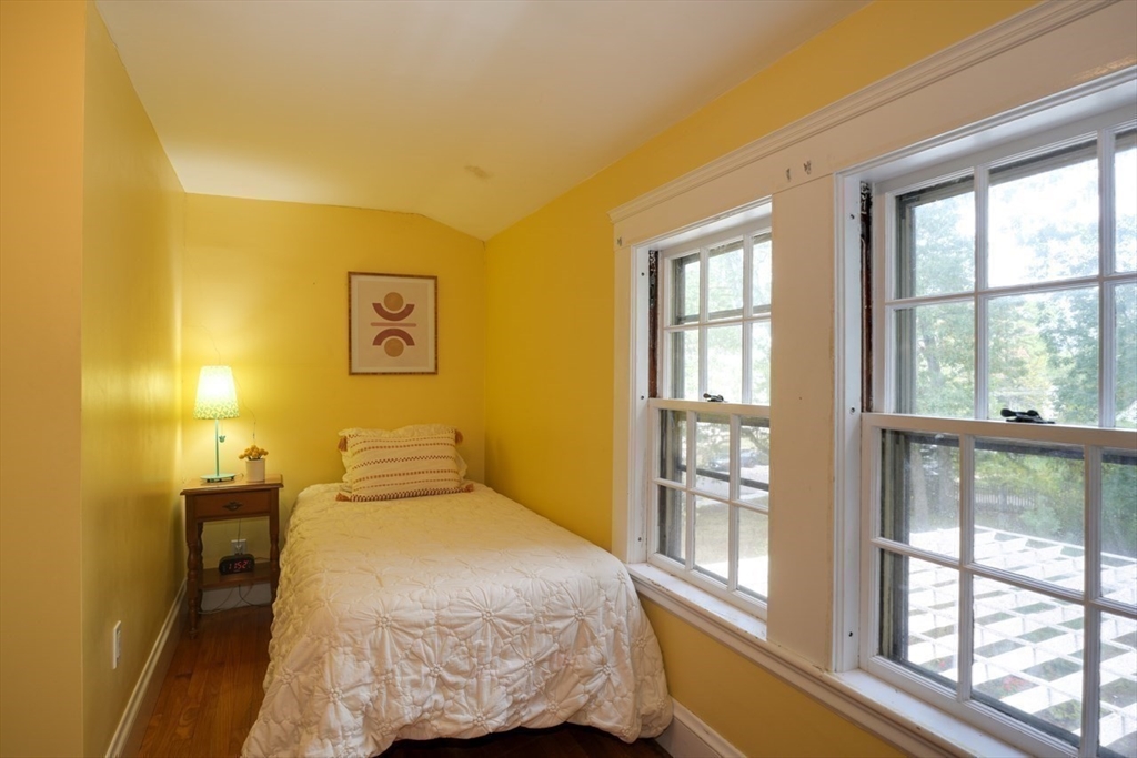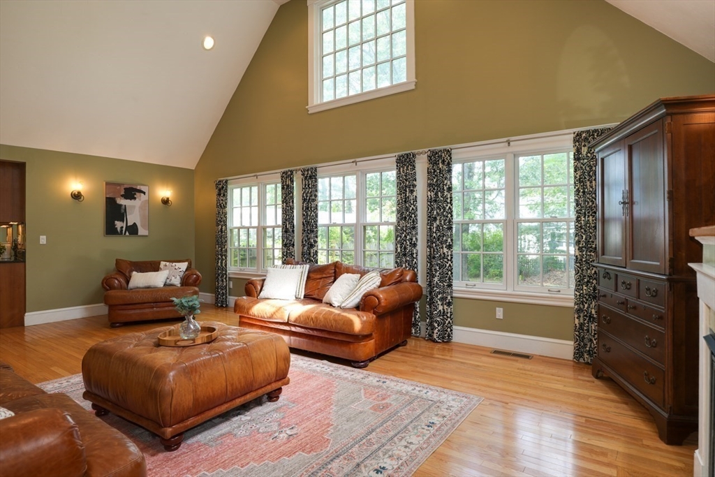 Spacious and beautifully set on a corner lot, this expanded Cape offers room to grow in a prime West Side location near the commuter rail & Lake Quannapowitt. A thoughtful addition created a sun-filled great room with vaulted ceilings & a gas fireplace that seamlessly opens to a kitchen boasting cherry cabinets, stainless appliances & granite counters. Enjoy both casual & formal dining with a charming eat-in area & an elegant dining room with built-ins. The formal front-to-back fireplaced living room provides warmth & character leading you to a 3 season porch overlooking your yard. Better weather? Entertain outside on your oversized patio with pergola off the kitchen. Upstairs - 5 true bedrooms, including a stunning primary suite with high ceilings, an additional fireplace, & private bath offering both a shower & jet tub. With a two-car garage, versatile floor plan, and inviting spaces inside and out, the home you've been waiting for has just come on the market.