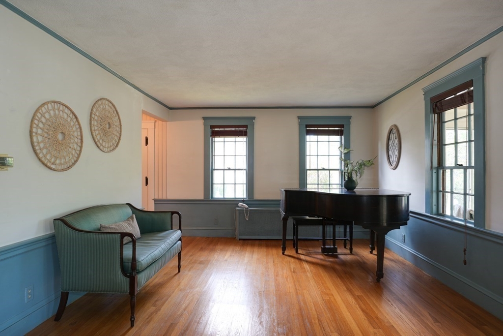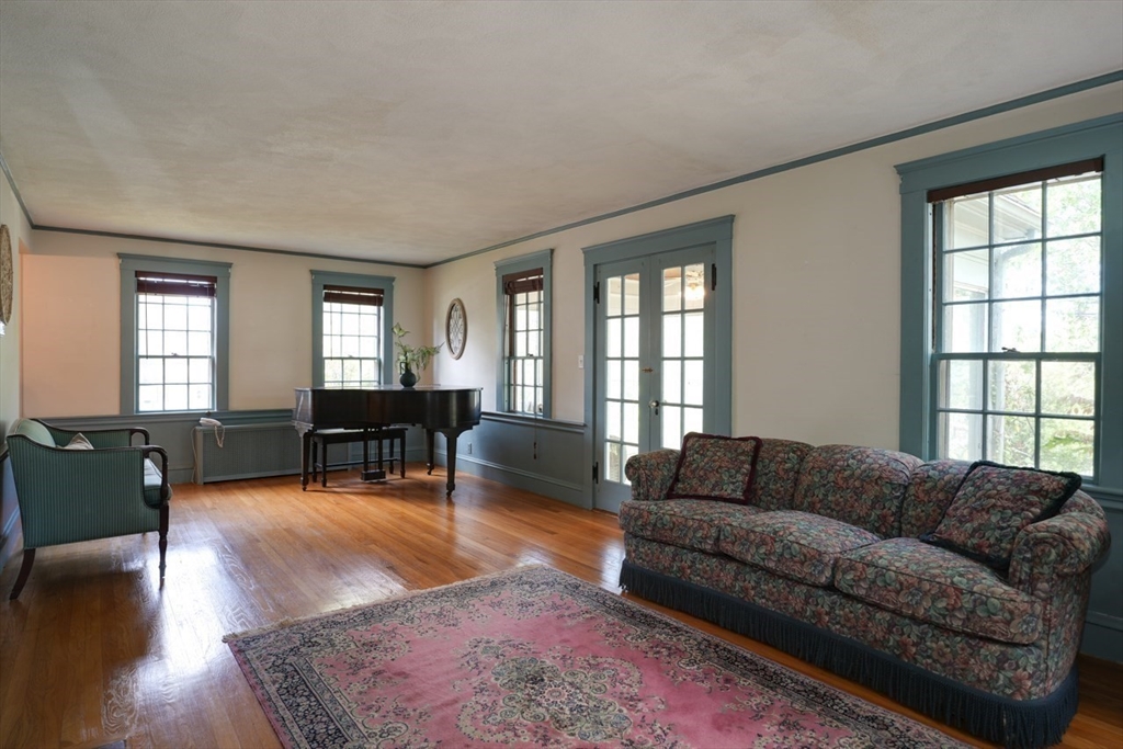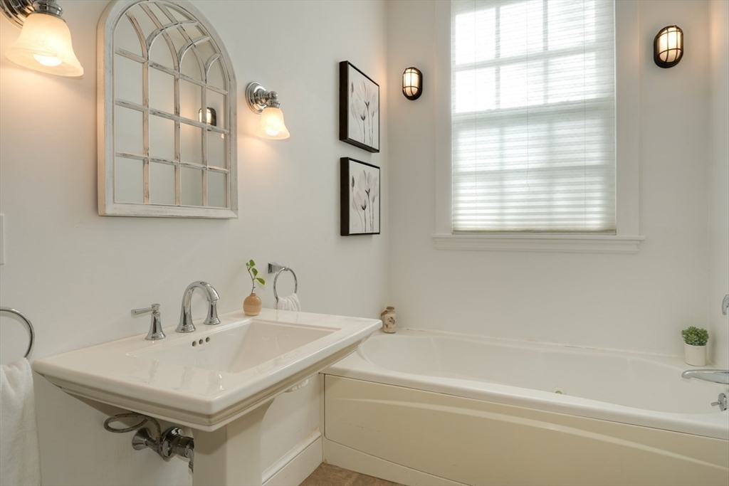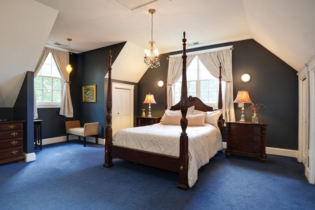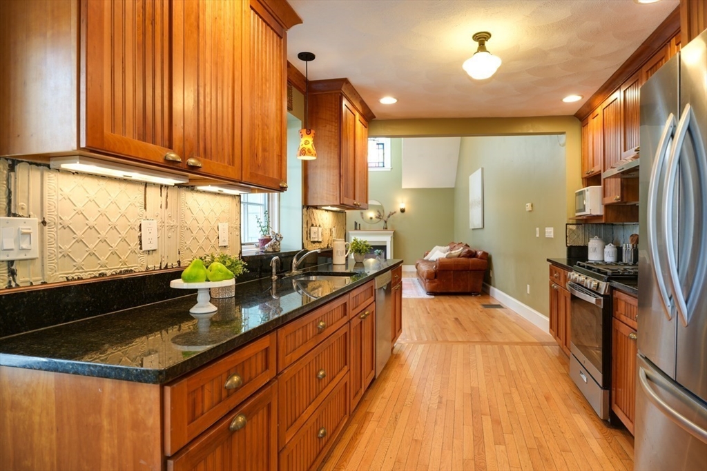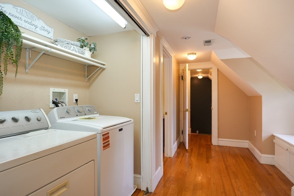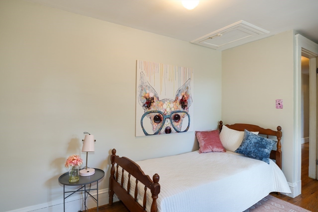 Spacious and beautifully set on a corner lot, this expanded Cape offers room to grow in a prime West Side location near the commuter rail & Lake Quannapowitt. A thoughtful addition created a sun-filled great room with vaulted ceilings & a gas fireplace that seamlessly opens to a kitchen boasting cherry cabinets, stainless appliances & granite counters. Enjoy both casual & formal dining with a charming eat-in area & an elegant dining room with built-ins. The formal front-to-back fireplaced living room provides warmth & character leading you to a 3 season porch overlooking your yard. Better weather? Entertain outside on your oversized patio with pergola off the kitchen. Upstairs - 5 true bedrooms, including a stunning primary suite with high ceilings, an additional fireplace, & private bath offering both a shower & jet tub. With a two-car garage, versatile floor plan, and inviting spaces inside and out, the home you've been waiting for has just come on the market.