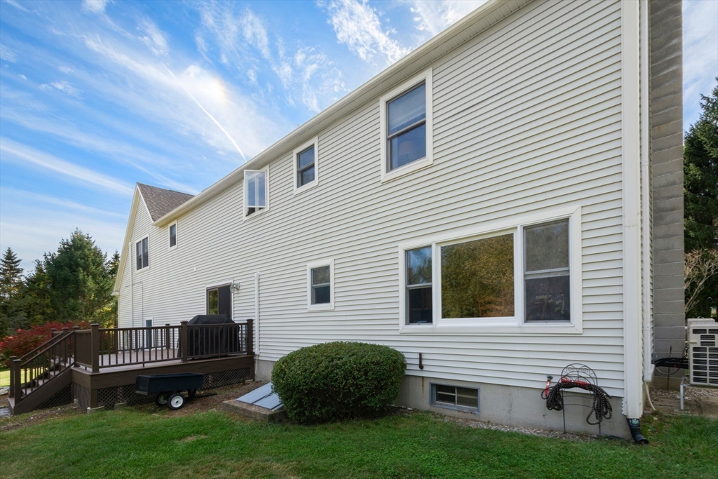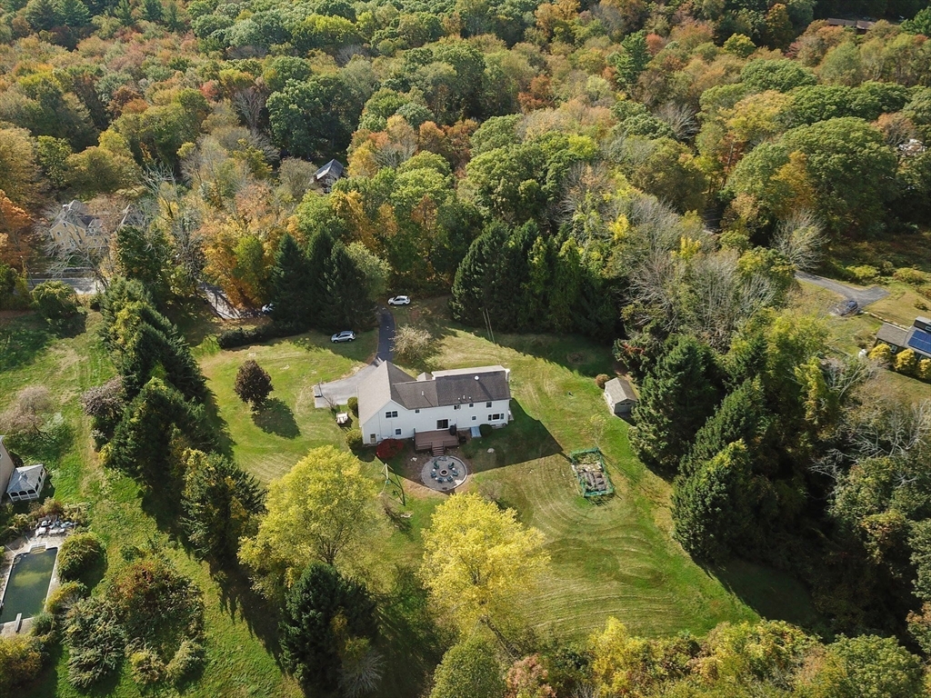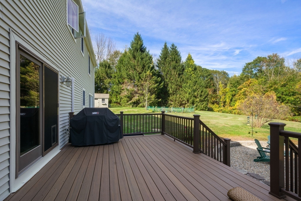 OPEN HOUSE SAT 10/4 12:30-2:00pm. A traditional Farmer's Porch with an inspired mahogany deck welcomes you to this classic home on three stunning acres! An exceptional opportunity to experience comfortable living in a serene setting, it is well suited for multi-generational living. Natural light fills the Dining area while ample prep space, a granite island, and young SS appliances define the kitchen. Find peaceful relaxation and the warmth of a Harmon pellet stove in the Sitting Room. Family Room sliders extend living space to a low maintenance deck (2020) with a fabulous view. The second floor presents four Bedrooms, three full Baths boasting tile floors, and laundry area. Flexible Recreation Room (2021) living area over the garage features a pull-down movie screen, a full kitchen and bath, and separate front entrance for your Super Bowl guests or college student living at home. Updates include vinyl siding, oversized garage, and beautiful oak floors.