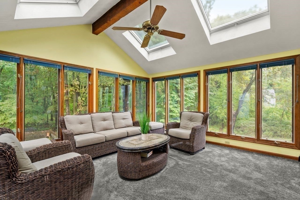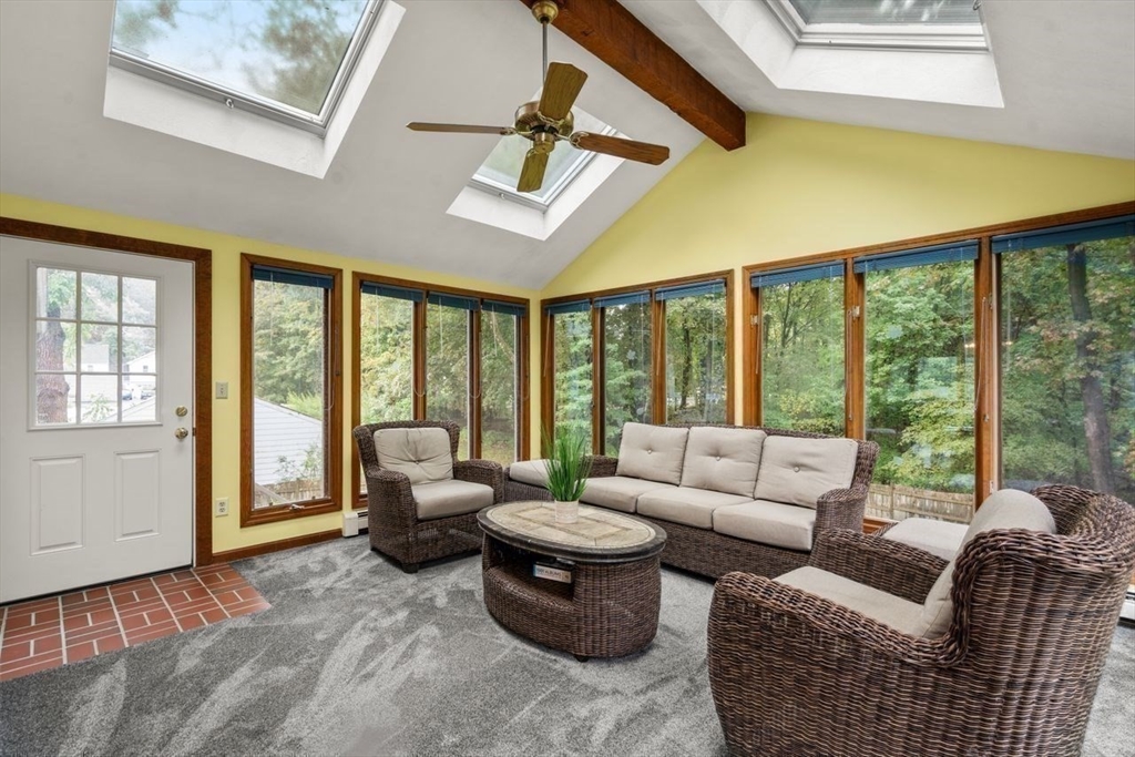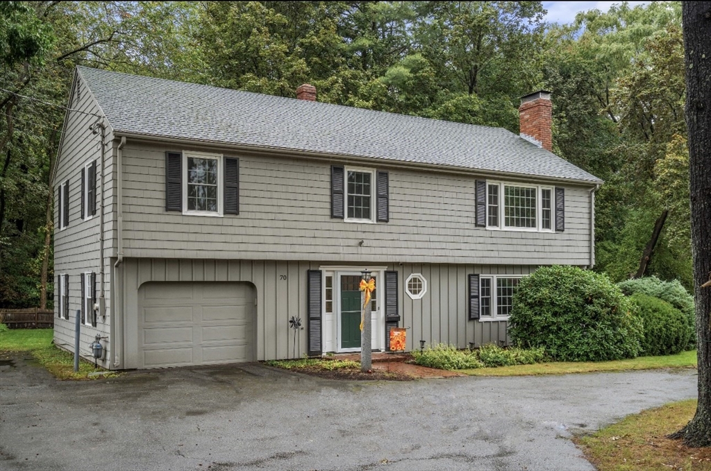 Welcome to 70 Forest Hill Avenue, ideally situated in one of Lynnfield’s most desirable neighborhoods! The main floor greets you with a sun-filled living room and a cozy wood-burning fireplace that flows seamlessly into a dining room, perfect for entertaining. A stunning heated sunroom with cathedral ceilings and skylights provides a serene, year-round retreat, while the warm kitchen features painted cabinetry and a skylight that brightens the space. Three spacious bedrooms and a full bath complete this level. The lower level adds exceptional versatility with a second full bath, family room with fireplace, home office, and a bonus room ideal for a gym or studio. Additional highlights include hardwood floors, an attached walk-in garage, a circular driveway, and a beautifully landscaped lot, abutting conservation land! Conveniently located near Lynnfield Center and all three top-rated schools, this home offers the perfect blend of comfort, style, and LOCATION! Don't miss it!
