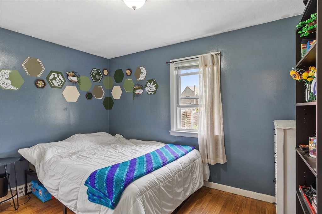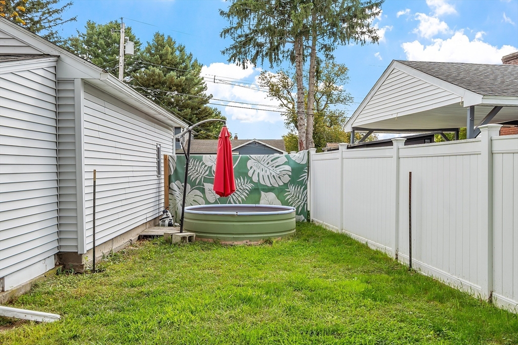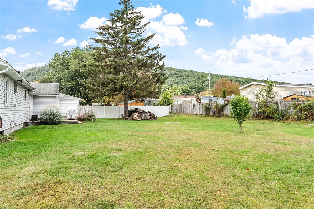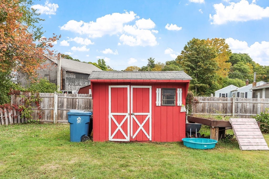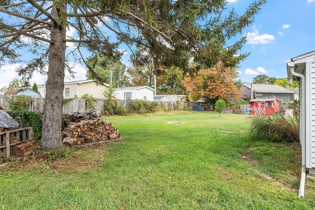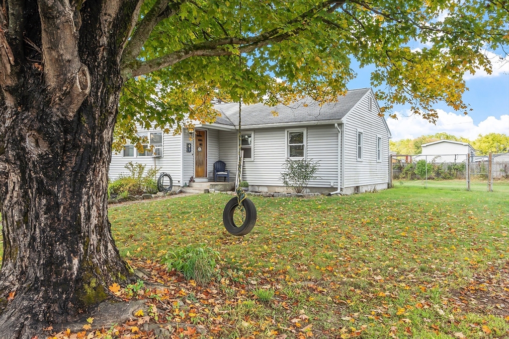 Come check out this adorable 2 bed 1 bath ranch. Enter through the spacious mudroom with a cozy wood stove to warm up after a long day. Step up into your eat-in kitchen; perfect for hosting indoors or out. This home has hardwood floors in the living room and bedrooms. The living room just off the kitchen, pooling with natural light. Primary bedroom continues with hardwood floors, and features a spacious walk-in closet. Second bedroom offers first floor laundry. Downstairs you'll find a partially finished basement, with fresh epoxy floors and a finished office space. Just outside, you'll find a large, flat yard with raised flower beds, a convenient shed, and fire pit. Oversized 1-car garage with workbench and loft storage. On a dead end street, there is plenty of privacy and peace. This is one you won't want to miss.