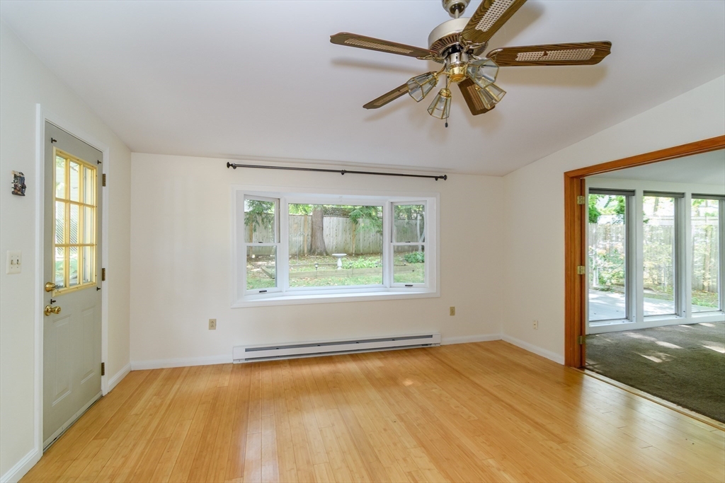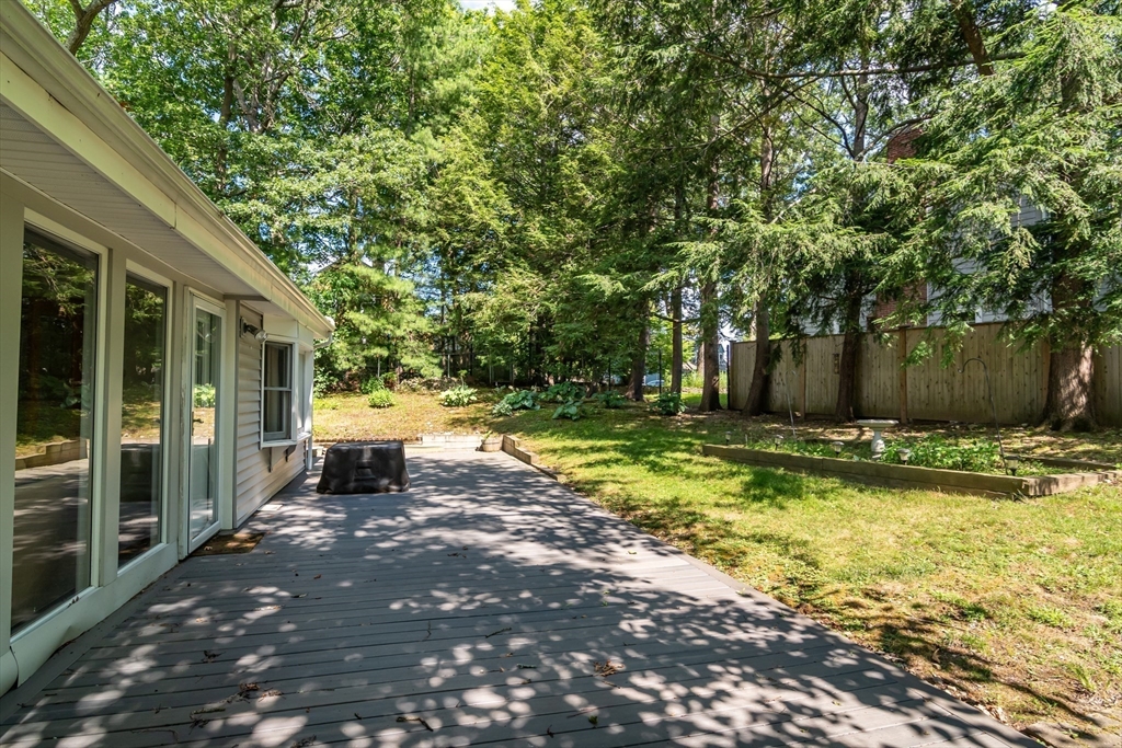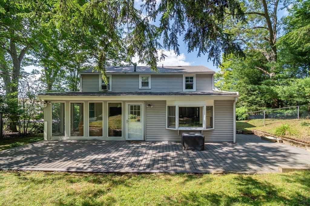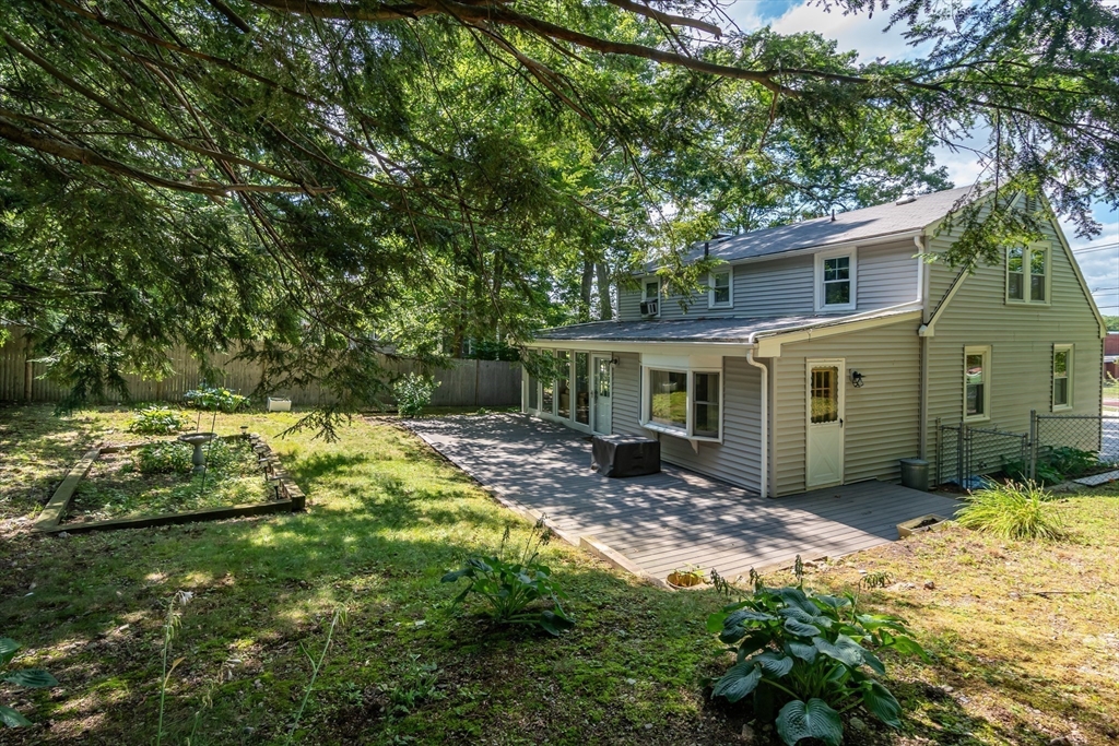 Conveniently located in the heart of Dedham near Endicott & Oakdale neighborhoods! Spacious 1,877± SF Cape with open floor plan includes a sunny first floor living room with fireplace & custom bookshelves, formal dining room with chair rail, granite counter kitchen with peninsula & stainless steel appliances & adjacent family room, half bath, bedroom & sun room with dramatic walls of glass overlooking the private, fenced-in rear yard & deck. The second floor offers a primary bedroom with large walk-in closet, second bedroom & a full hall bathroom. The basement is currently unfinished but leads to one-car garage & provides ample storage space or future expansion potential. Natural gas cooking, heat, laundry & hot water plus town water & sewer. Enjoy quick access to Dedham Square, Avery Elementary School, Dedham MS, Dedham HS, Endicott Estate, library, recreation, commuter train, Legacy Place restaurants/shops, I-93/95, Rt 1, Boston & more.