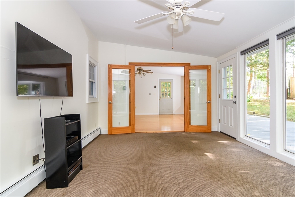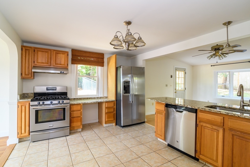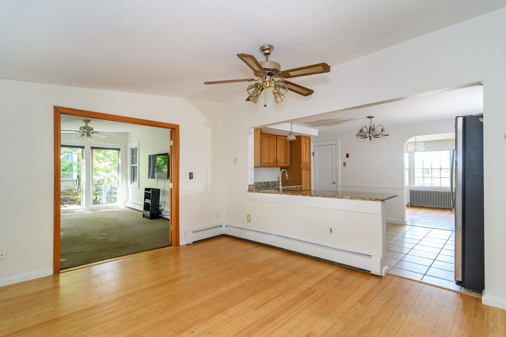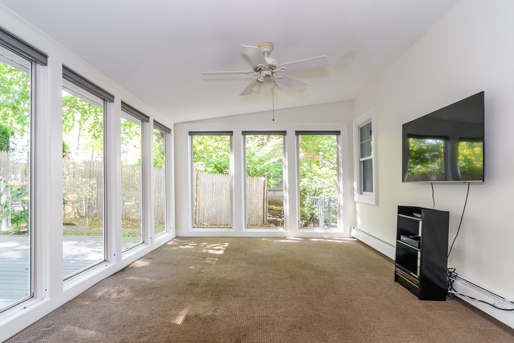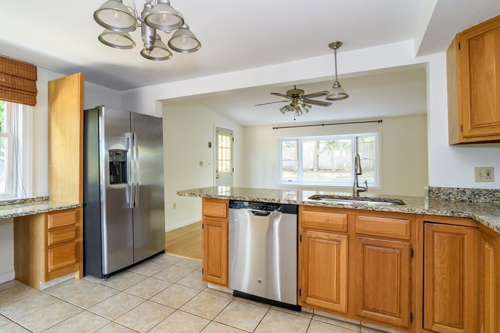 Conveniently located in the heart of Dedham near Endicott & Oakdale neighborhoods! Spacious 1,877± SF Cape with open floor plan includes a sunny first floor living room with fireplace & custom bookshelves, formal dining room with chair rail, granite counter kitchen with peninsula & stainless steel appliances & adjacent family room, half bath, bedroom & sun room with dramatic walls of glass overlooking the private, fenced-in rear yard & deck. The second floor offers a primary bedroom with large walk-in closet, second bedroom & a full hall bathroom. The basement is currently unfinished but leads to one-car garage & provides ample storage space or future expansion potential. Natural gas cooking, heat, laundry & hot water plus town water & sewer. Enjoy quick access to Dedham Square, Avery Elementary School, Dedham MS, Dedham HS, Endicott Estate, library, recreation, commuter train, Legacy Place restaurants/shops, I-93/95, Rt 1, Boston & more.