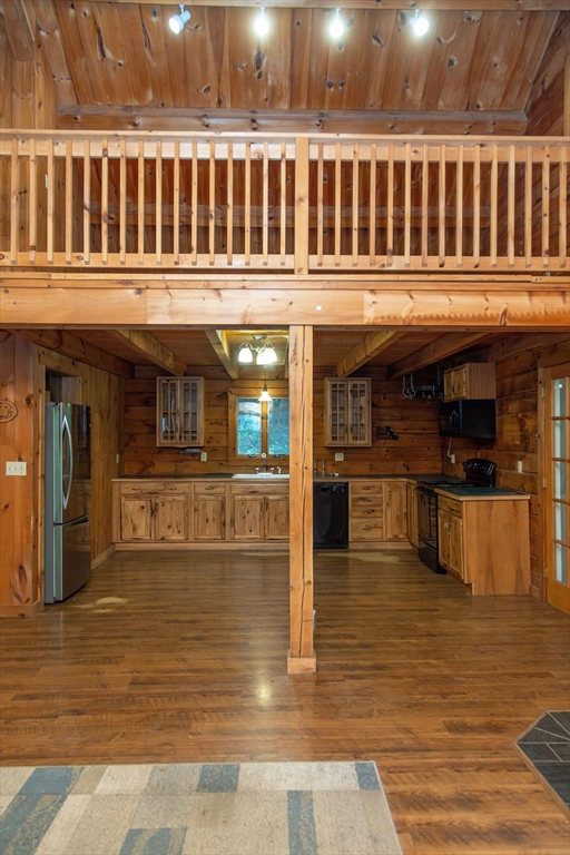 Escape to the charm of rustic living in this beautiful log home, where the cathedral ceiling and a warm open floor plan create an inviting retreat. A spacious kitchen open to the living room with cathedral ceiling feature the loft above, perfect for that 12" Christmas tree. A 1st floor master bedroom with en suite bath provides both convenience and privacy. A full 2nd bath on the first floor equipped with laundry hookups. Upstairs is a bedroom, full bath & loft. The rich wood beams and natural finishes give the space timeless character, perfect for cozy evenings or entertaining. Adding to the property’s appeal is a 20x50 sugar house, offering income potential or the opportunity to embrace a traditional New England pastime. Whether you envision tapping your own maple trees, creating a hobby business, or simply enjoying the lifestyle, this feature sets the property apart. Blending rustic elegance with practical opportunity, this log home offers a unique chance to live, relax & earn.