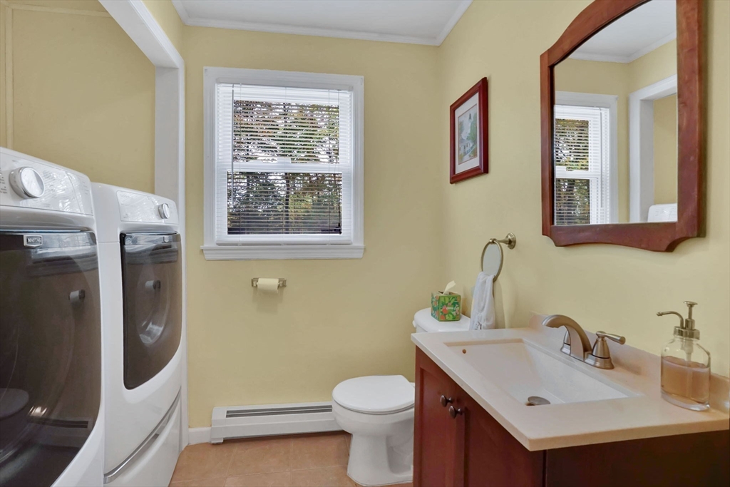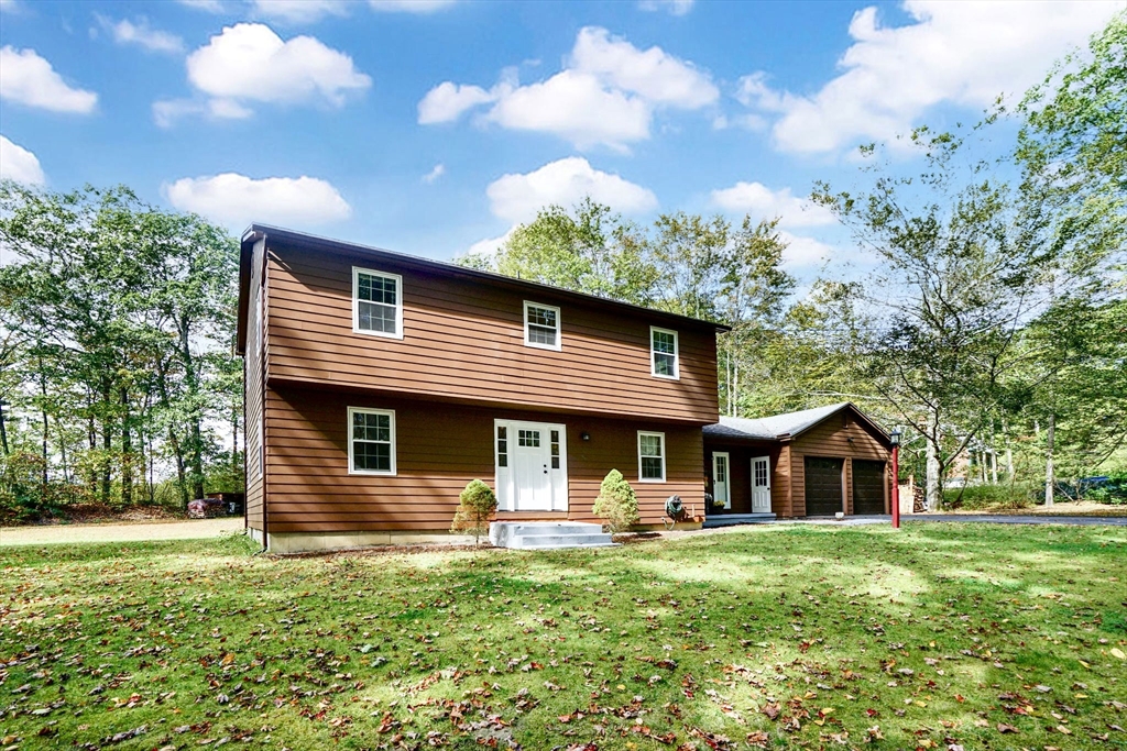 Welcome to lovely Westhampton! This well-cared for colonial is 100% move-in ready with 4 bedrooms, 2.5 bathrooms, and a nice large level lot on over an acre. Upon entering you'll feel right at home in the cozy sitting room with a wood fireplace and french doors leading to a newly poured backyard patio. On the first floor you'll find a nice bright and well-designed kitchen, dining room, half bath with first floor laundry, a beautiful spacious living room, and hardwood floors. Upstairs are 4 generously sized bedrooms and two full bathrooms. The master bedroom has an attached master bath with shower. The large basement with high ceilings can easily be finished for additional square footage, and recent upgrades include - Newer Buderus Boiler, newer hot water tank, newer well pump, and newer oil tank. Outside you'll find a new driveway, new garage doors, double pane replacement windows throughout, and a brand new septic tank being installed prior to closing!