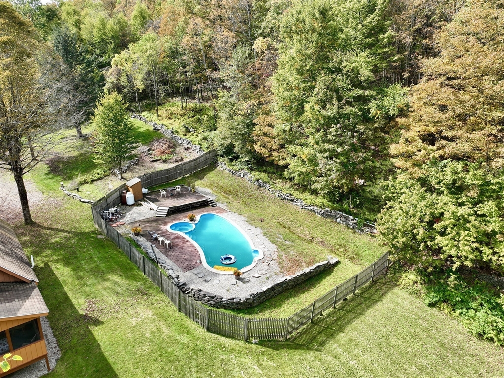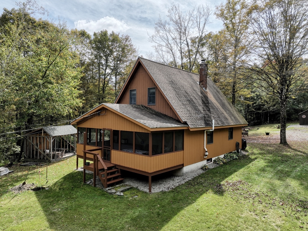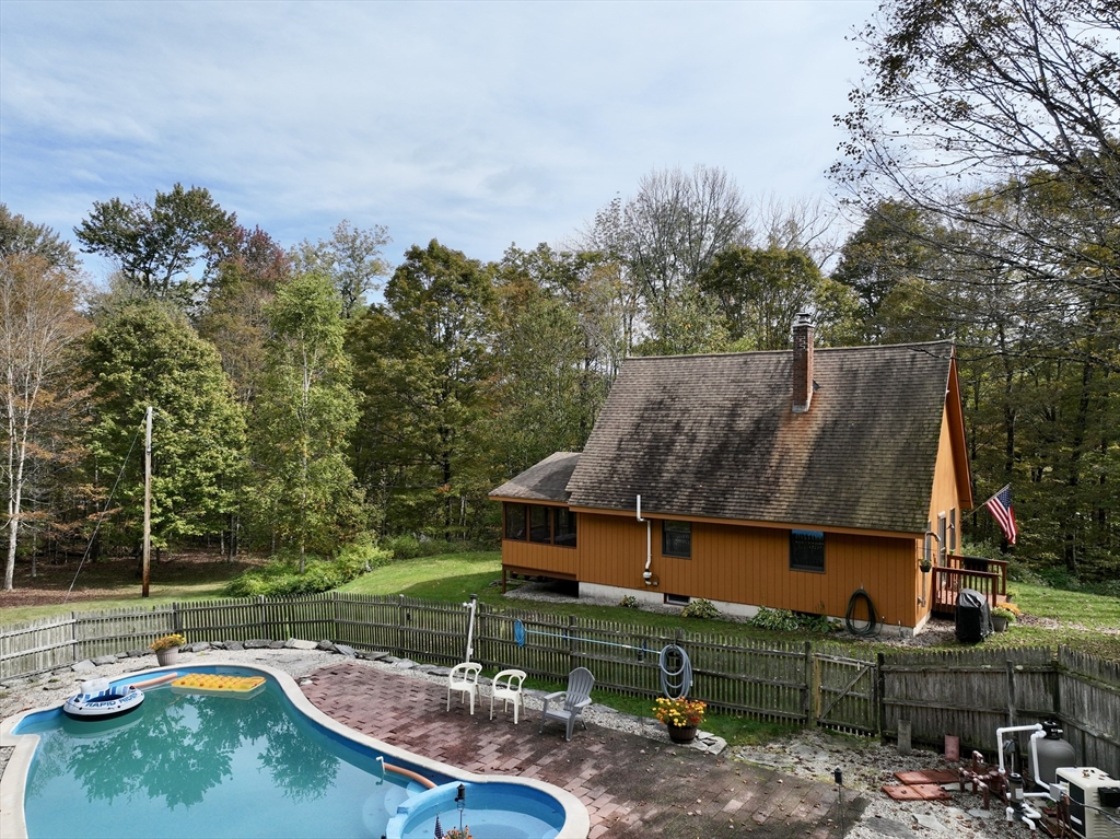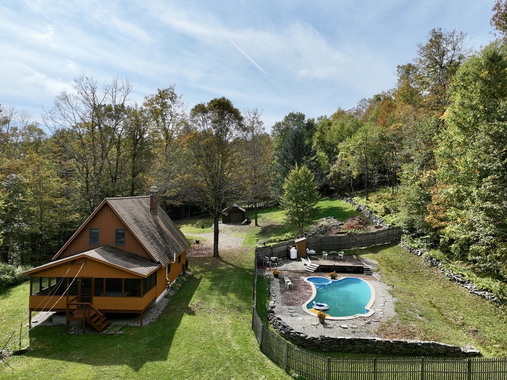 Looking for peace, privacy and room to breathe? Set off the beaten path in Chester, this sweet 2-bedroom home offers 18 acres of extreme solitude--No houses in sight, just surrounded by nature. You'll enjoy summers floating in your inground pool (with new pump and filter) and evening dinners on the screened porch. The expansive yard will easily host gardens, pets and play. Inside the house, the vaulted ceilings and open floor plan make for a comfortable and airy feel. One bedroom on each floor makes for nice separate spaces. Full basement with laundry and work area. A wood stove in basement and a pellet stove in living room make it cozy and comfortable in the colder months. One car detached garage provides additional storage space. This is a rare find for those craving quiet, solitude and a real connection to nature. Perfect for a year-round residence or a weekend getaway. Come see it yourself at the Open House on Sunday, October 5th, from 10am -12 noon.
