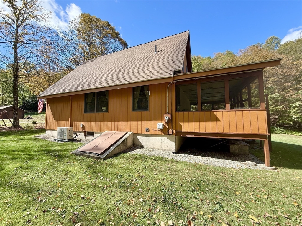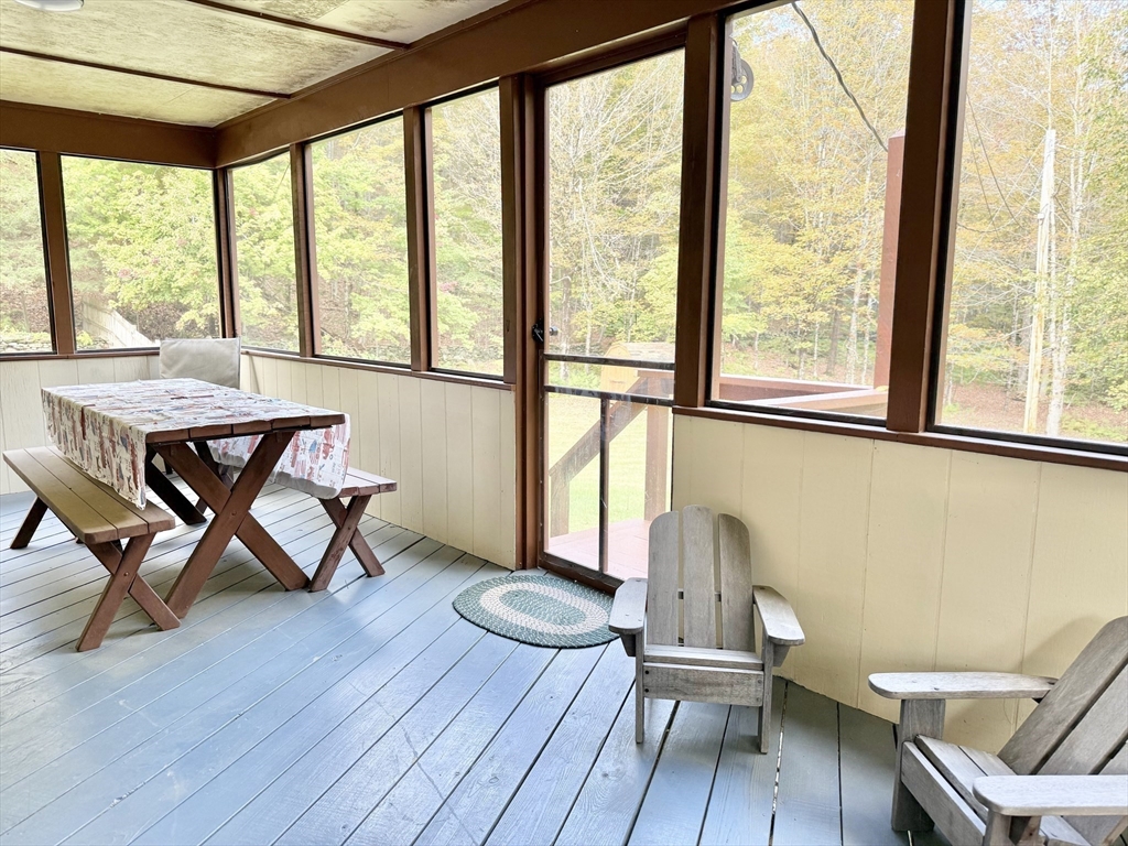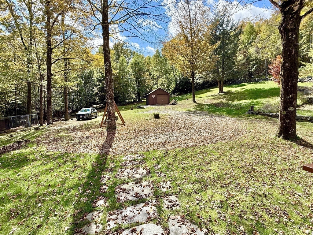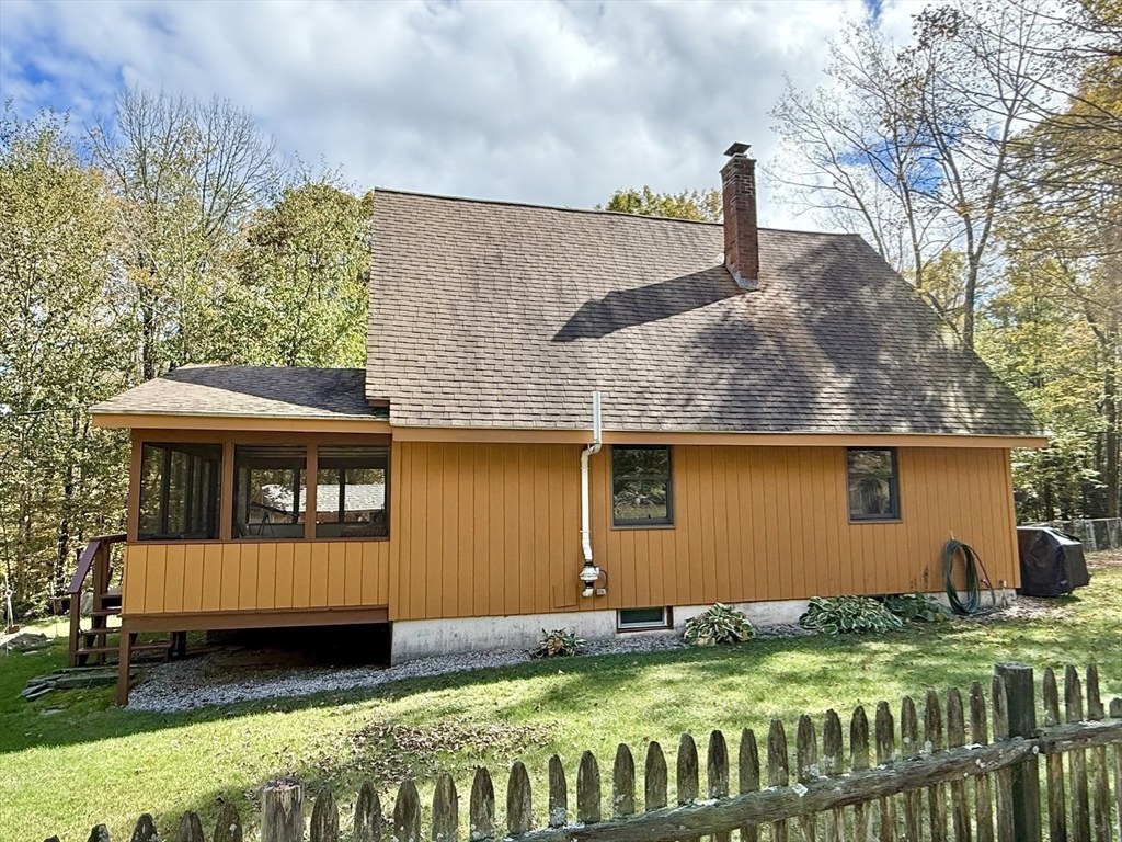 Looking for peace, privacy and room to breathe? Set off the beaten path in Chester, this sweet 2-bedroom home offers 18 acres of extreme solitude--No houses in sight, just surrounded by nature. You'll enjoy summers floating in your inground pool (with new pump and filter) and evening dinners on the screened porch. The expansive yard will easily host gardens, pets and play. Inside the house, the vaulted ceilings and open floor plan make for a comfortable and airy feel. One bedroom on each floor makes for nice separate spaces. Full basement with laundry and work area. A wood stove in basement and a pellet stove in living room make it cozy and comfortable in the colder months. One car detached garage provides additional storage space. This is a rare find for those craving quiet, solitude and a real connection to nature. Perfect for a year-round residence or a weekend getaway. Come see it yourself at the Open House on Sunday, October 5th, from 10am -12 noon.