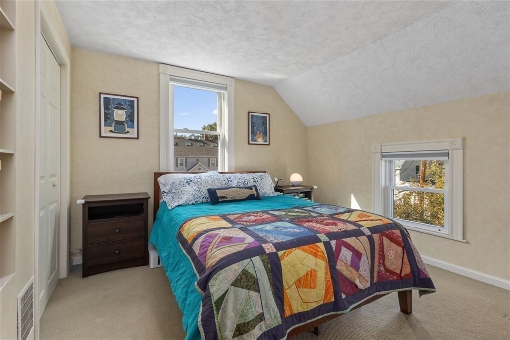 Charming and meticulously maintained, this classic 1900 Colonial offers the perfect blend of historic character and modern updates. First floor is comprised of a living room, dining room, eat-in kitchen, and a beautiful 2018 full bath! There is also flexible space for a den, home office, or 4th bedroom. Second floor features 3 bedrooms and a full bath. This home boasts numerous recent improvements including a Brand New 2025 Roof, central air conditioning, composite siding, stone work, and more!—providing peace of mind for years to come. The inviting layout offers warm, sun-filled living spaces, perfect for both relaxing and entertaining. Outside, enjoy the large 2021 paver patio—ideal for gatherings or quiet evenings in the private fully fenced-in backyard. Located in Waltham's desirable South Side area, this home is move-in ready with the perfect balance of old-world charm and modern comfort. Gas heat, hot water, and range. Offers to be reviewed on Tues, 10/7. Please submit by Noon.