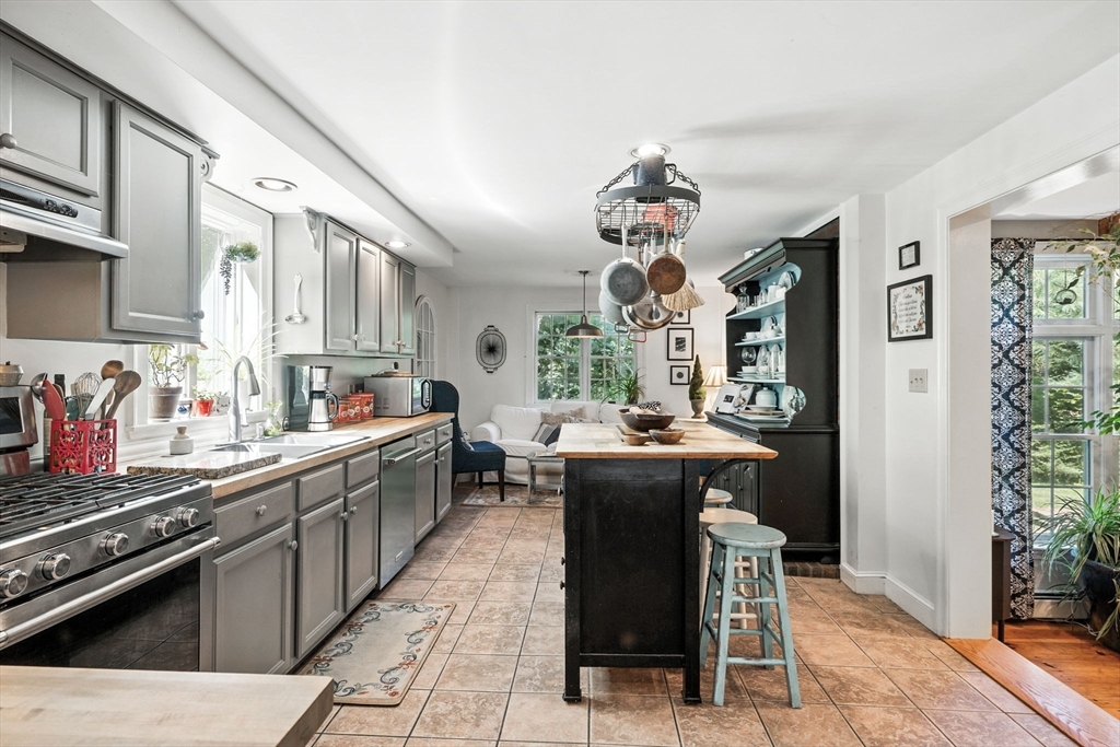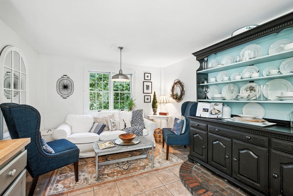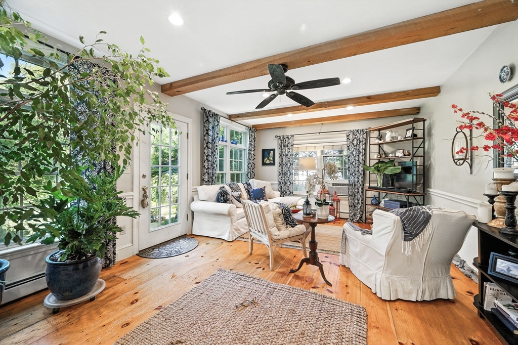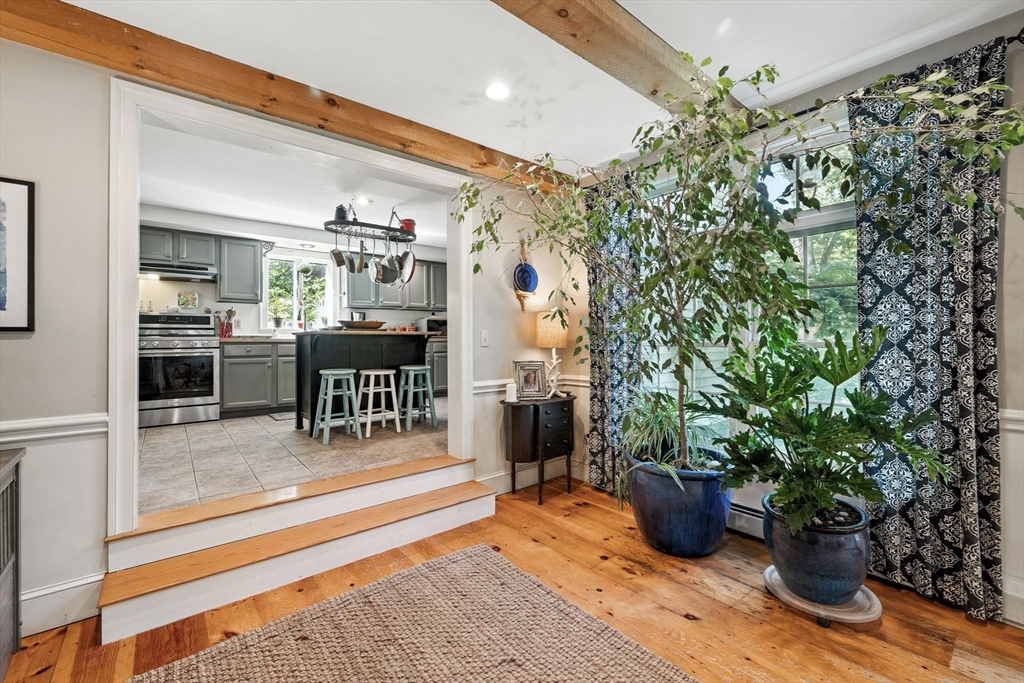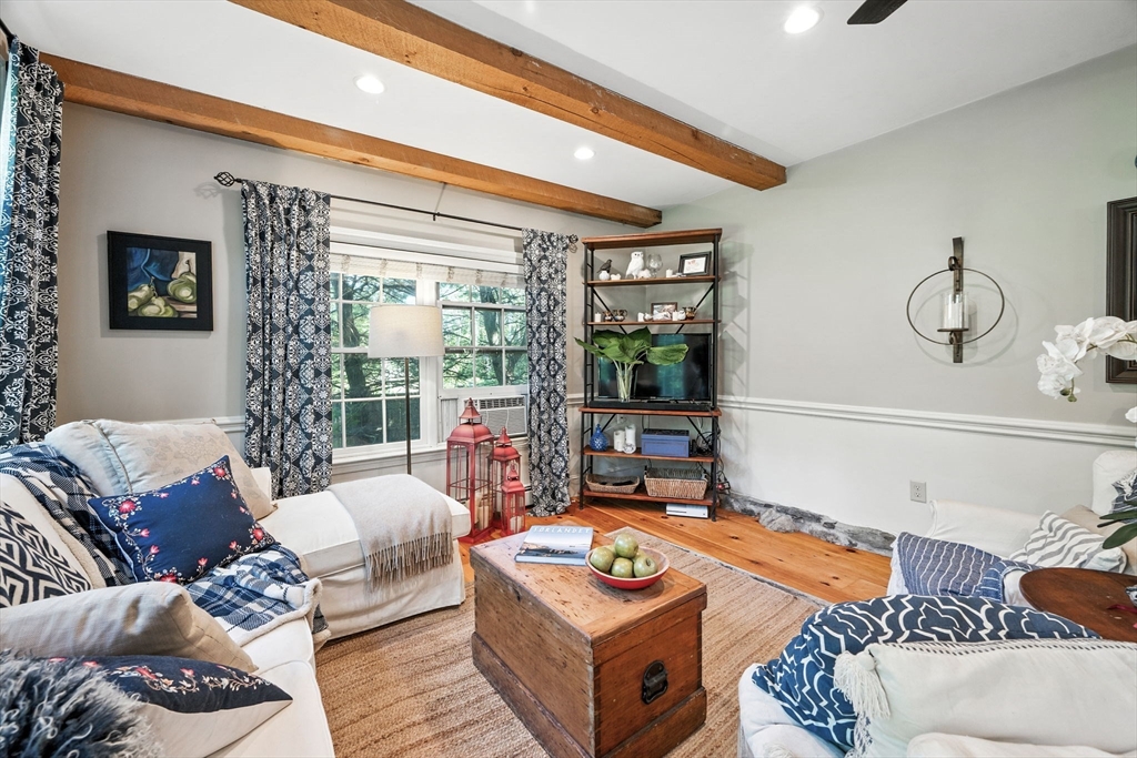 Spacious antique colonial with original and contemporary features! Wide pine floors, a working fire place, and built-ins create a charming atmosphere while a beamed ceiling family room and second floor office from a more recent addition provide the space for today's needs. This home flows beautifully with the kitchen opening to both the dining room and family room, yet the tucked away, cozy living room provides a spot for quiet moments. Upstairs houses the beautiful main bedroom suite complete with 3/4 bath, 2 closets, and a fabulous office with built-ins. Two additional bedrooms, full bath, laundry, and linen closet complete the second floor. The finished, walk-up attic offers lots of possibilities for a playroom, craft space, etc. Outside a nicely sized, private yard includes two patio areas; one off of the family room, and the other under an arbor. New boiler to be installed prior to closing!! Convenient to town, highway and schools this is the ideal place to make your home!