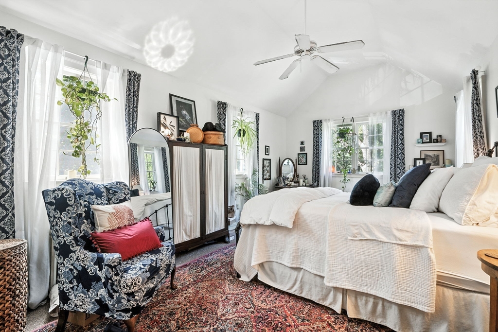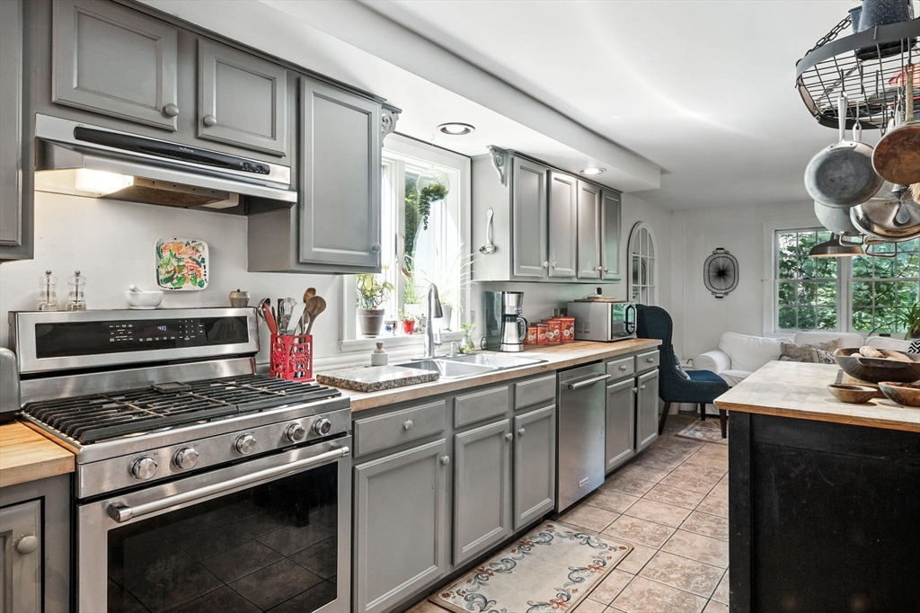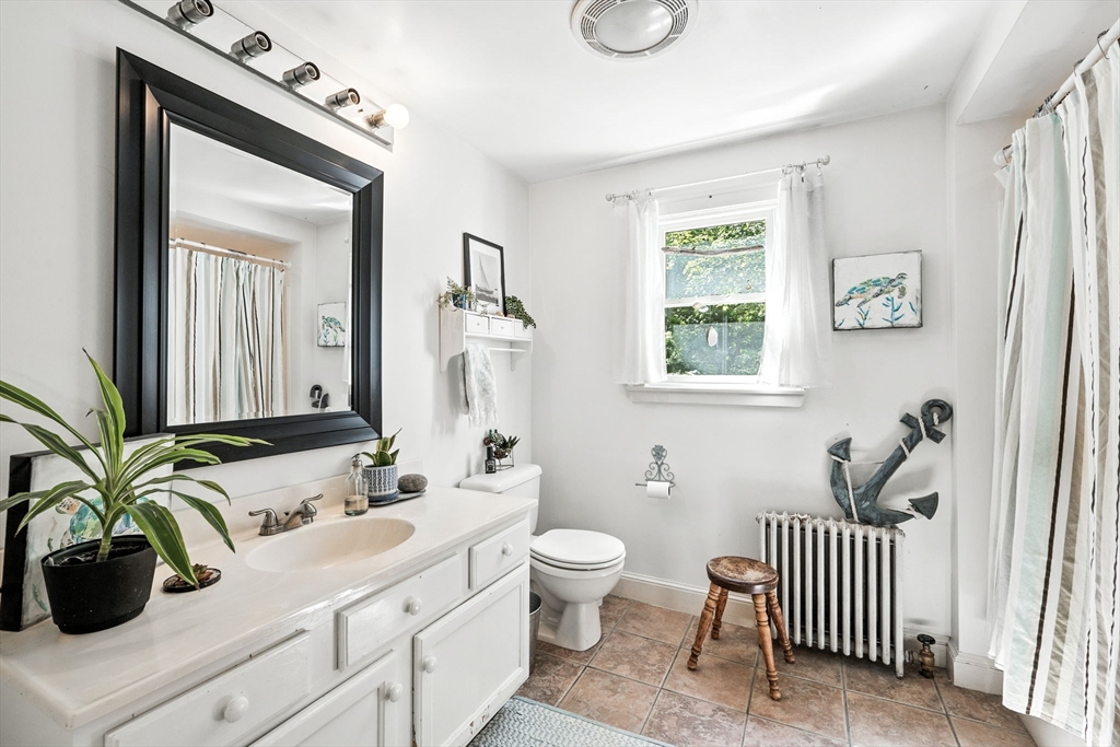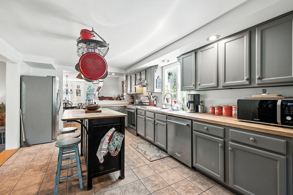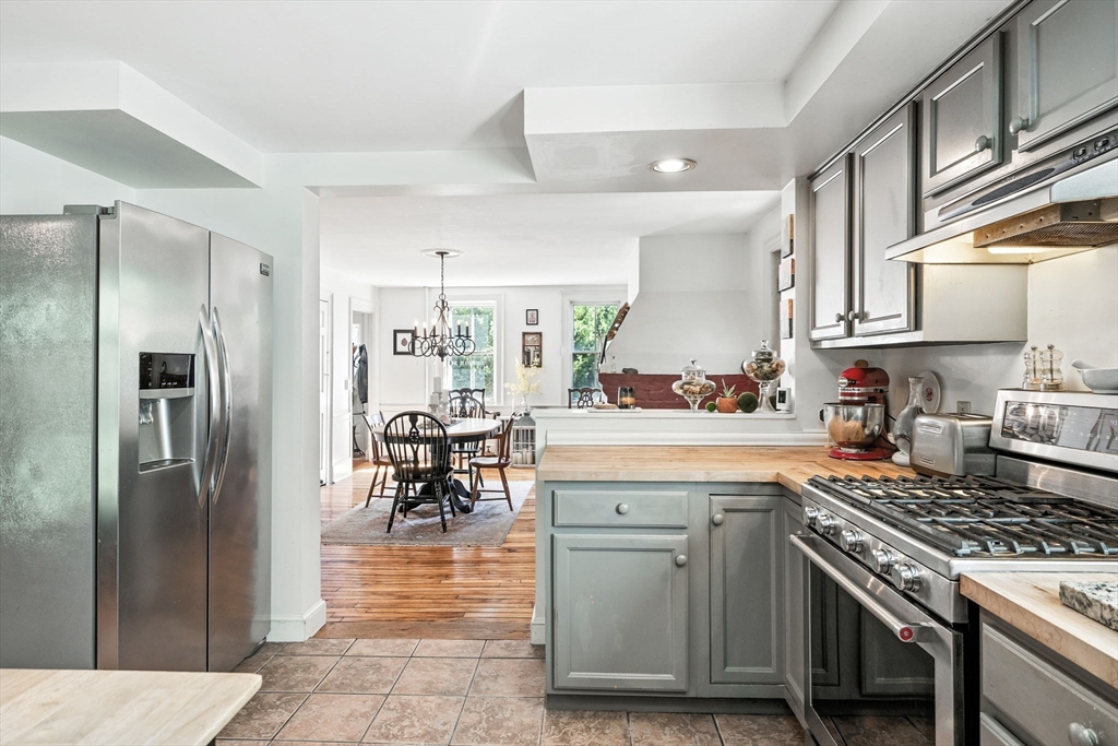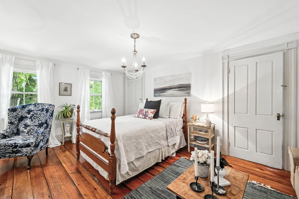 Spacious antique colonial with original and contemporary features! Wide pine floors, a working fire place, and built-ins create a charming atmosphere while a beamed ceiling family room and second floor office from a more recent addition provide the space for today's needs. This home flows beautifully with the kitchen opening to both the dining room and family room, yet the tucked away, cozy living room provides a spot for quiet moments. Upstairs houses the beautiful main bedroom suite complete with 3/4 bath, 2 closets, and a fabulous office with built-ins. Two additional bedrooms, full bath, laundry, and linen closet complete the second floor. The finished, walk-up attic offers lots of possibilities for a playroom, craft space, etc. Outside a nicely sized, private yard includes two patio areas; one off of the family room, and the other under an arbor. New boiler to be installed prior to closing!! Convenient to town, highway and schools this is the ideal place to make your home!