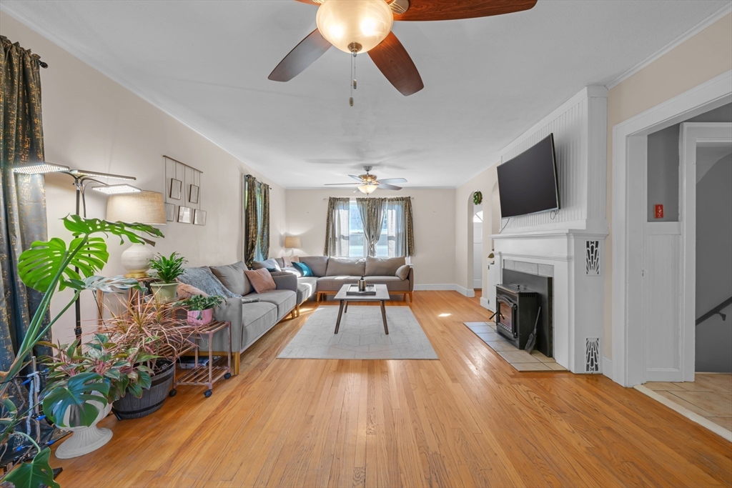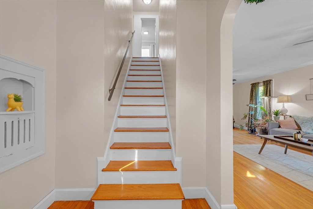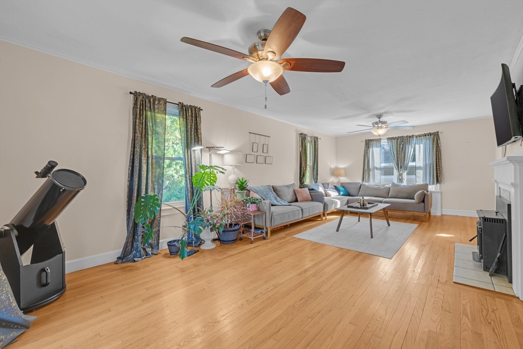 Meticulously maintained and full of charm, this home shines with gleaming hardwood floors and an updated kitchen. A front-to-back living room with pellet stove insert provides warmth and character. The first-floor bedroom, currently used as a dining room, offers flexible space, while two oversized bedrooms upstairs provide comfort and style. French doors (to be replaced prior to closing) open to a large deck overlooking an expansive yard with inground pool. The double walkout lower level expands the living space with a patio entrance and access to parking. Inside, find a versatile room once used as a bedroom, then a sauna/exercise area, plus a craft room, utility space, and generous storage. With charming details throughout, including built-ins and arches, this irresistible property offers both beauty and functionality. Truly a must-see!