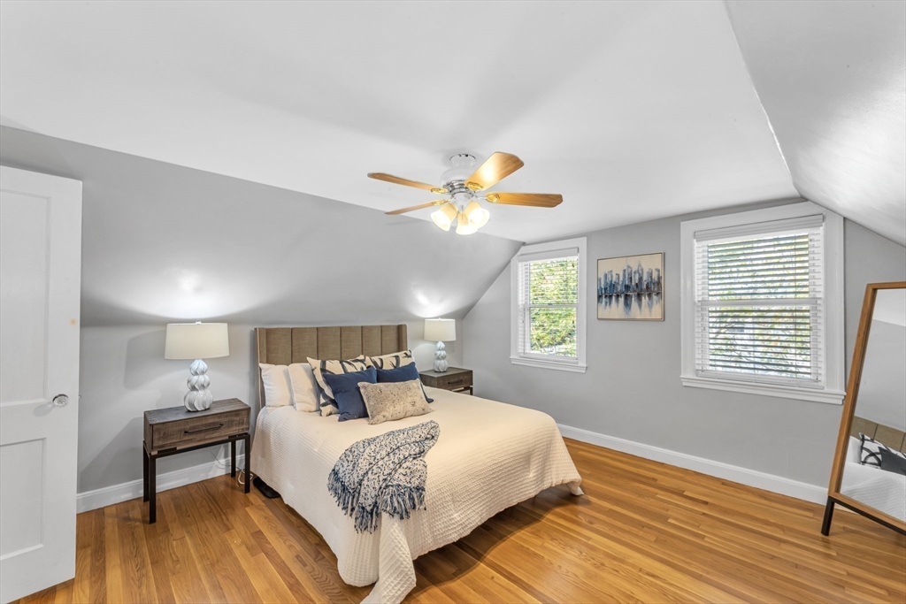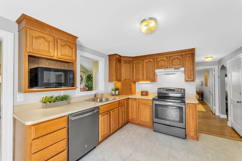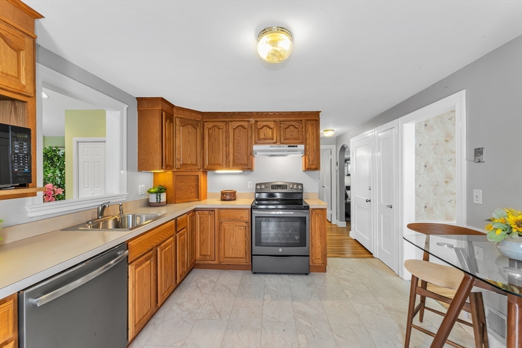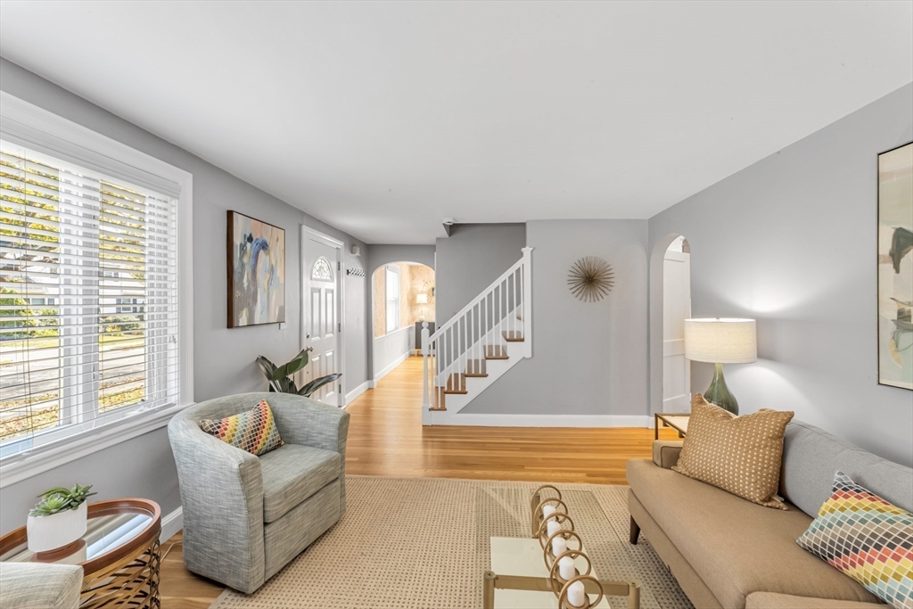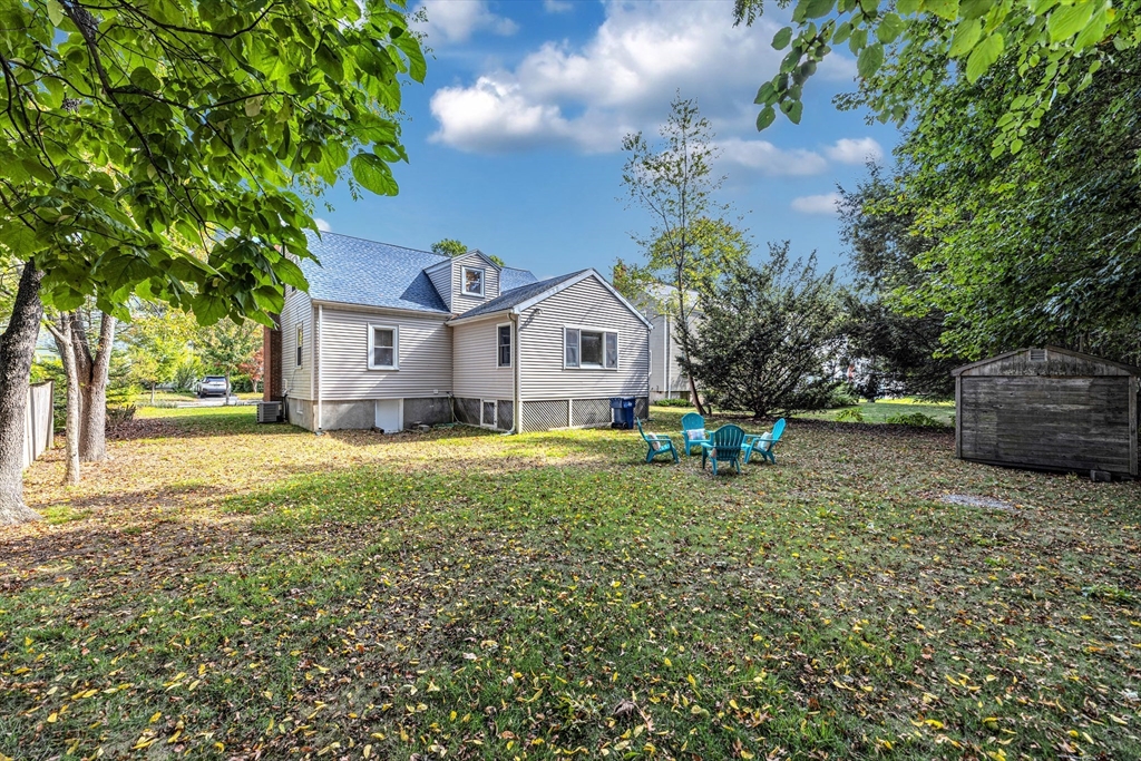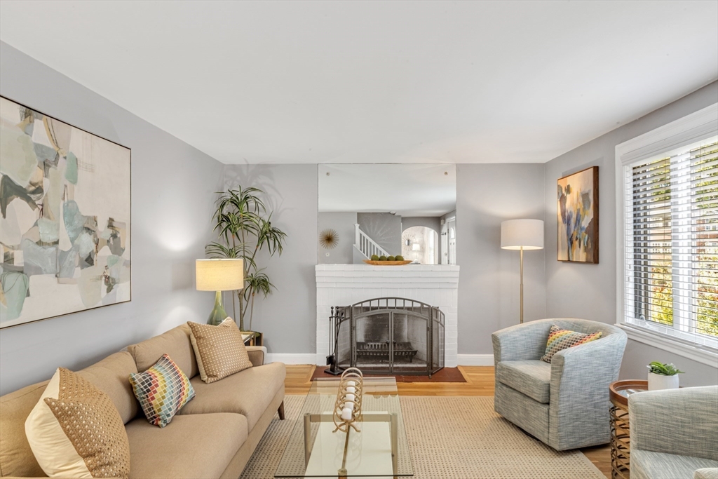 Charming Cape in Sought-After Brook Farm Neighborhood! Welcome to this delightful 3-bedroom, 2-bath Cape-style home offering a perfect blend of character and modern updates. The generous-sized living room features a cozy fireplace, ideal for relaxing or entertaining. A spacious dining room leads into the updated kitchen with stainless steel appliances, while a bright family room at the rear of the home boasts vaulted ceilings and overlooks the private backyard. The first-floor primary bedroom offers added convenience with a hallway full bath, while two additional bedrooms and a second full bath are located upstairs. Additional highlights include updated furnace & central air and roof. Partially finished basement offering flexible living or office space, and a well-maintained yard with a shed for storage. Enjoy a prime location close to major highways, VFW Parkway, Chestnut Hill, Longwood Medical, restaurants, and local parks & shopping district.