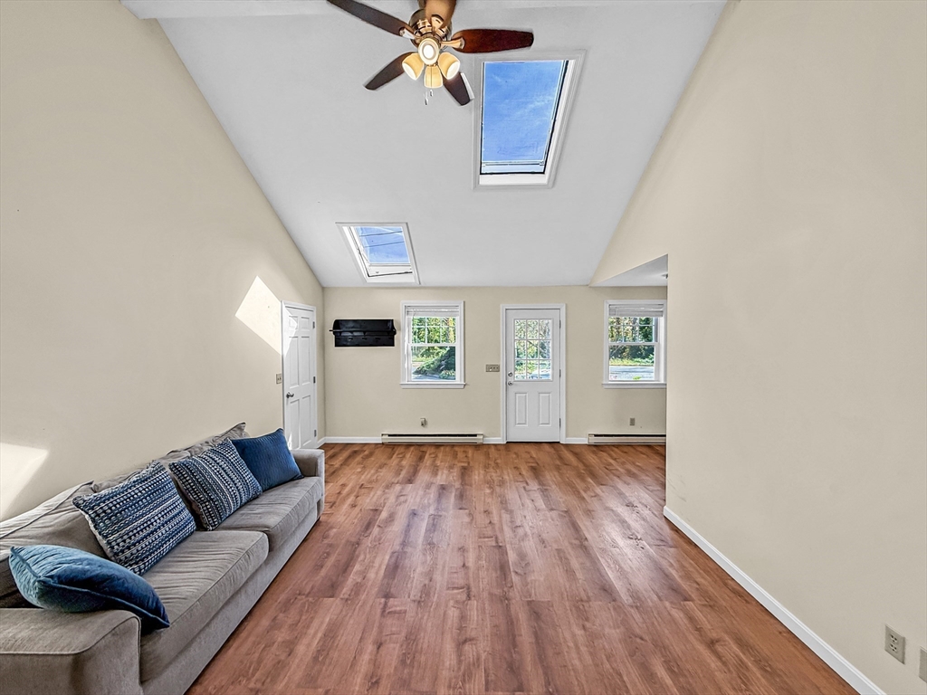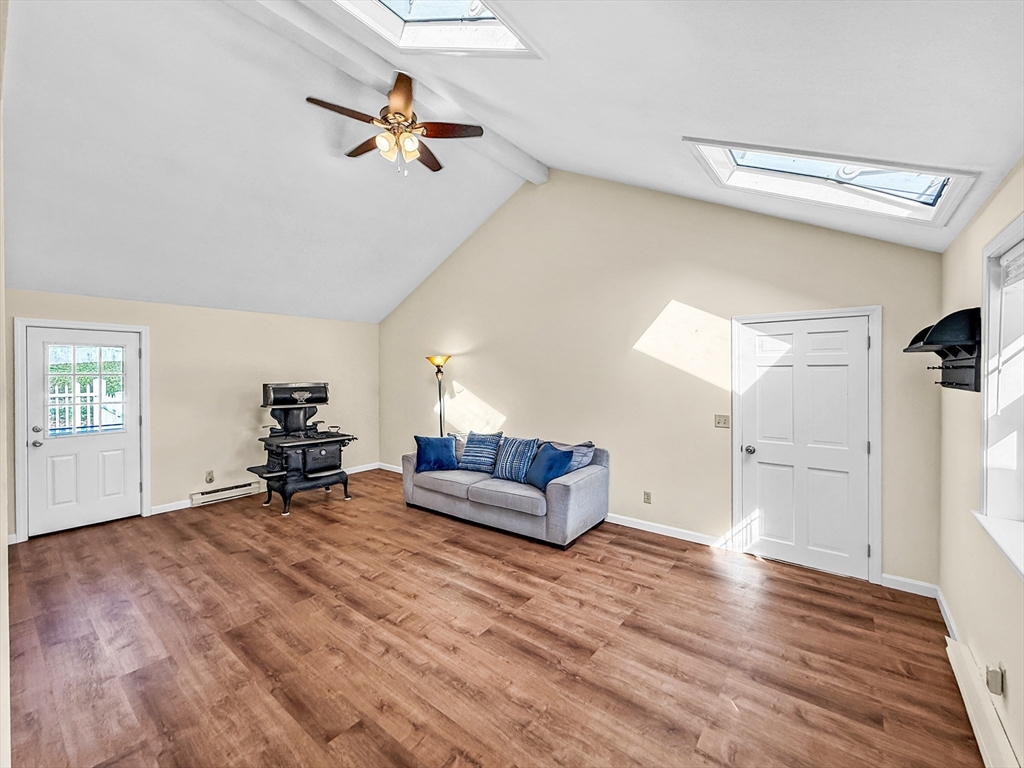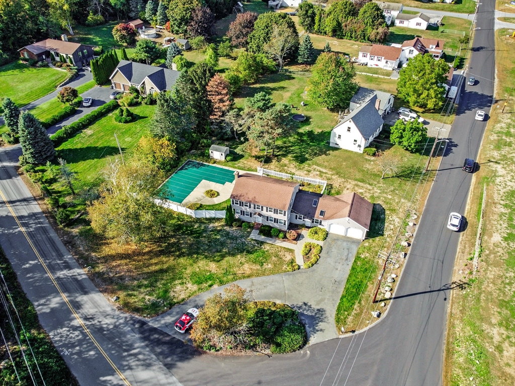 Welcome to 165 Elliott Street. First time for sale since 1990! This beautiful Colonial-style single-family home offers the perfect blend of charm, updates, and functionality. Inside, you’ll find hardwood floors on both levels, a welcoming fireplaced living room, an updated kitchen with modern finishes, and 2.5 updated baths. A standout of the main level is the cathedral-ceiling family room with skylights and a wood stove. From the eat-in kitchen, sliders open to a deck overlooking a beautiful oversized L-shaped pool, perfect for summer entertaining. The finished basement provides additional living space, while the 2-car garage with storage loft and circular driveway ensures ample parking and convenience. Perfect location just 3 minutes to 495 with excellent access Winnekenni Park, Dudley Porter Trail around Kanoza Lake with its scenic views. With space for the whole family, modern upgrades, and incredible outdoor amenities, this home is a MUST SEE. Schedule your showing today!
