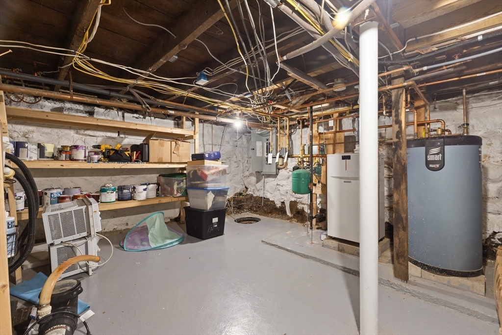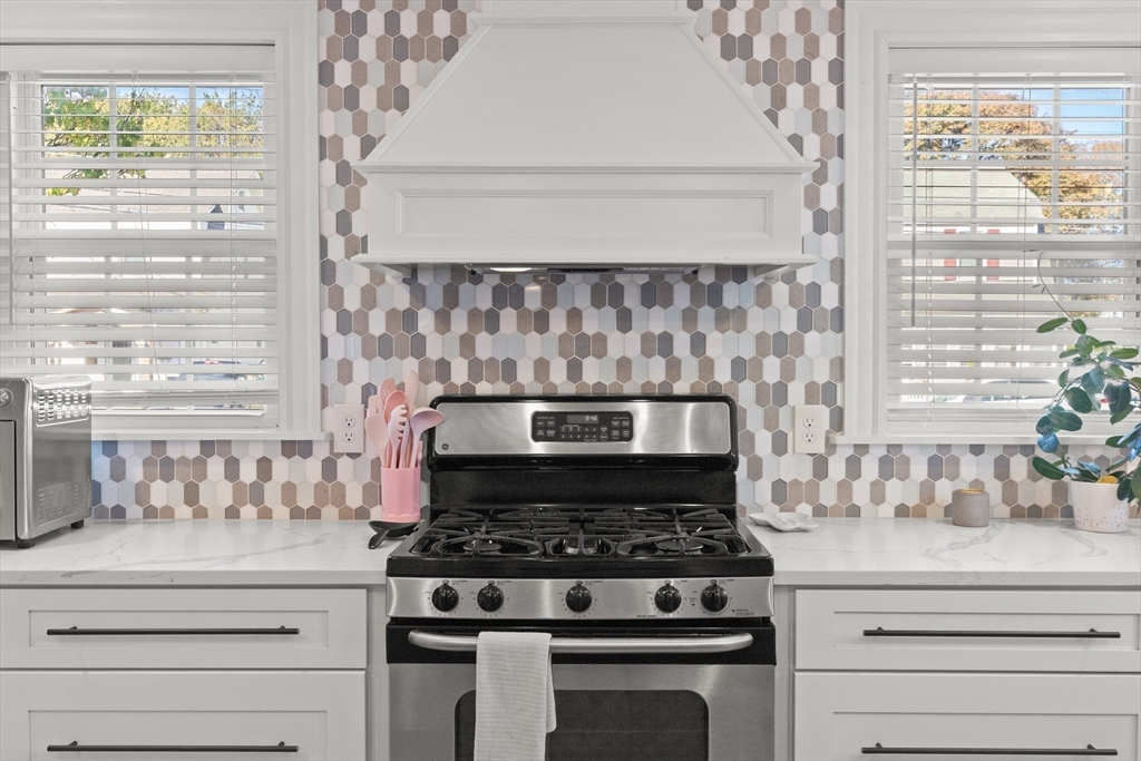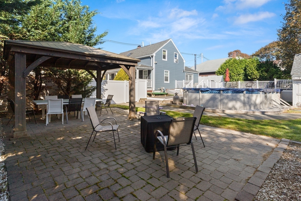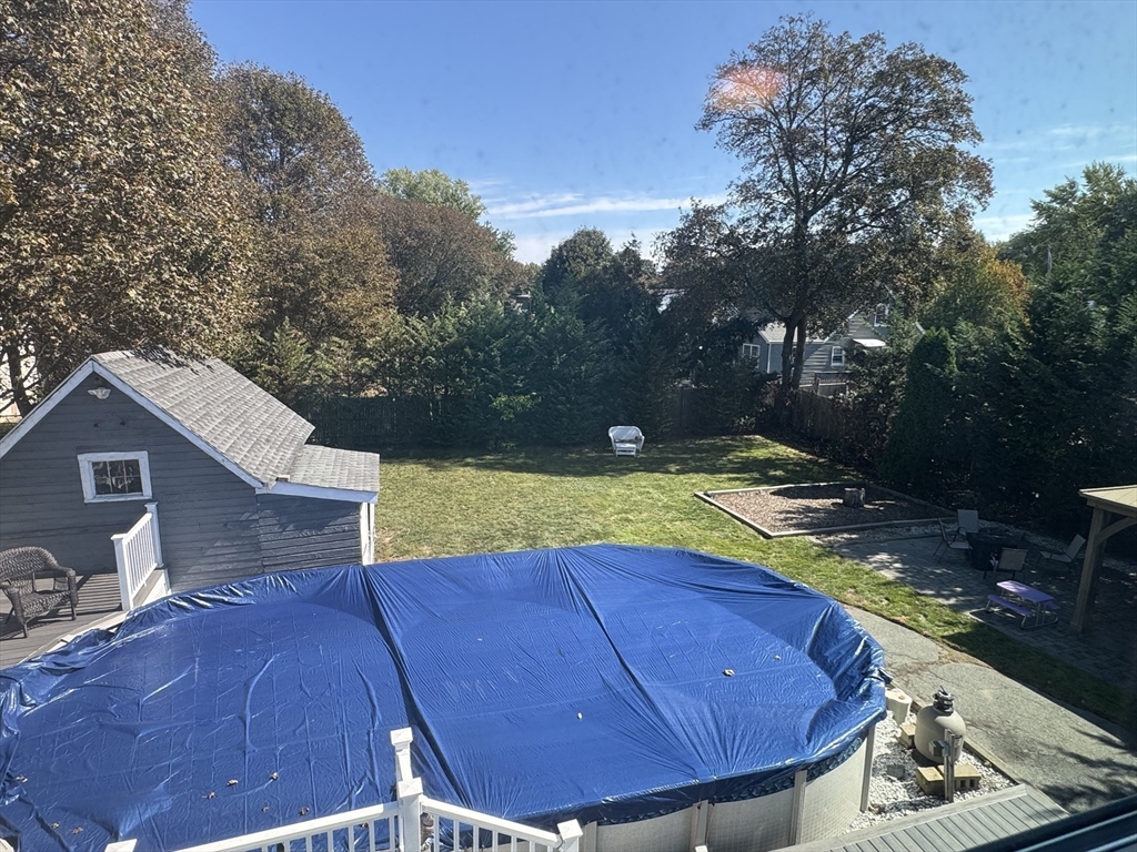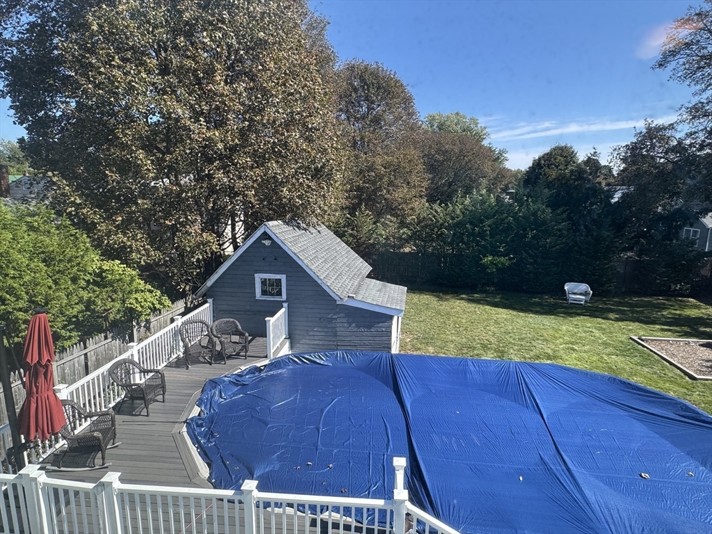 Nothing to do but unpack and enjoy! Blending timeless charm with thoughtful modern updates, this nearly 2,000 sq. ft. home in sought-after South Peabody is just .3 miles to Brown School and .2 miles to Spring Pond Nature Trail. Full of character, it features period details, a newer heating system (2021), and siding (2020). The fenced backyard is perfect for entertaining with a stunning above-ground pool, composite decking (2022), and covered patio. Inside, a cozy family room is anchored by a floor-to-ceiling antique fireplace, while the open kitchen/dining area offers quartz countertops, a large island, gas stove, and stainless steel appliances. A vaulted family room with exposed beams, wood ceilings, and wood stove (2016) flows to the back deck. The spacious primary suite includes a tiled en-suite bath and large closet. With 3 bedrooms upstairs, a flexible first-floor room for office or bedroom, and a full basement, this home adapts to your needs. Come see this South Peabody gem today