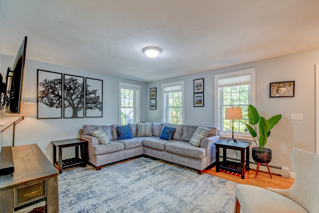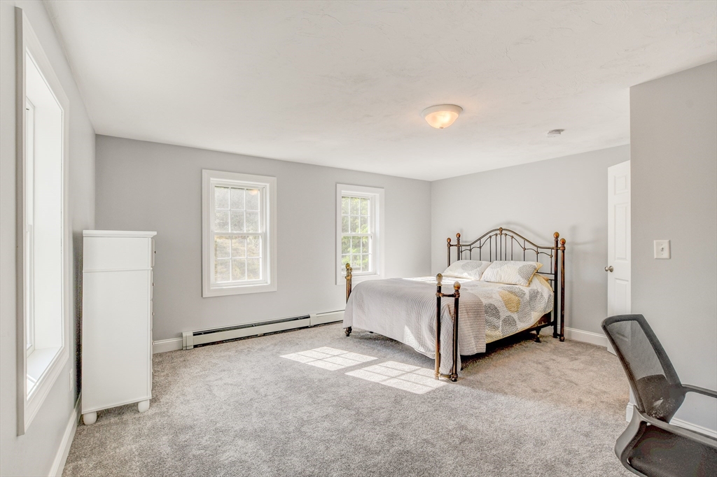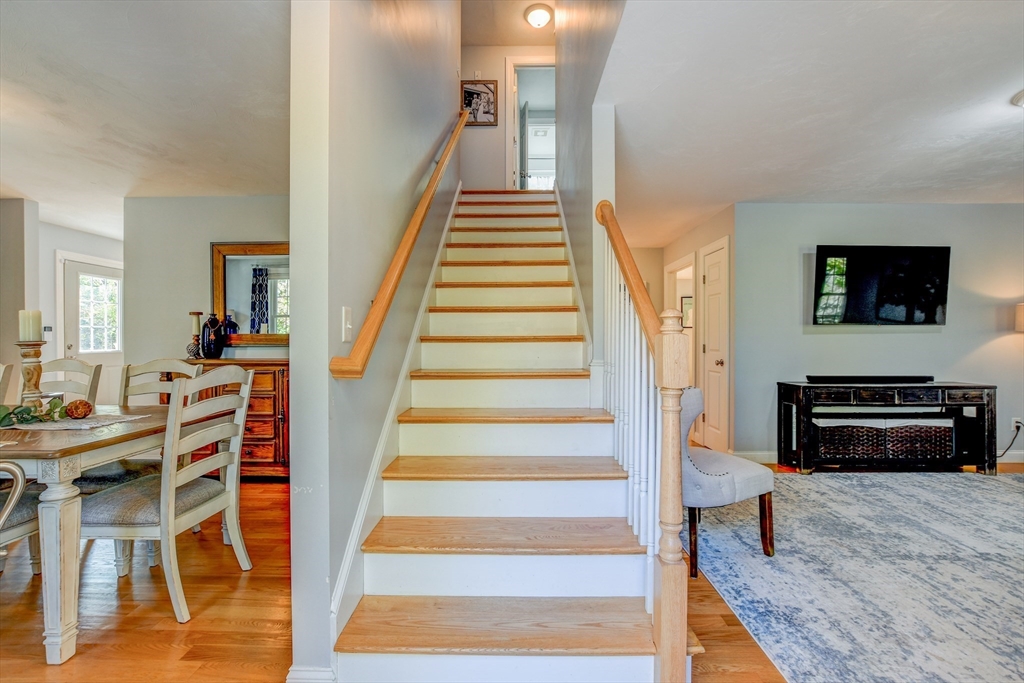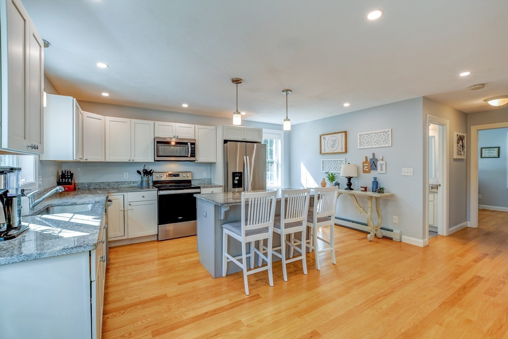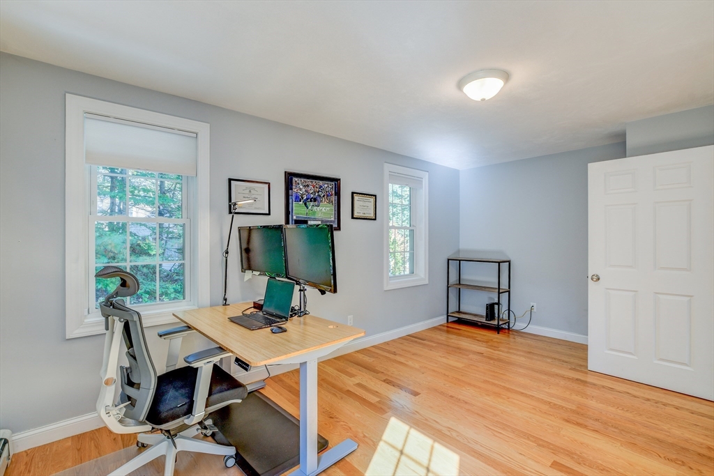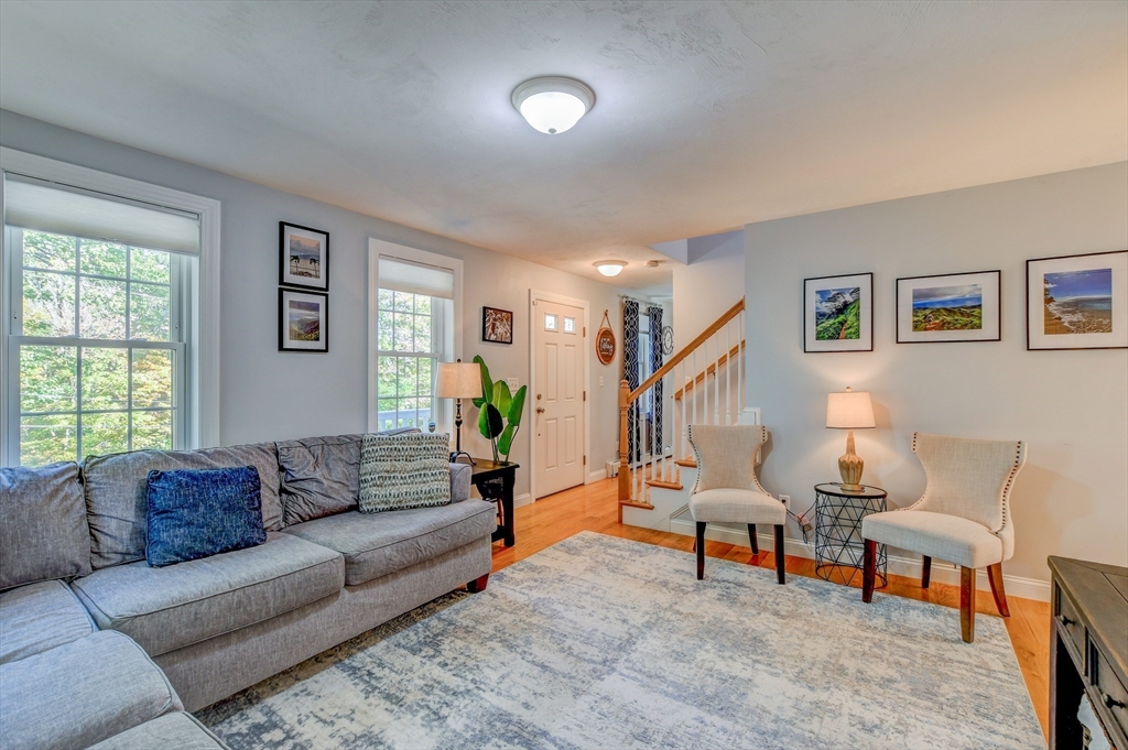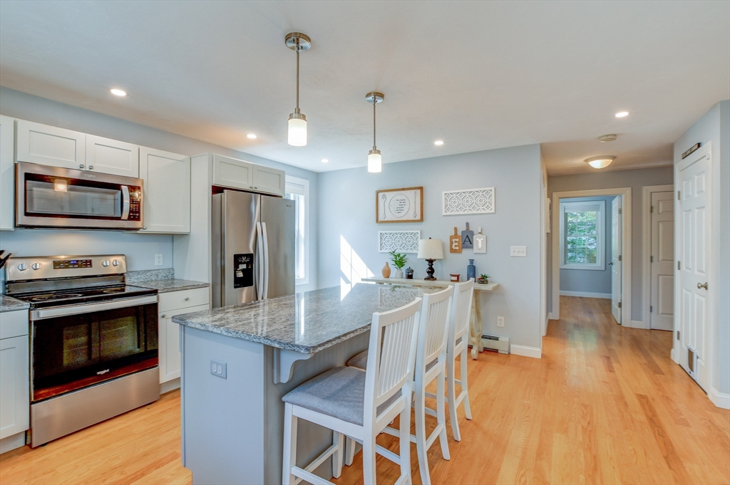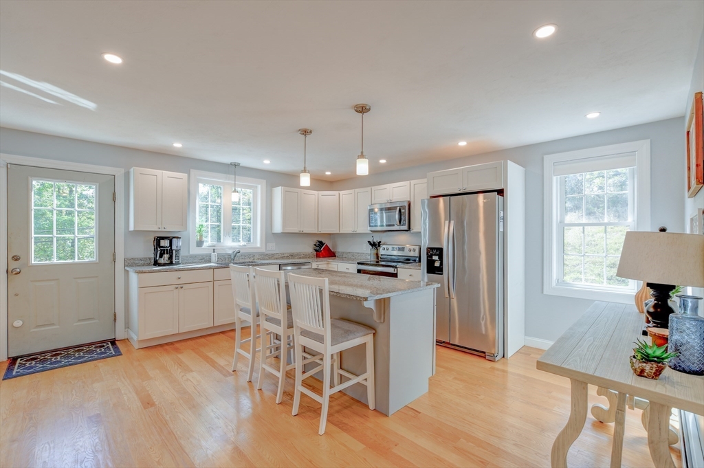 Impressive 6-Year-Old Colonial on 2.87 Acres located at the end of Dead-End Road! Offering over 2,000 sq. ft. of living space, this home blends comfort, style, and convenience. The main level features hardwood floors, oak stair treads, and a spacious kitchen with granite counters, center island, and pantry closet, open to dining and living rooms. A home office/bonus room adds flexibility. Three full baths include tile surrounds, two with double sinks, and one with a separate vanity area. Upstairs, the main suite offers a tiled shower, double sinks, walk-in closet, and extra storage. Two generous sized additional bedrooms and second-floor laundry complete the level. Oversized garage under with workbench space and a high-ceiling basement allow for storage or future expansion. A new composite deck off the kitchen is perfect for entertaining and enjoying the winter months view of Round Meadow Pond and sunrises. Convenient to major routes, MBTA stop, and Wachusett Mountain recreation