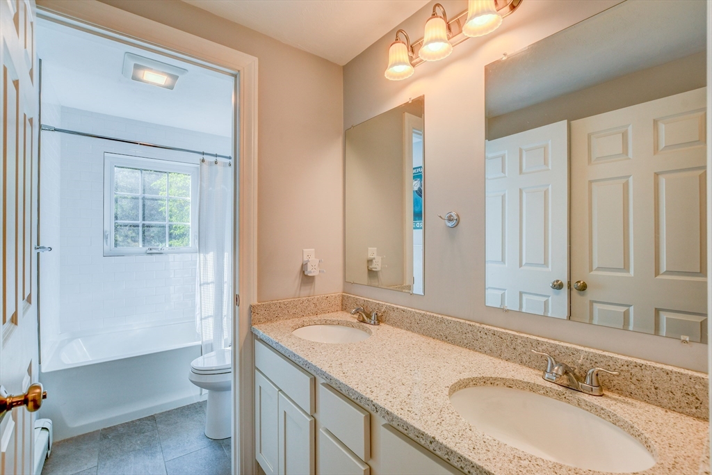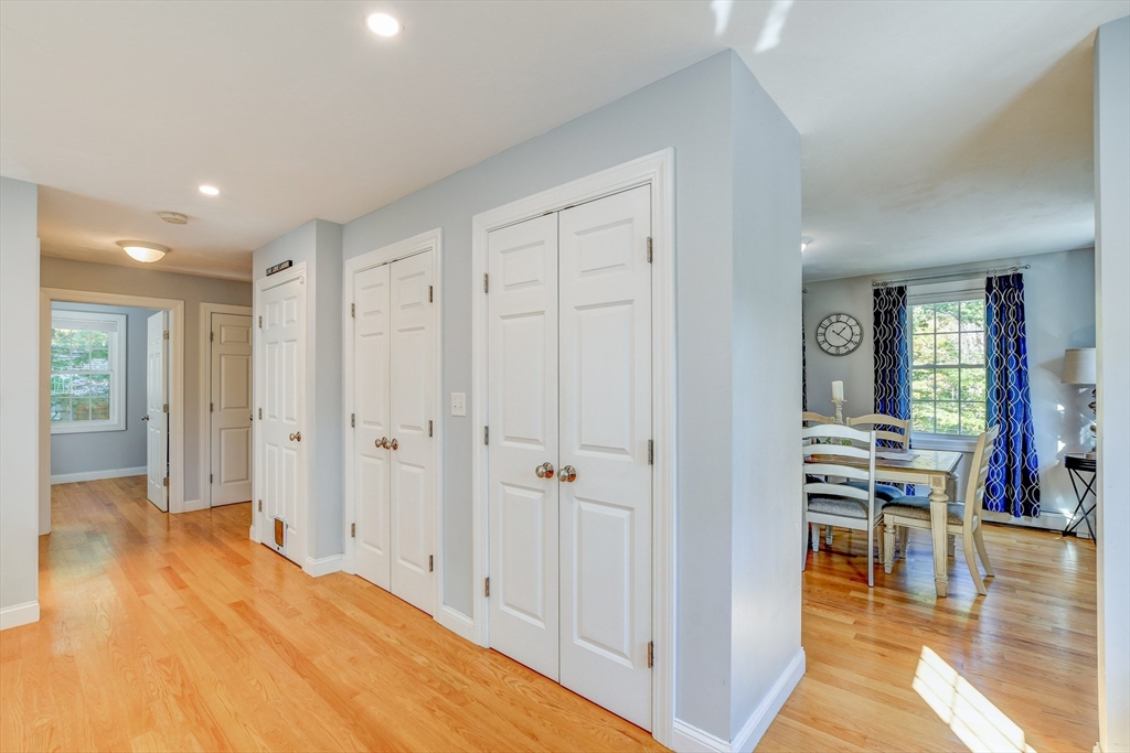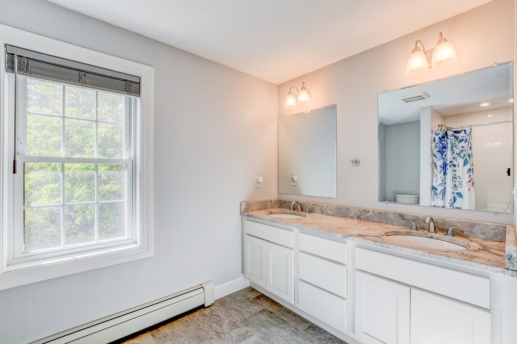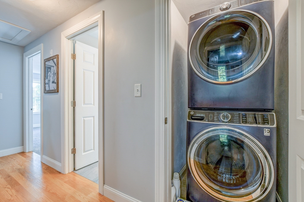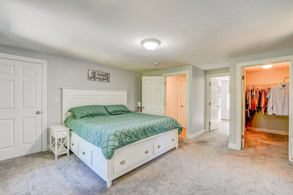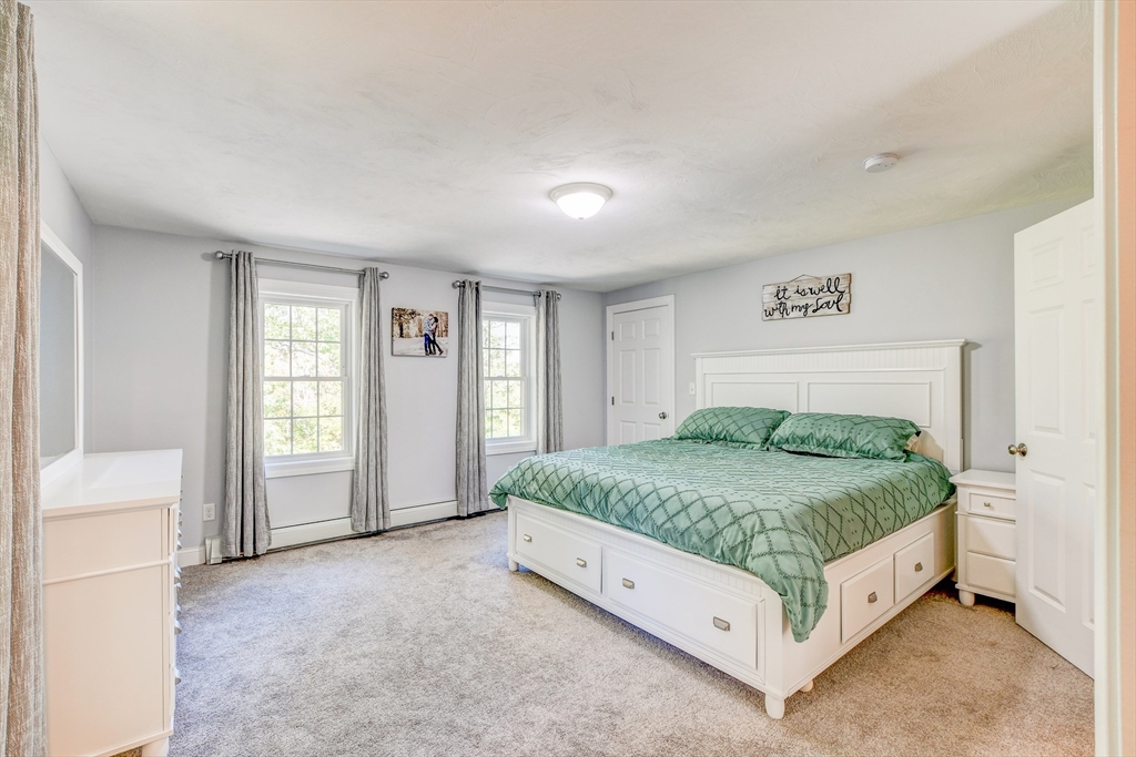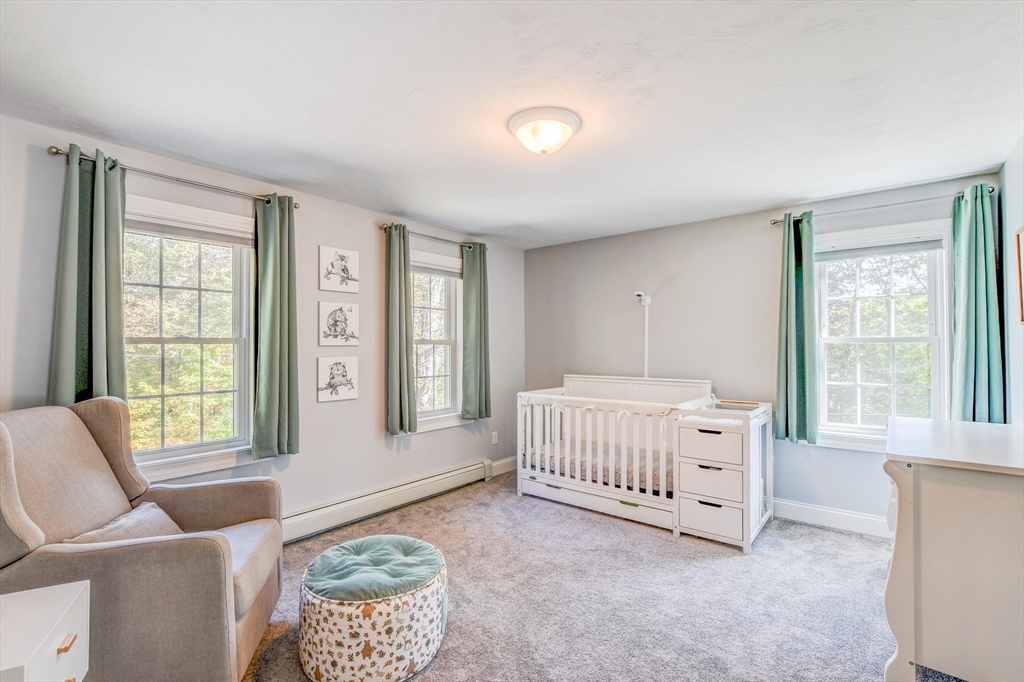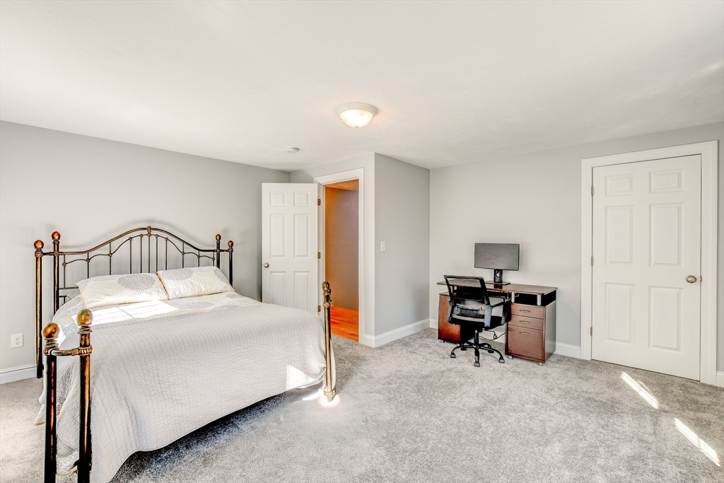 Impressive 6-Year-Old Colonial on 2.87 Acres located at the end of Dead-End Road! Offering over 2,000 sq. ft. of living space, this home blends comfort, style, and convenience. The main level features hardwood floors, oak stair treads, and a spacious kitchen with granite counters, center island, and pantry closet, open to dining and living rooms. A home office/bonus room adds flexibility. Three full baths include tile surrounds, two with double sinks, and one with a separate vanity area. Upstairs, the main suite offers a tiled shower, double sinks, walk-in closet, and extra storage. Two generous sized additional bedrooms and second-floor laundry complete the level. Oversized garage under with workbench space and a high-ceiling basement allow for storage or future expansion. A new composite deck off the kitchen is perfect for entertaining and enjoying the winter months view of Round Meadow Pond and sunrises. Convenient to major routes, MBTA stop, and Wachusett Mountain recreation
