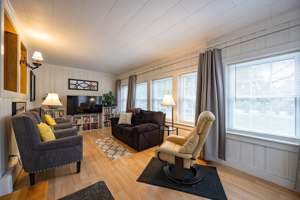 Country Living at Its Best! Beautifully maintained Cape set on 1.25 acres of pristine, serene grounds—perfect for morning coffee or summer evenings on the screened porch. Offering over 2,500 sq. ft. of living space, this home features 8 rooms, 3 bedrooms & 2 full baths. The fully applianced kitchen includes a movable center island, decorative beamed ceiling & abundant storage. Enjoy a sun-filled family room, spacious dining room with built-ins, and a large front-to-back living room with bookcases & working fireplace. First-floor office adds flexibility. Upstairs you’ll find 2 bedrooms plus a generous primary suite with walk-in closet. Gleaming hardwoods throughout. Property includes a detached 2-car garage, additional 1-car garage & a detached studio—ideal for hobbies or creative use. Meticulously maintained with many updates, this move-in ready home offers the perfect blend of country charm & convenience. First Open House scheduled for Sunday, 10/5 @ 1-3pm. A must-see!