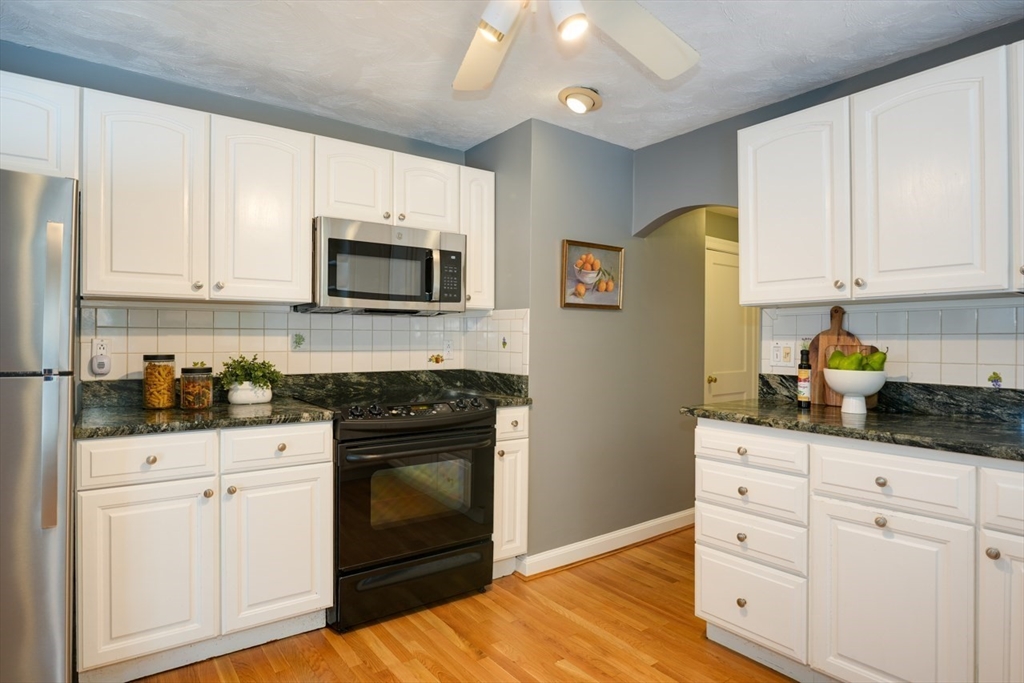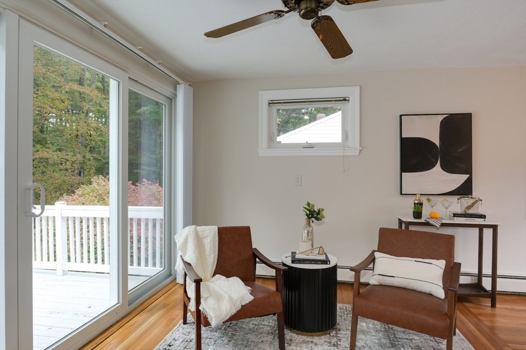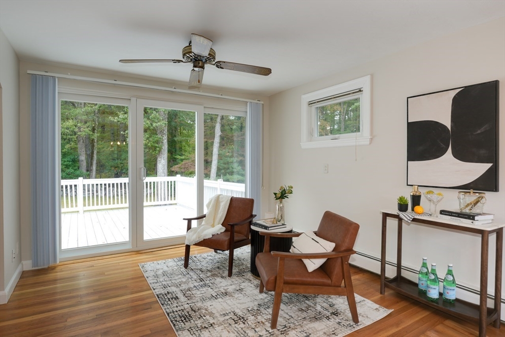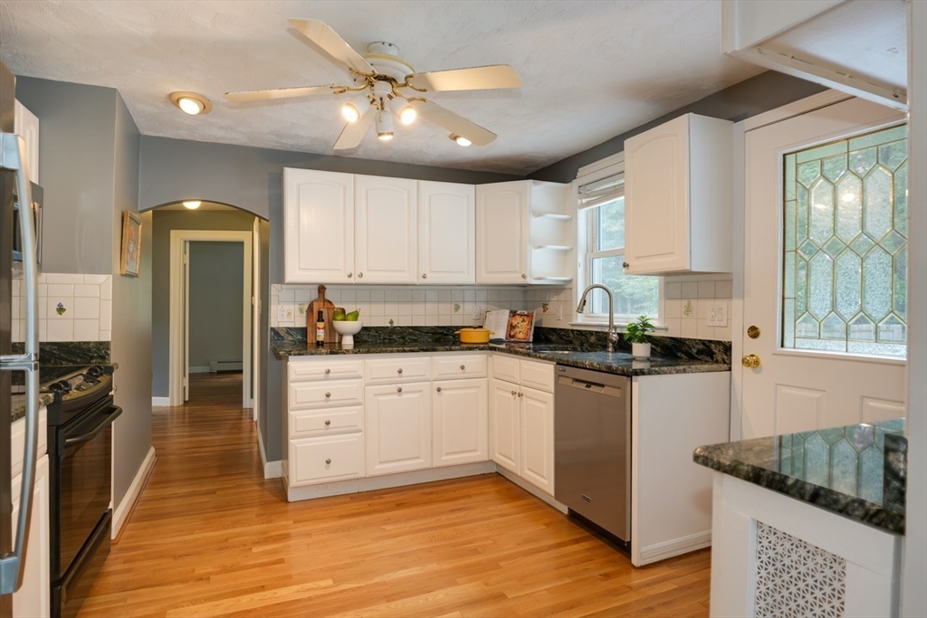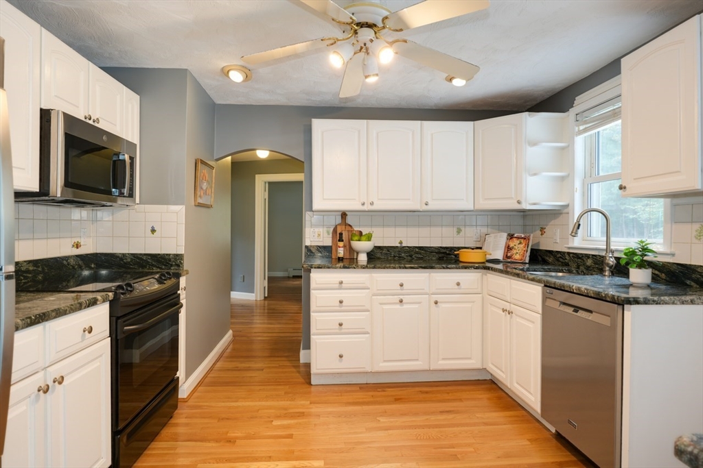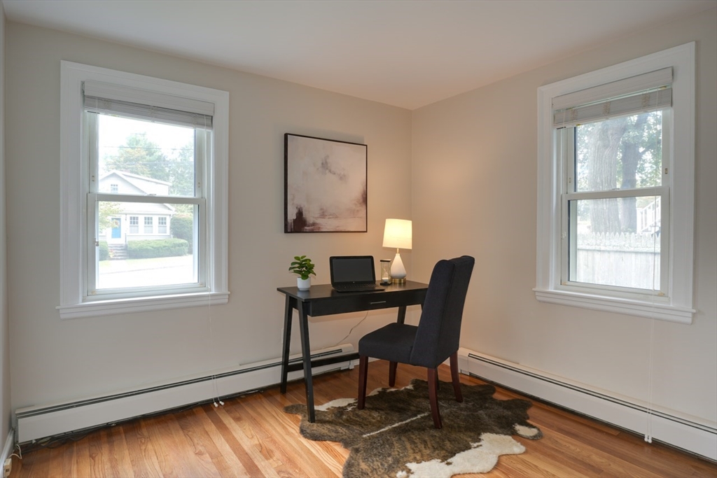 Welcome home to this pristine Cape, where comfort, style, & easy living come together. A sun-splashed open-concept main level with a cozy fireplace flows seamlessly into a kitchen boasting granite counters - creating the perfect setting for both everyday living & entertaining. Gleaming hardwood floors & fresh paint enhance the bright & inviting feel throughout. Upstairs, oversized bedrooms, a full bath, and thoughtful storage—including both linen and cedar closets—offer space and convenience. The main level features two additional bedrooms and a renovated ¾ bath, ideal for flexible first-floor living, a home office, or guest retreat. Step outside to a beautiful deck overlooking a flat, level yard—perfect for summer gatherings, gardening, or simply relaxing outdoors. A one-car garage adds convenience, while the dry lower level with excellent ceiling height holds endless potential. Truly move-in ready -- this home invites you to settle in and enjoy from day one.