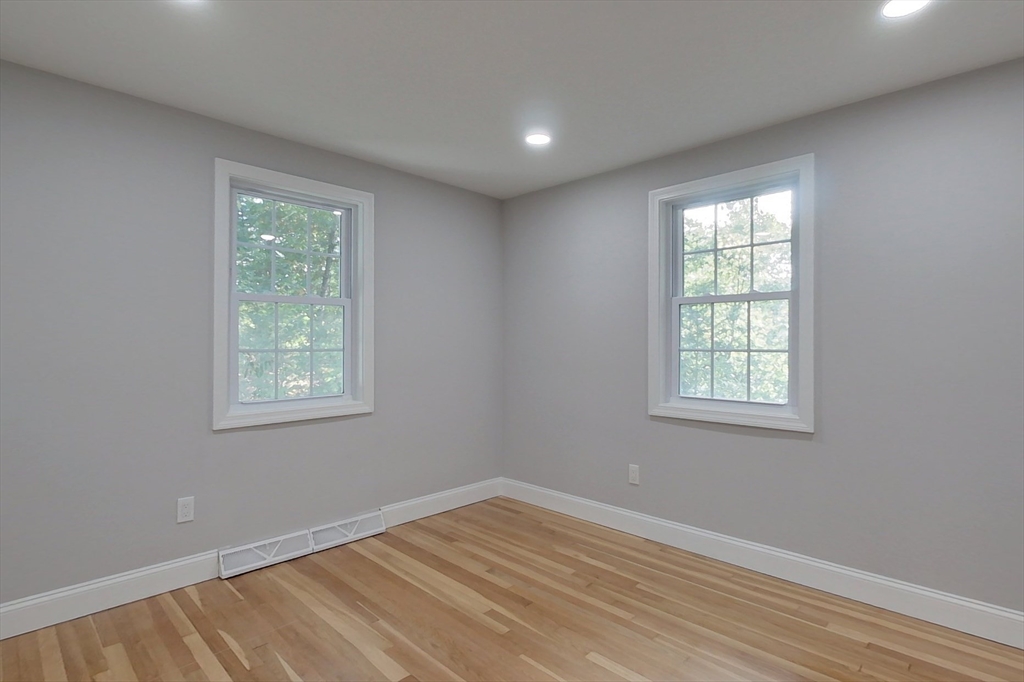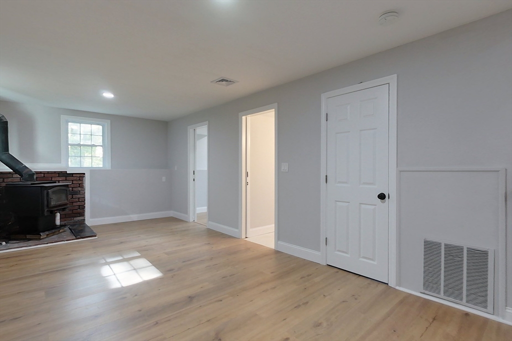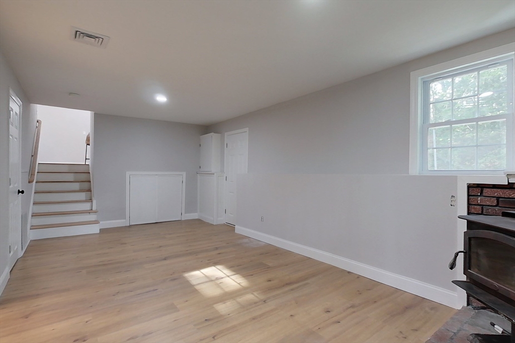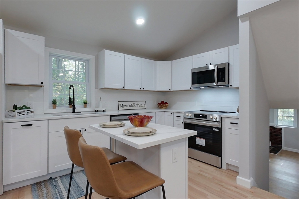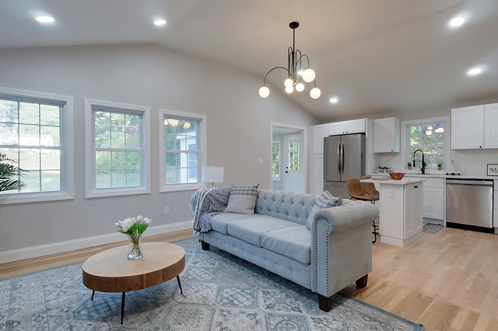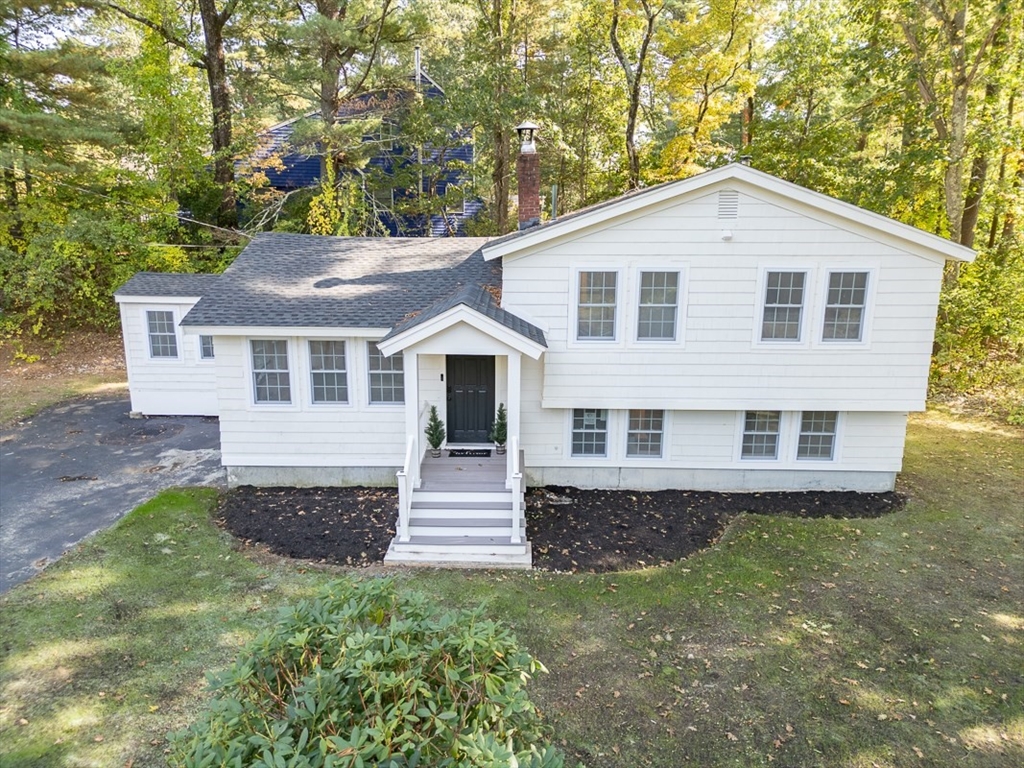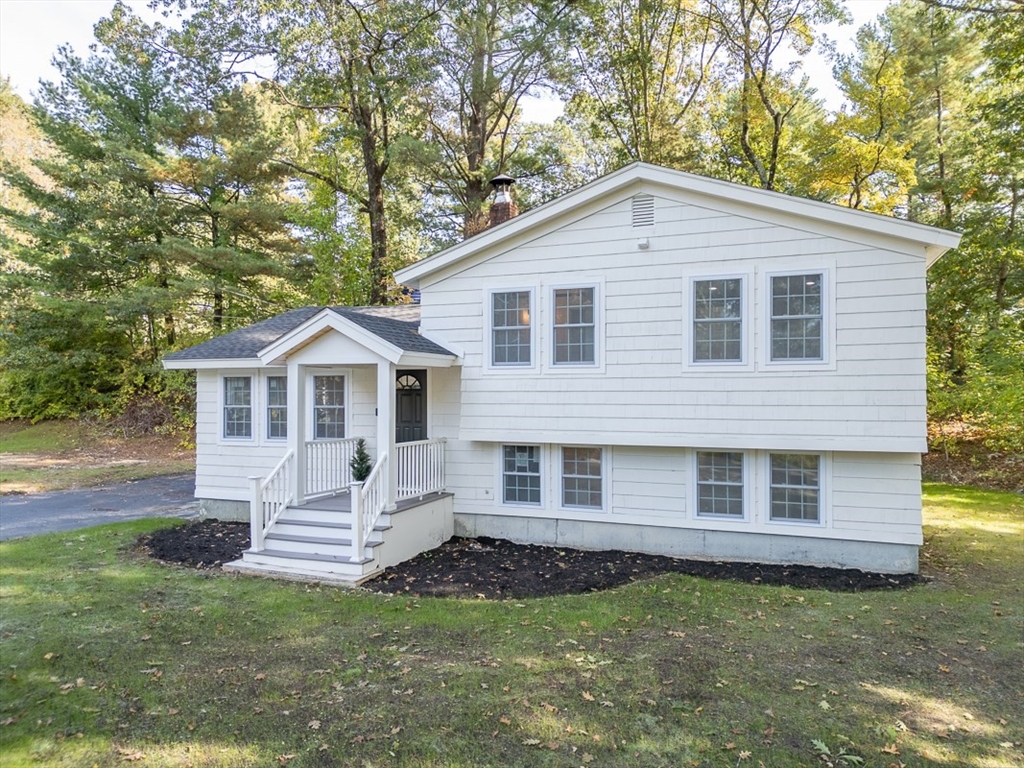 Enter into this renovated raised ranch, beautifully set on just under a 1/2 acre w/ the perfect balance of privacy & location. Light flooring leads into the open concept living room featuring cathedral ceilings, recessed lighting & plenty of windows flooding the space w/ natural light. The kitchen showcases white shaker cabinets, new appliances, a quaint island & opens to a dining area/enclosed porch wrapped in windows. Up a few steps, find 3 DRMS & a stunning full BA w/ a custom-tiled walk-in shower, glass surround & built-in seating. The finished lower level adds 400+ sq. ft. of living space, including a bonus room w/ a woodstove on a brick hearth, an office/flex room, full BA & a utility room. Additional highlights include central AC, a new roof & a low-level deck for outdoor enjoyment. All tucked back from the bustle of town, yet close to shops, schools, dining, & just minutes to Route 3. Showings begin at an Open House Sat 10/4 from 11-1pm w/ & Sun 10/5 from 2-4pm.