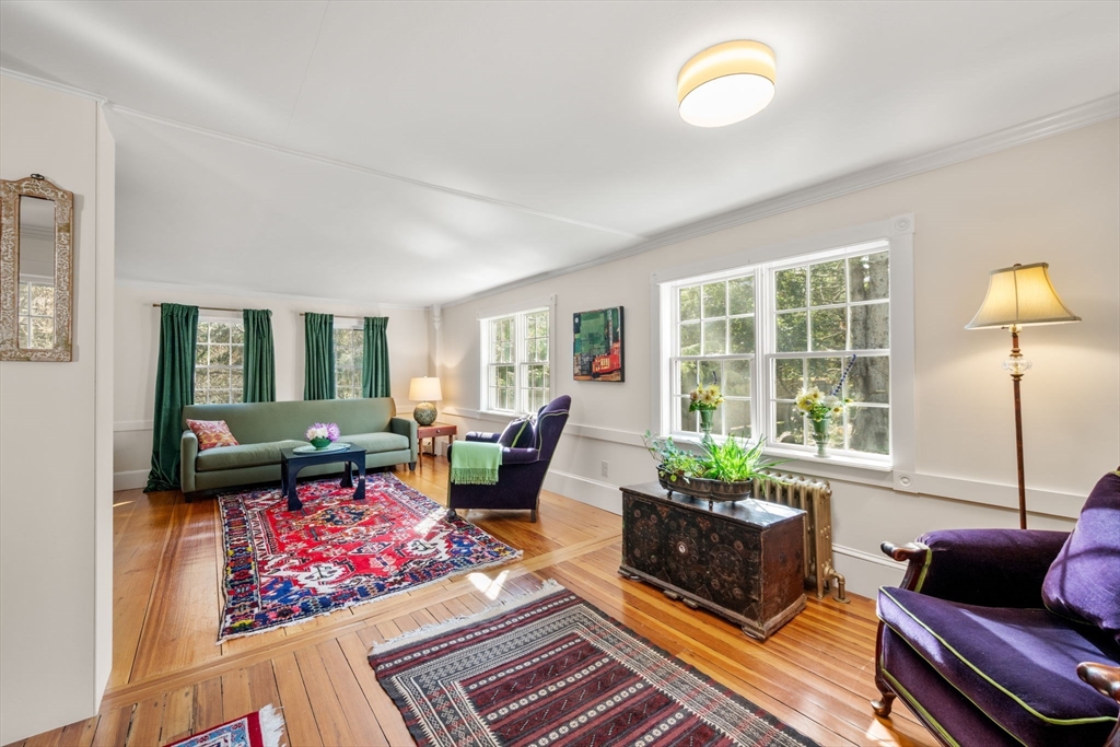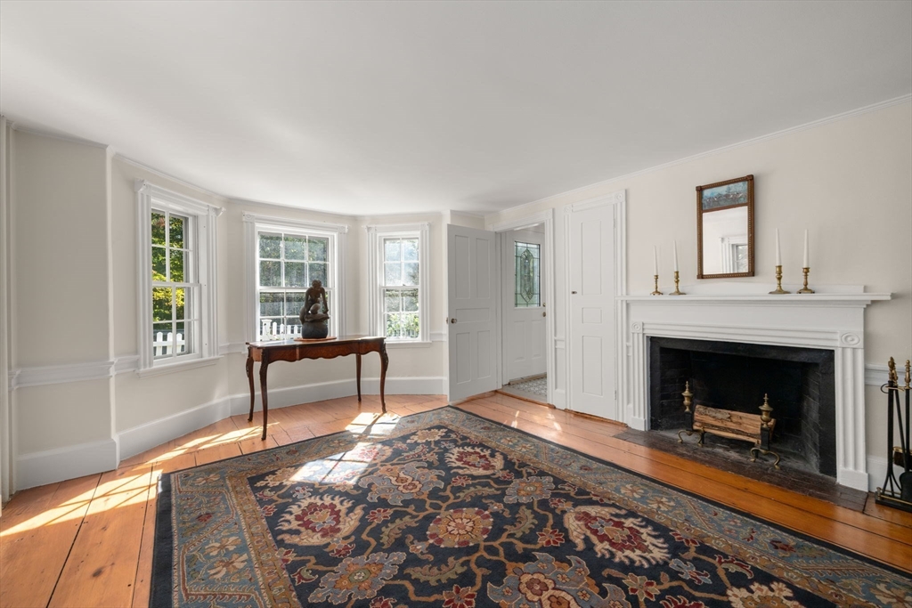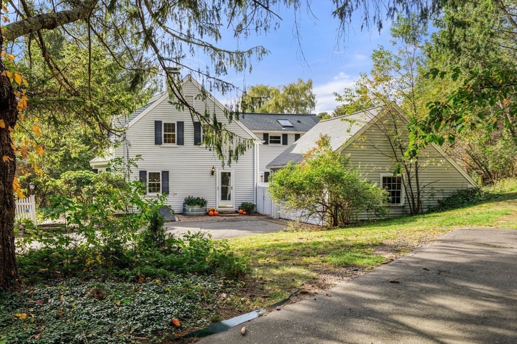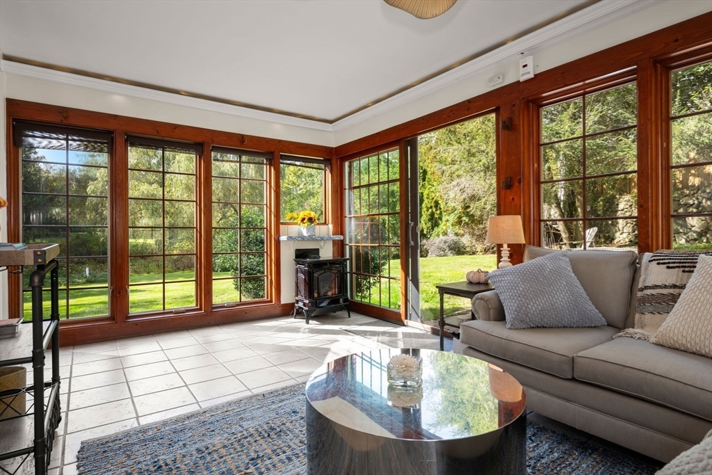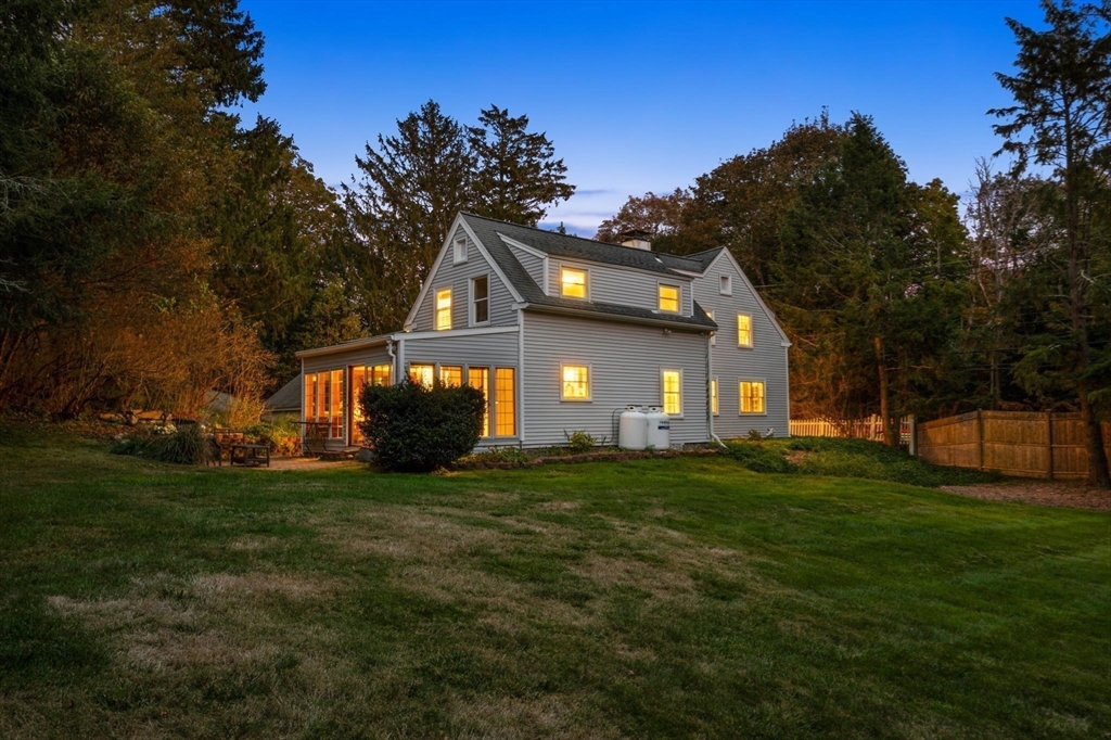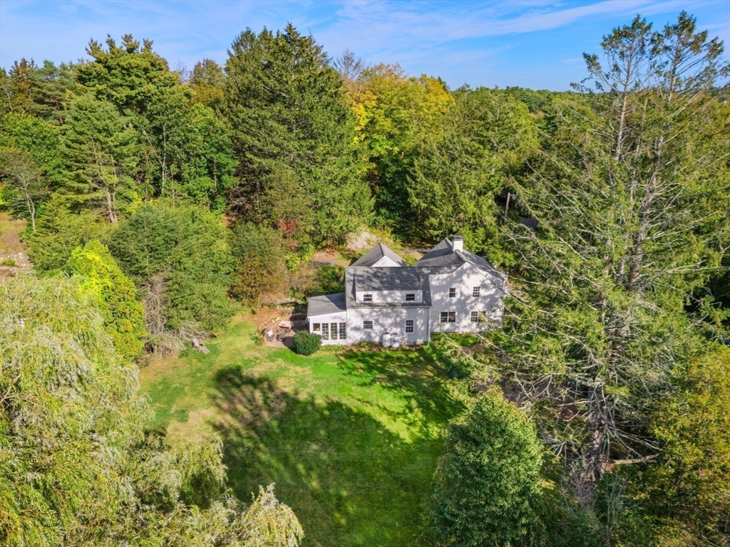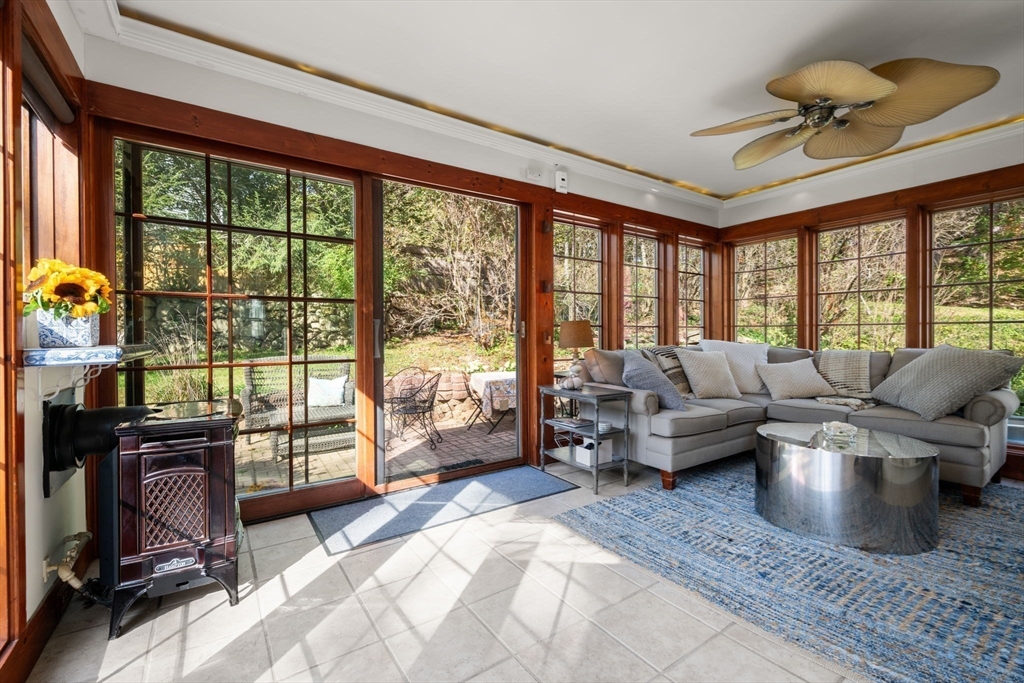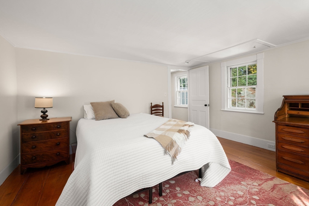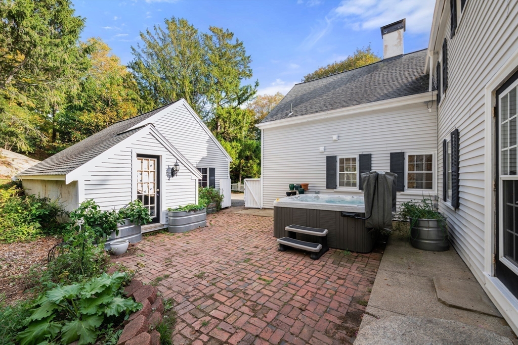 Escape to the country while staying close to the city in this updated antique Colonial on Wenham’s scenic Larch Row. Set on nearly an acre with perennial gardens, stone walls, and a shallow skating pond, the property offers an idyllic retreat surrounded by nature. The interior blends historic character with modern convenience, featuring an open floor plan with radiant-heated floors, two wood-burning fireplaces, and a versatile first-floor office or bedroom. The sunroom features a gas fireplace and stunning year-round views of the yard and wildlife. Upstairs includes a deluxe primary suite with ensuite bath, two additional bedrooms, second full bath, and laundry. Additional highlights include wide-board flooring, a two-car garage, two paved driveways, hot tub, fresh paint, extensive built in storage, and numerous updates including a high-efficiency heating system, electrical upgrades, appliances, and generator hookup. This sunny New England home offers privacy, convenience, and calm.