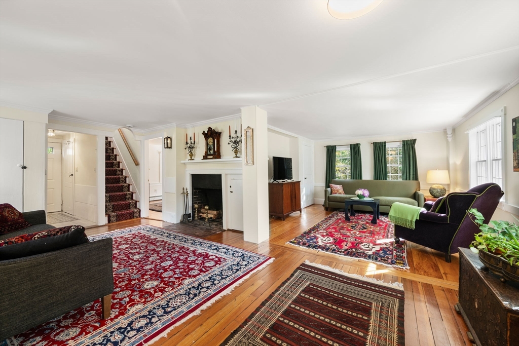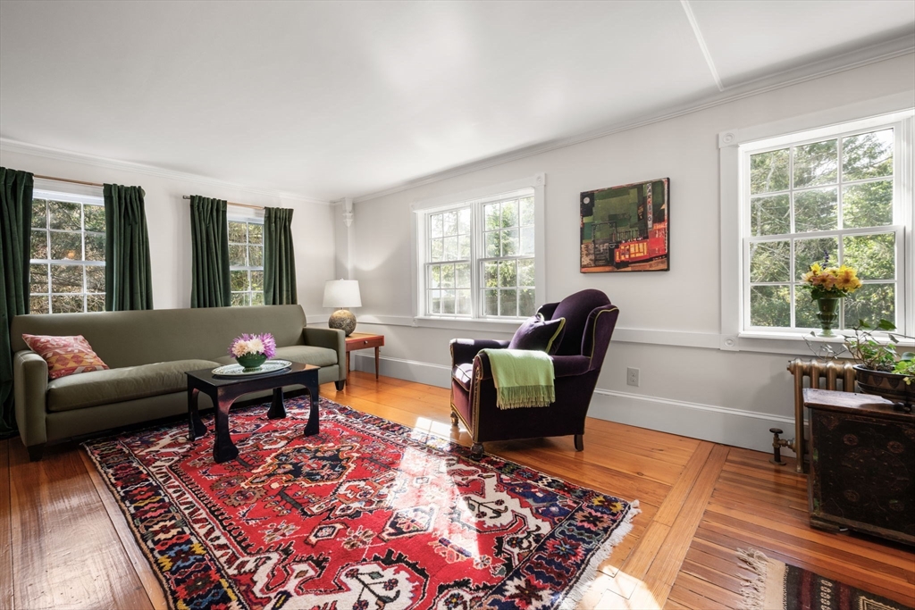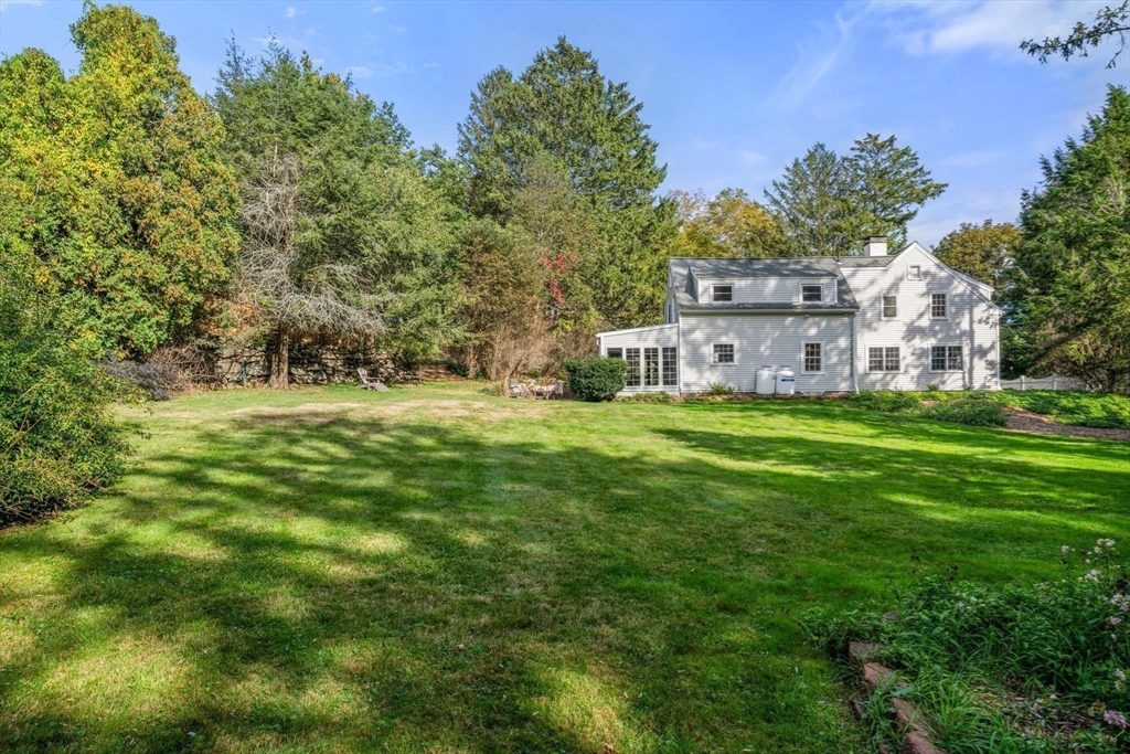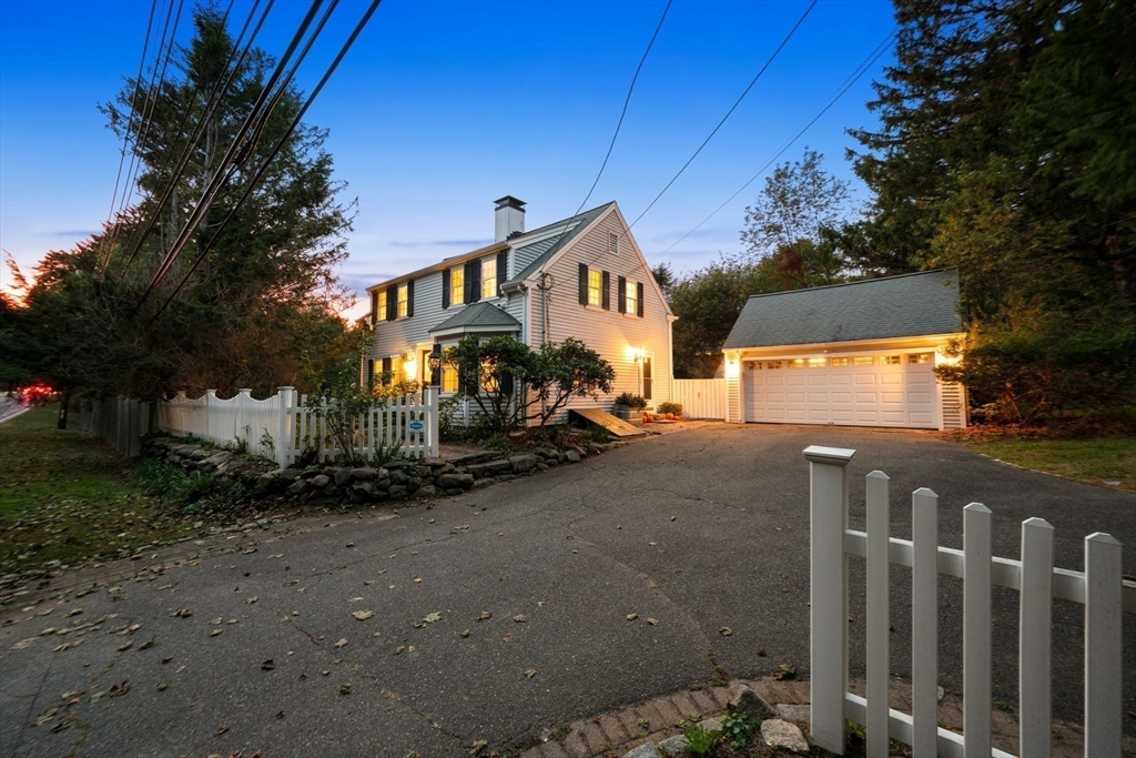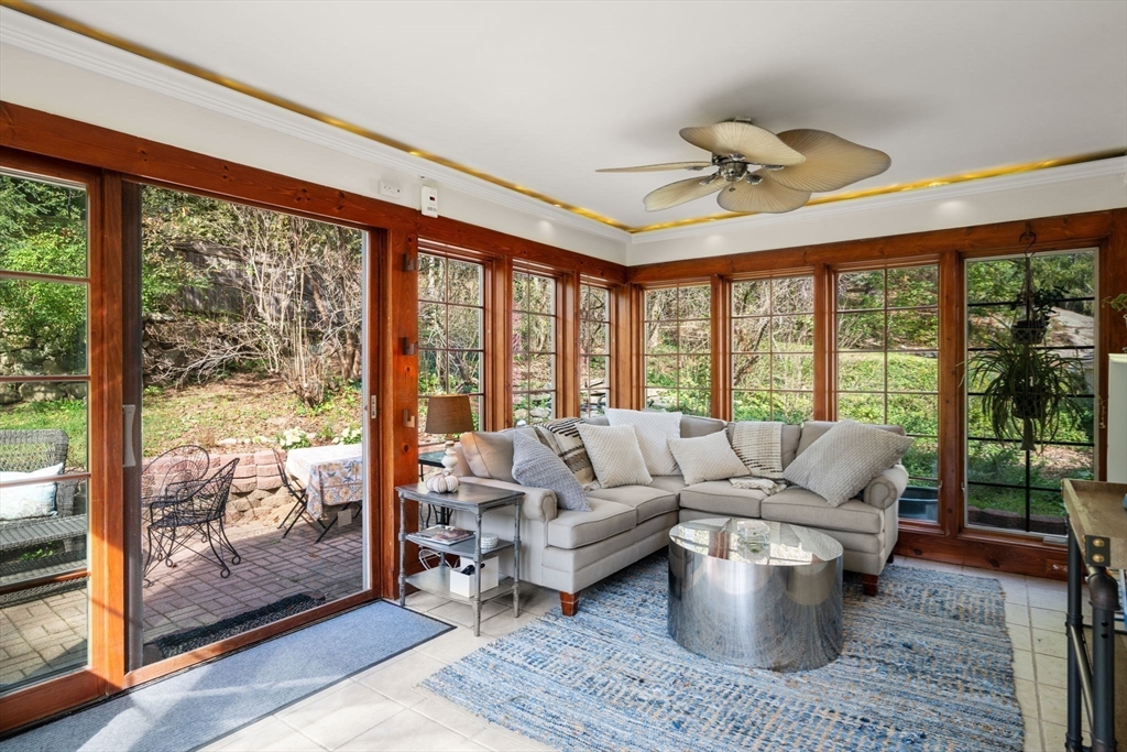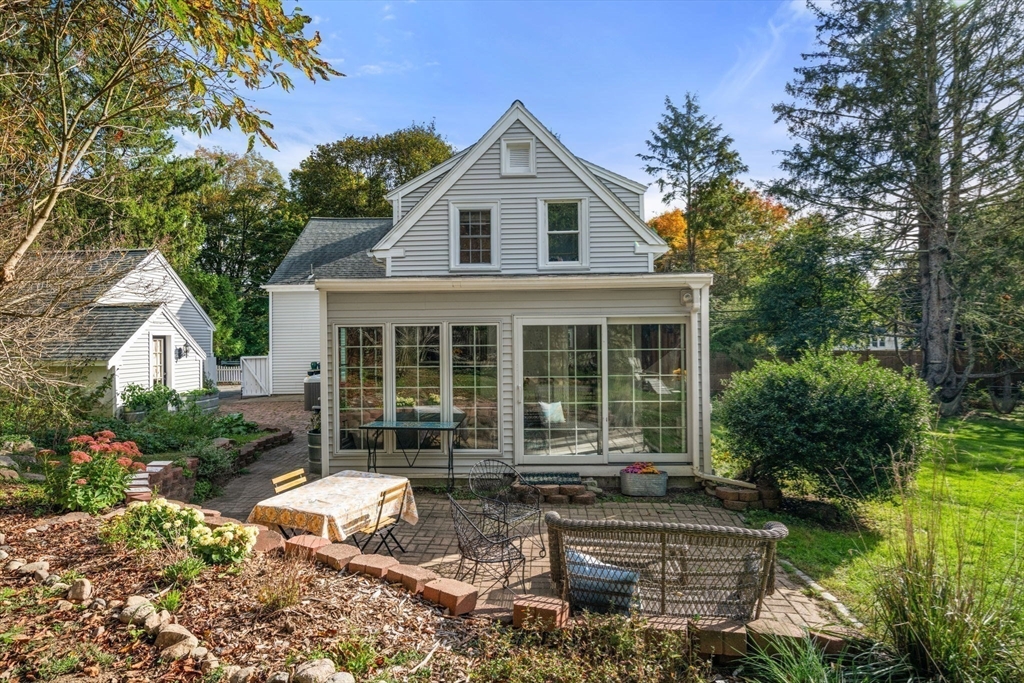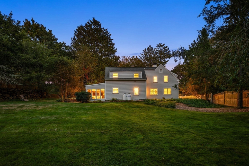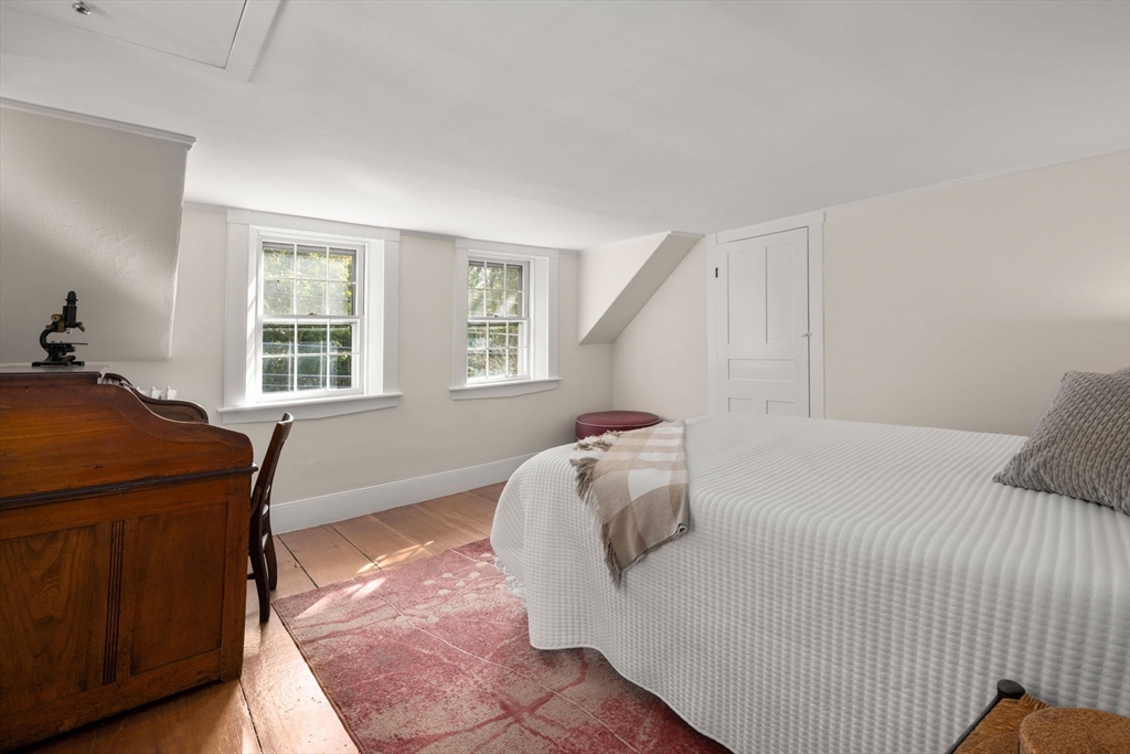 Escape to the country while staying close to the city in this updated antique Colonial on Wenham’s scenic Larch Row. Set on nearly an acre with perennial gardens, stone walls, and a shallow skating pond, the property offers an idyllic retreat surrounded by nature. The interior blends historic character with modern convenience, featuring an open floor plan with radiant-heated floors, two wood-burning fireplaces, and a versatile first-floor office or bedroom. The sunroom features a gas fireplace and stunning year-round views of the yard and wildlife. Upstairs includes a deluxe primary suite with ensuite bath, two additional bedrooms, second full bath, and laundry. Additional highlights include wide-board flooring, a two-car garage, two paved driveways, hot tub, fresh paint, extensive built in storage, and numerous updates including a high-efficiency heating system, electrical upgrades, appliances, and generator hookup. This sunny New England home offers privacy, convenience, and calm.