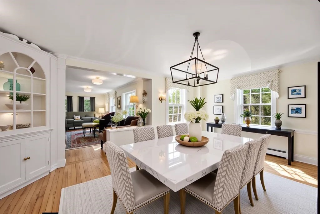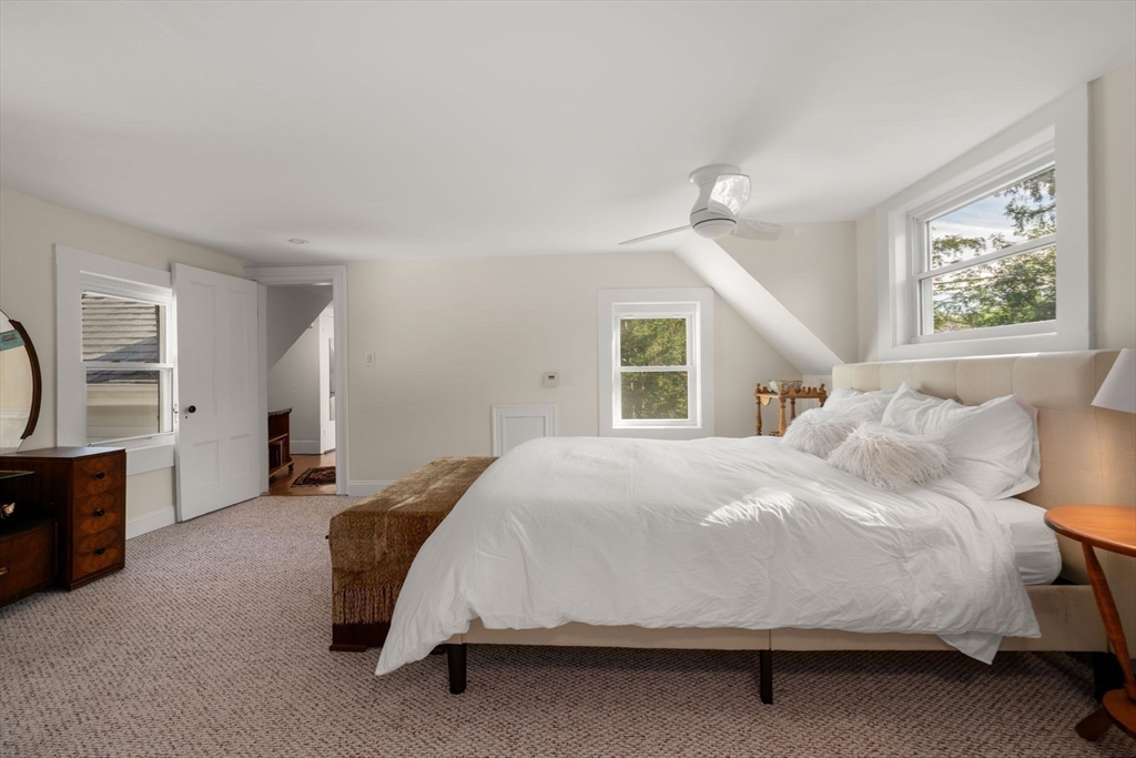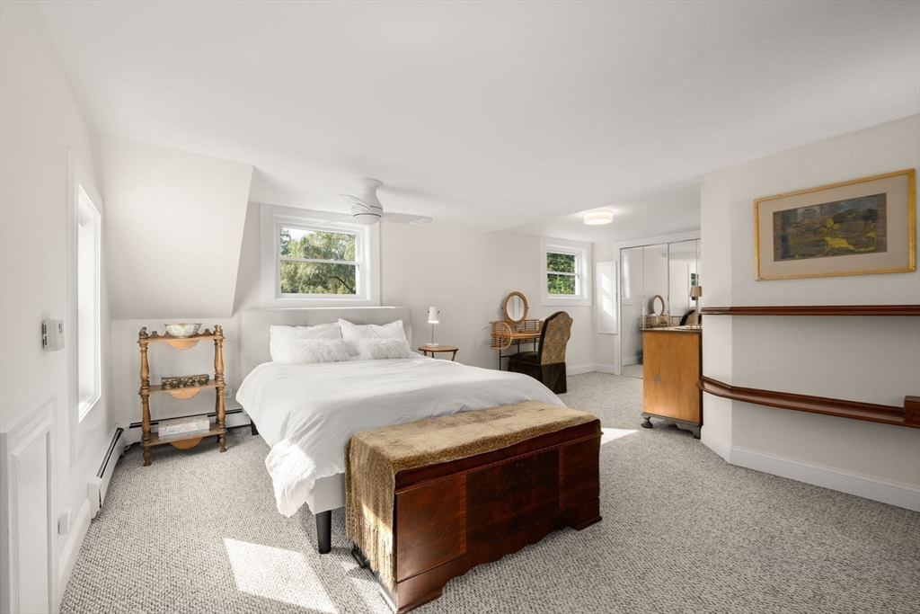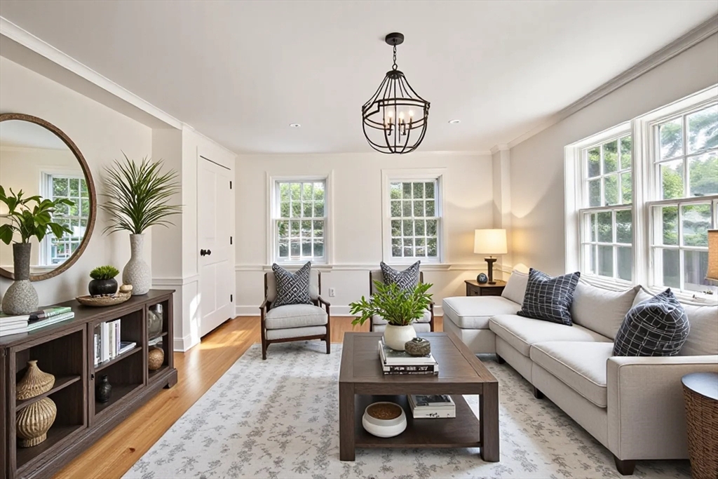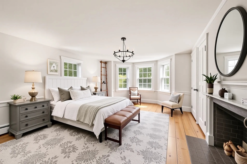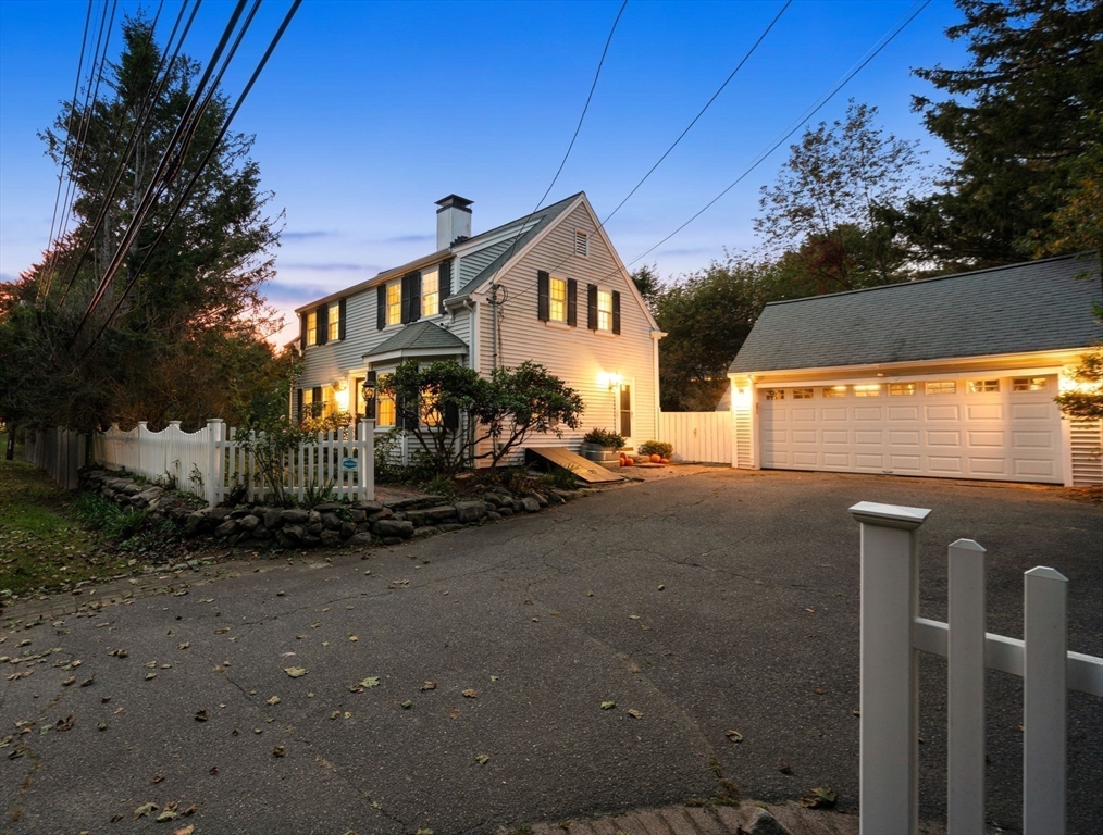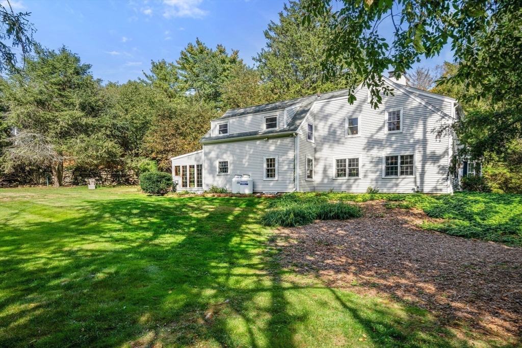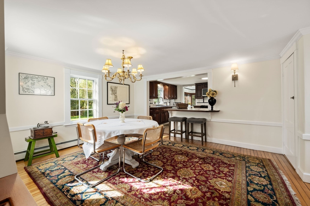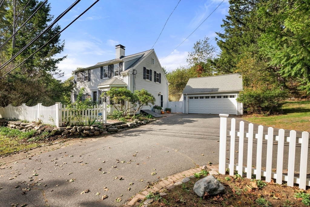 Escape to the country while staying close to the city in this updated antique Colonial on Wenham’s scenic Larch Row. Set on nearly an acre with perennial gardens, stone walls, and a shallow skating pond, the property offers an idyllic retreat surrounded by nature. The interior blends historic character with modern convenience, featuring an open floor plan with radiant-heated floors, two wood-burning fireplaces, and a versatile first-floor office or bedroom. The sunroom features a gas fireplace and stunning year-round views of the yard and wildlife. Upstairs includes a deluxe primary suite with ensuite bath, two additional bedrooms, second full bath, and laundry. Additional highlights include wide-board flooring, a two-car garage, two paved driveways, hot tub, fresh paint, extensive built in storage, and numerous updates including a high-efficiency heating system, electrical upgrades, appliances, and generator hookup. This sunny New England home offers privacy, convenience, and calm.