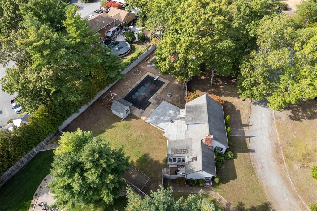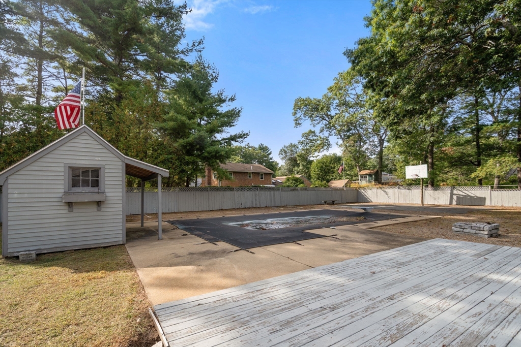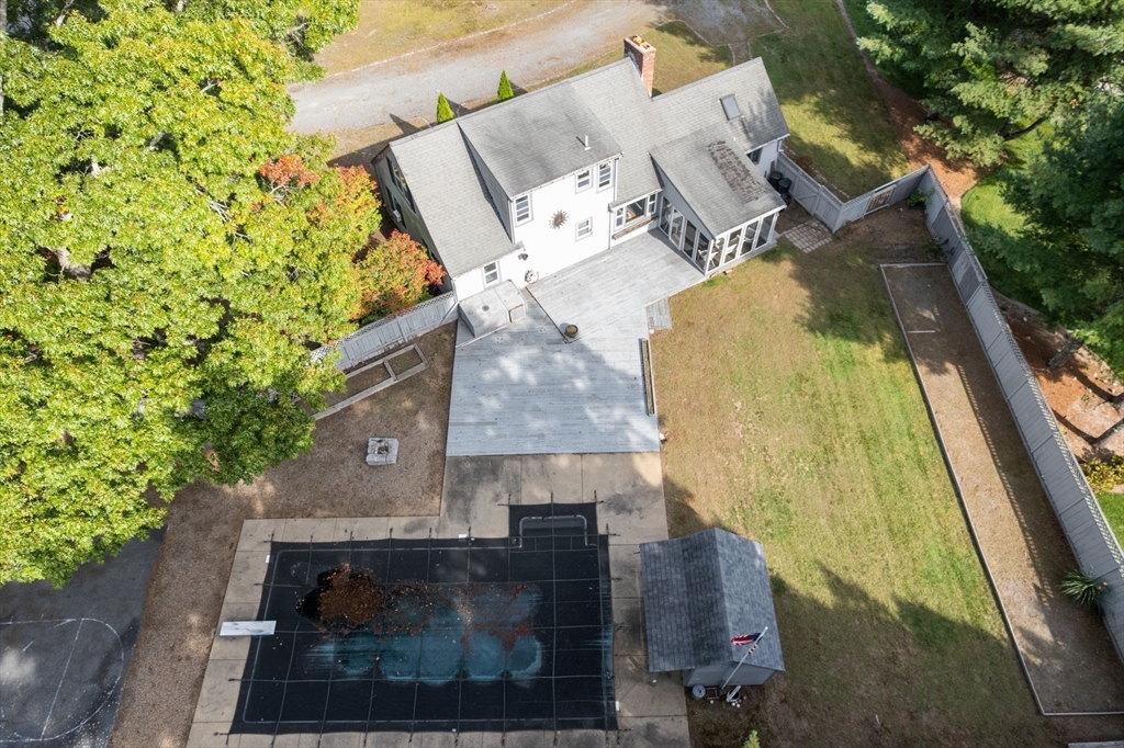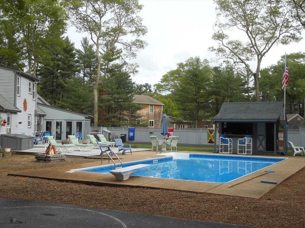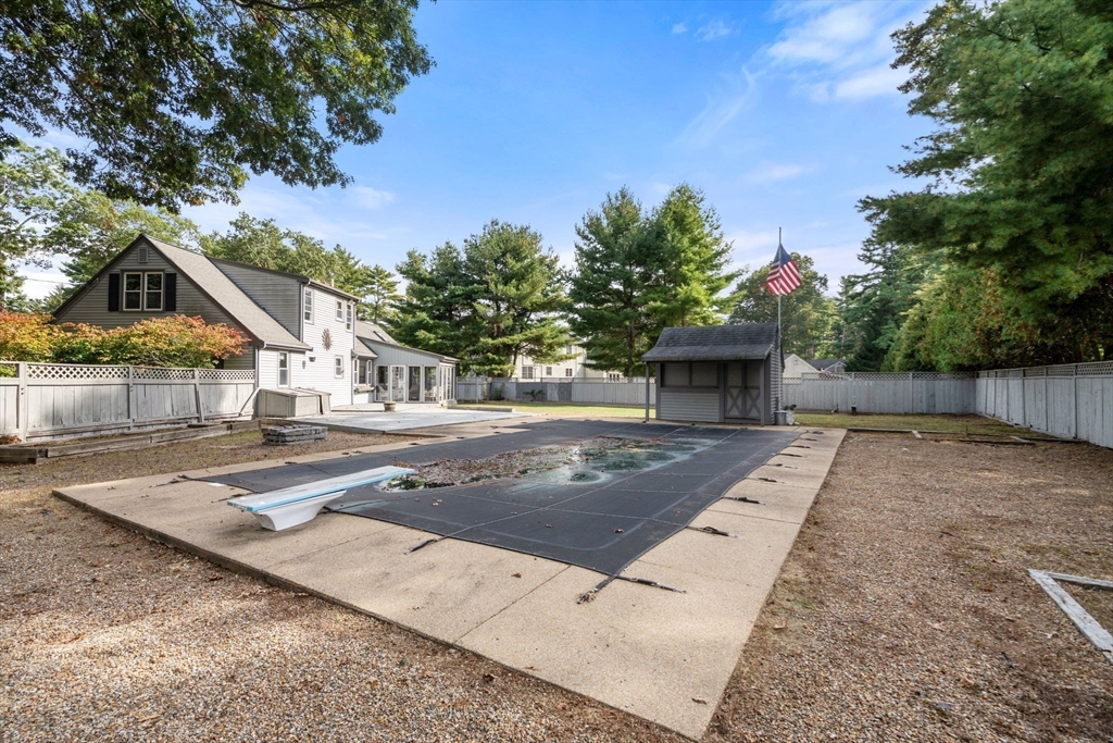 Robinson Estates—great family neighborhood and location! This home is nestled in a quiet corner of the neighborhood, and is just 16 mins. to the commuter rail to Boston. The main floor offers an open kitchen-to-living room layout, full bath, and 2 bedrooms. Upstairs you'll find 2 more bedrooms and another full bath. The finished lower level includes a spacious bar area and family room. Enjoy the screened/glassed-in porch leading to the the backyard which provides a wonderful place for fun and entertainment in a fenced yard with large deck, inground pool, pool house, bocce court, horseshoe pits, and stone firepit. A little bit of love and it can be your oasis. Long Pond is 3 mi. away, and is the largest, fully recreational, natural Pond in MA. A public launch is located on the south end of the lake off Rte 18. Minutes to Ted Williams Park, highway, shopping & more. Open Houses: Sat & Sun 10/4–10/5, 11–12:30. Offers due Mon @ noon.