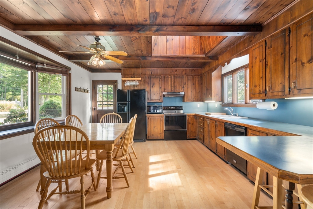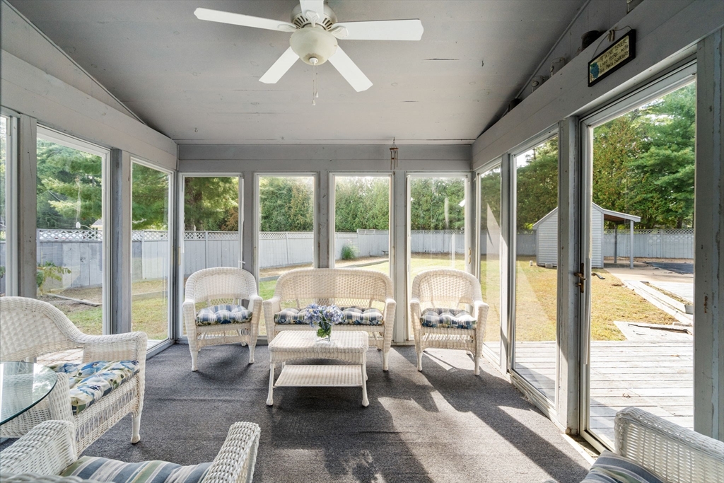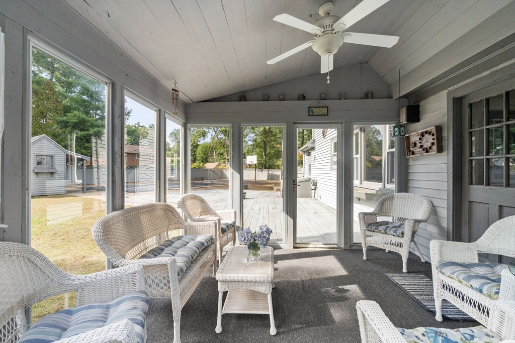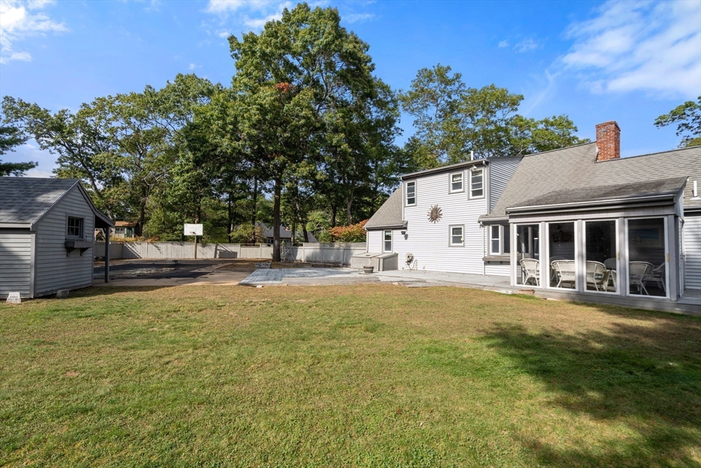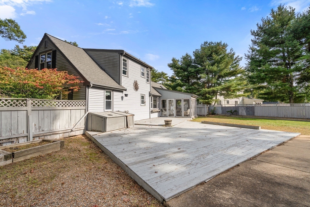 Robinson Estates—great family neighborhood and location! This home is nestled in a quiet corner of the neighborhood, and is just 16 mins. to the commuter rail to Boston. The main floor offers an open kitchen-to-living room layout, full bath, and 2 bedrooms. Upstairs you'll find 2 more bedrooms and another full bath. The finished lower level includes a spacious bar area and family room. Enjoy the screened/glassed-in porch leading to the the backyard which provides a wonderful place for fun and entertainment in a fenced yard with large deck, inground pool, pool house, bocce court, horseshoe pits, and stone firepit. A little bit of love and it can be your oasis. Long Pond is 3 mi. away, and is the largest, fully recreational, natural Pond in MA. A public launch is located on the south end of the lake off Rte 18. Minutes to Ted Williams Park, highway, shopping & more. Open Houses: Sat & Sun 10/4–10/5, 11–12:30. Offers due Mon @ noon.