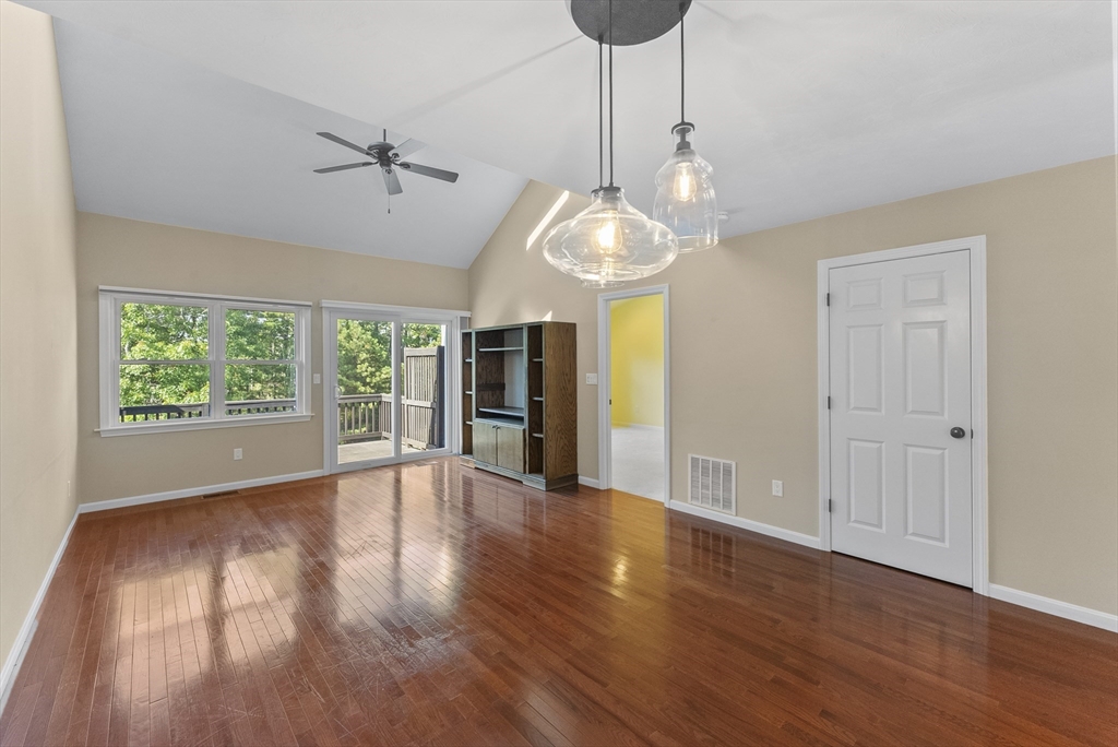 This charming two-bedroom, two-full-bath, & two-half-bath townhome spans just over 1,900 square feet and features 3 levels of living space, along with a one-car garage. Kitchen features a built-in pantry within the cabinetry and stainless-steel appliances, and it has enough space for a small table and chairs, making it perfect for casual dining. Dining area & Great Room boast beautiful hardwood floors. Great Room includes a cathedral ceiling, a ceiling fan & custom built-in shelving, with sliders that lead out to a deck equipped with a retractable awning for sunny afternoons. Primary bedroom is well-appointed with ample closet space & an en-suite bath. Second level consists of two spacious rooms, suitable for a study & an office, along with a guest bedroom & its own en-suite bath. Lower level features a versatile bonus room with a walkout, ideal for various uses, plus a half bath. Winslowe’s View is a wonderful community within Pinehills, offering numerous amenities! *Digitally Staged*