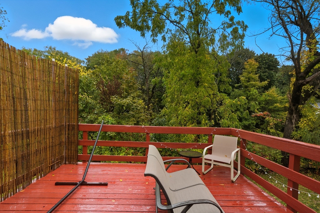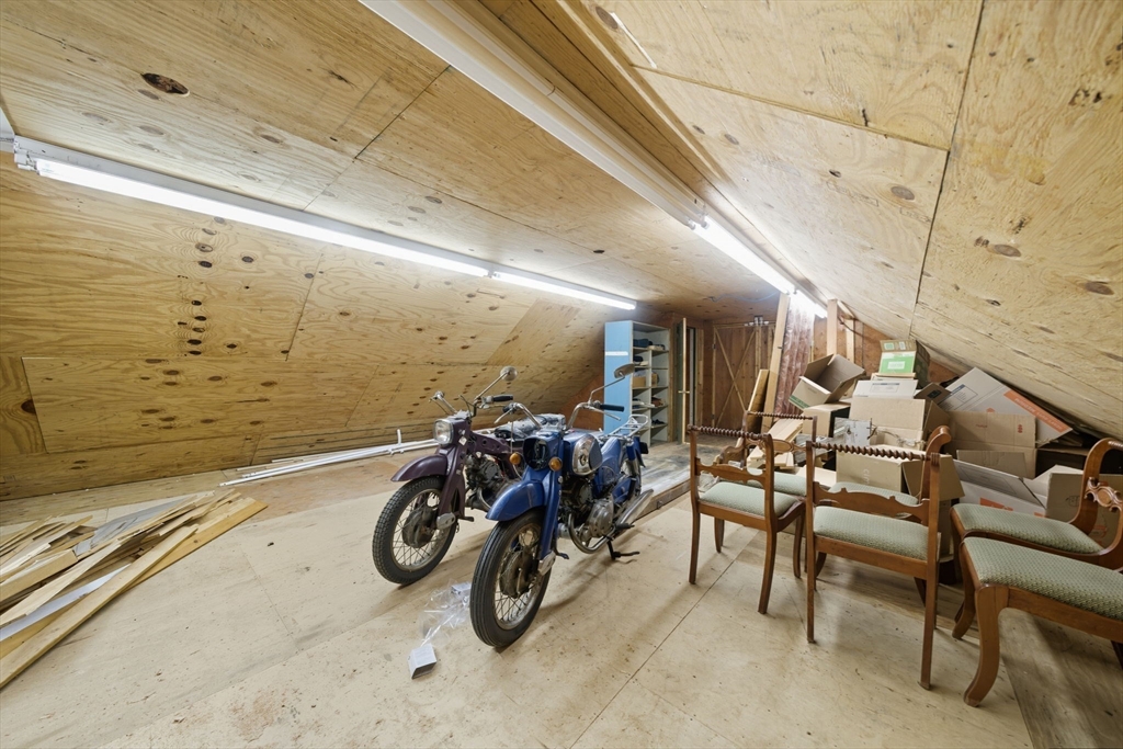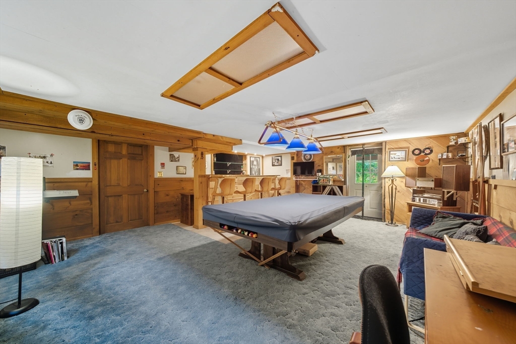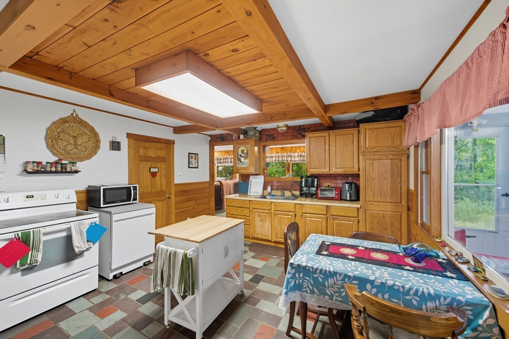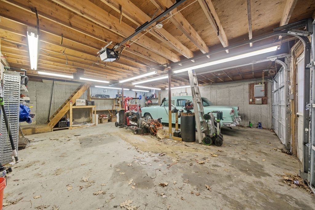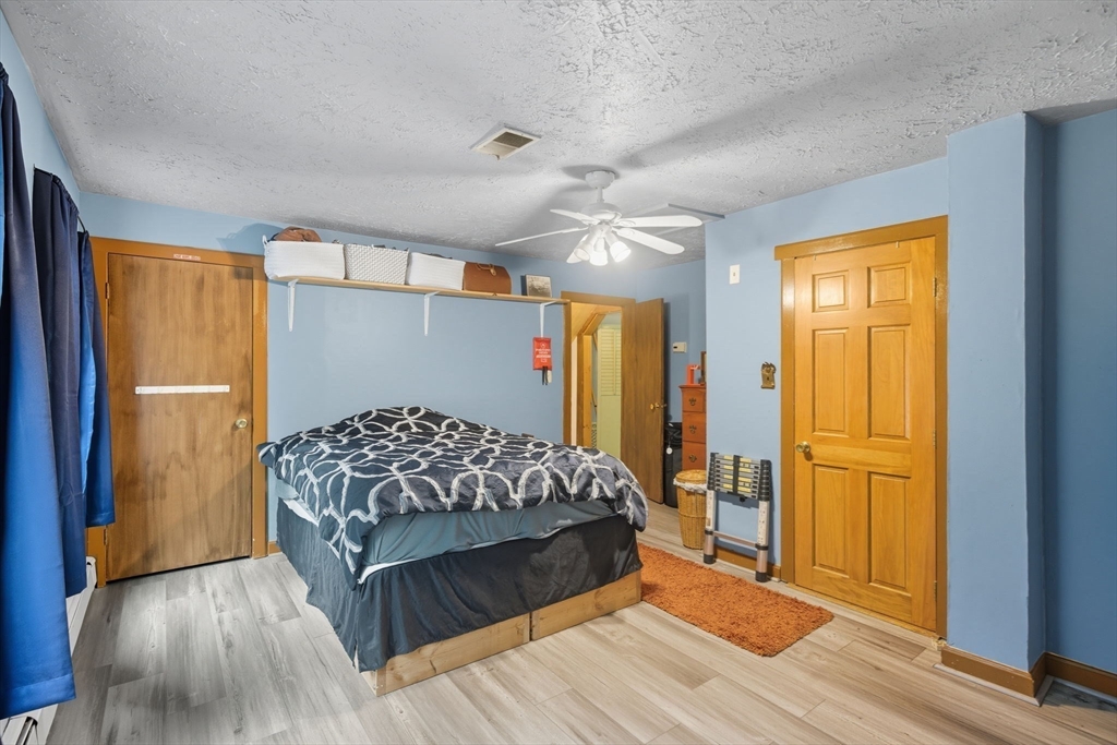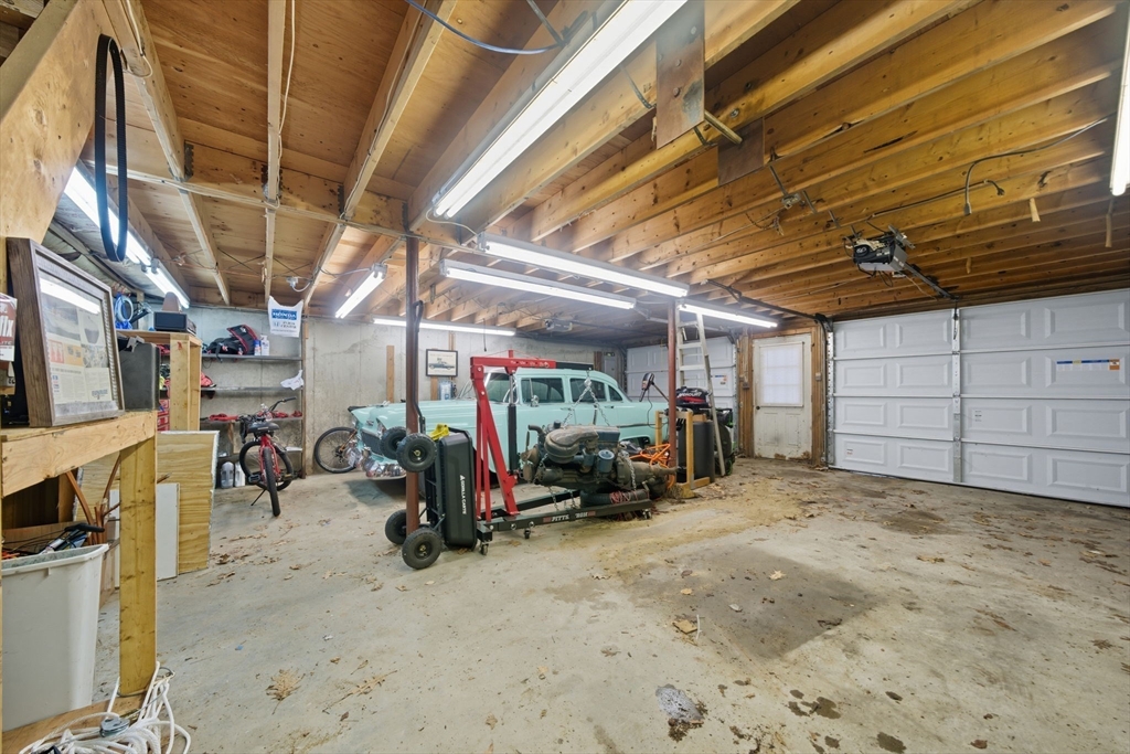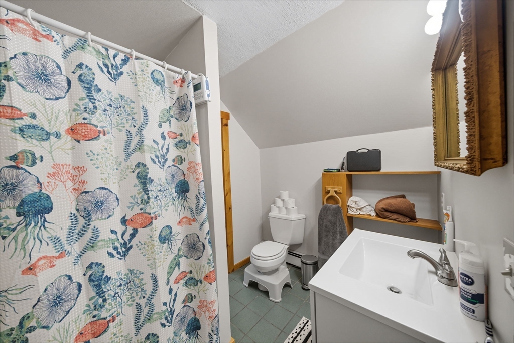 Tucked away on a quiet dead-end street, this Colonial offers privacy and a functional layout with 3 bedrooms and 1.5 baths. Start on the enclosed front porch, then step inside to the main level with a kitchen featuring ceiling beams, an open dining and living room with sliders to the back deck, a first-floor bedroom, and a half bath. Upstairs are two additional bedrooms, each with direct access to a shared full bath. The partially finished lower level provides bonus space with a recreation room, custom bar, laundry area, and utility space. Outside, enjoy the fenced yard from the back deck and a 2-car detached garage with a large loft space above for storage. Recent updates include solar panels ready for future mini-split installation, freshly painted bedrooms, and replaced stair carpeting. All appliances remain and all furniture is negotiable, making move-in easy. Gardner offers access to shopping, restaurants, parks, trails, and major commuter routes.