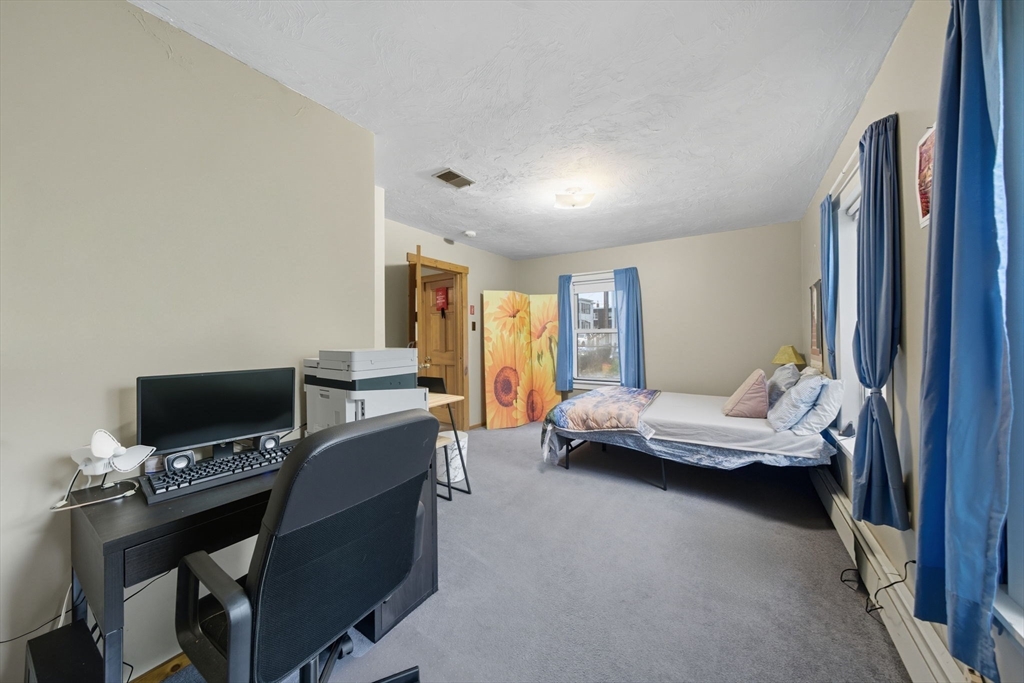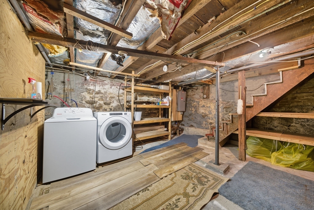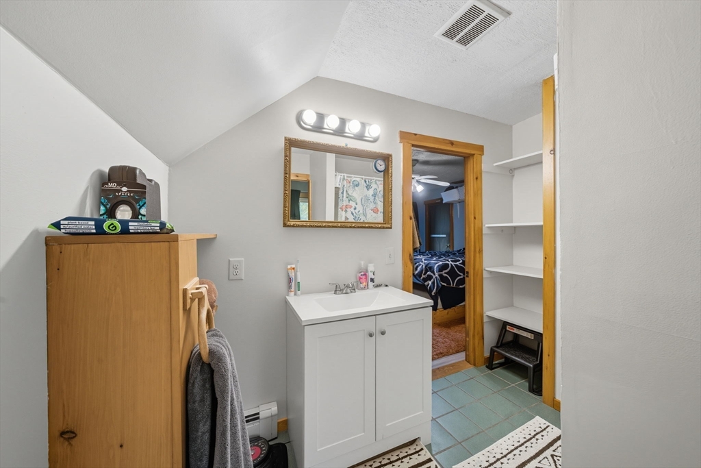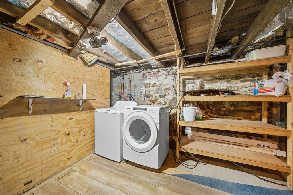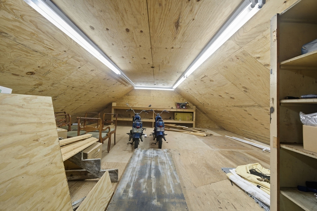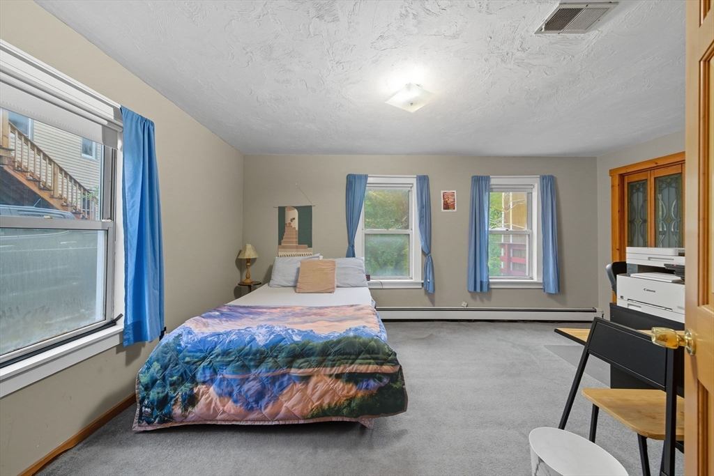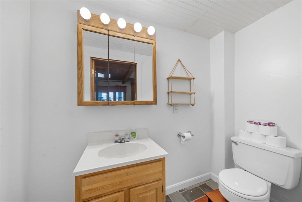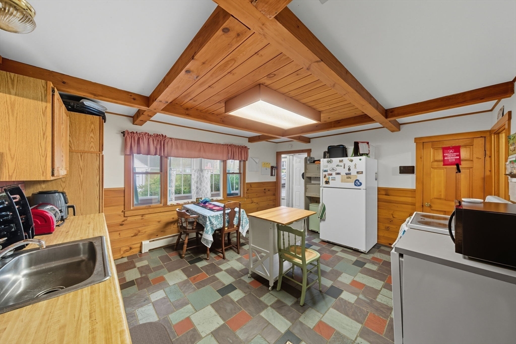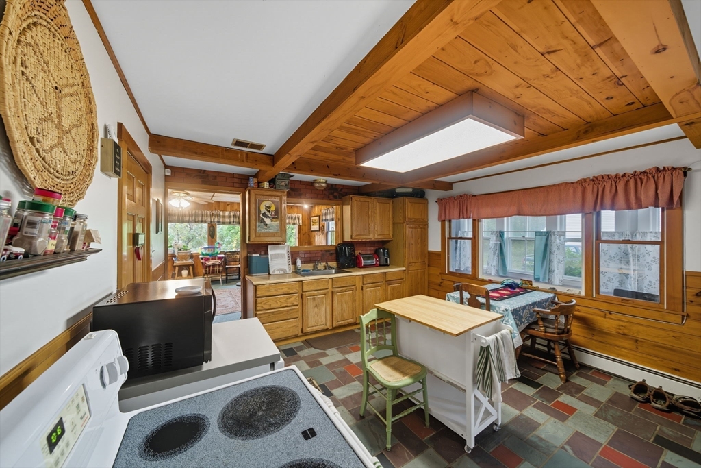 Tucked away on a quiet dead-end street, this Colonial offers privacy and a functional layout with 3 bedrooms and 1.5 baths. Start on the enclosed front porch, then step inside to the main level with a kitchen featuring ceiling beams, an open dining and living room with sliders to the back deck, a first-floor bedroom, and a half bath. Upstairs are two additional bedrooms, each with direct access to a shared full bath. The partially finished lower level provides bonus space with a recreation room, custom bar, laundry area, and utility space. Outside, enjoy the fenced yard from the back deck and a 2-car detached garage with a large loft space above for storage. Recent updates include solar panels ready for future mini-split installation, freshly painted bedrooms, and replaced stair carpeting. All appliances remain and all furniture is negotiable, making move-in easy. Gardner offers access to shopping, restaurants, parks, trails, and major commuter routes.